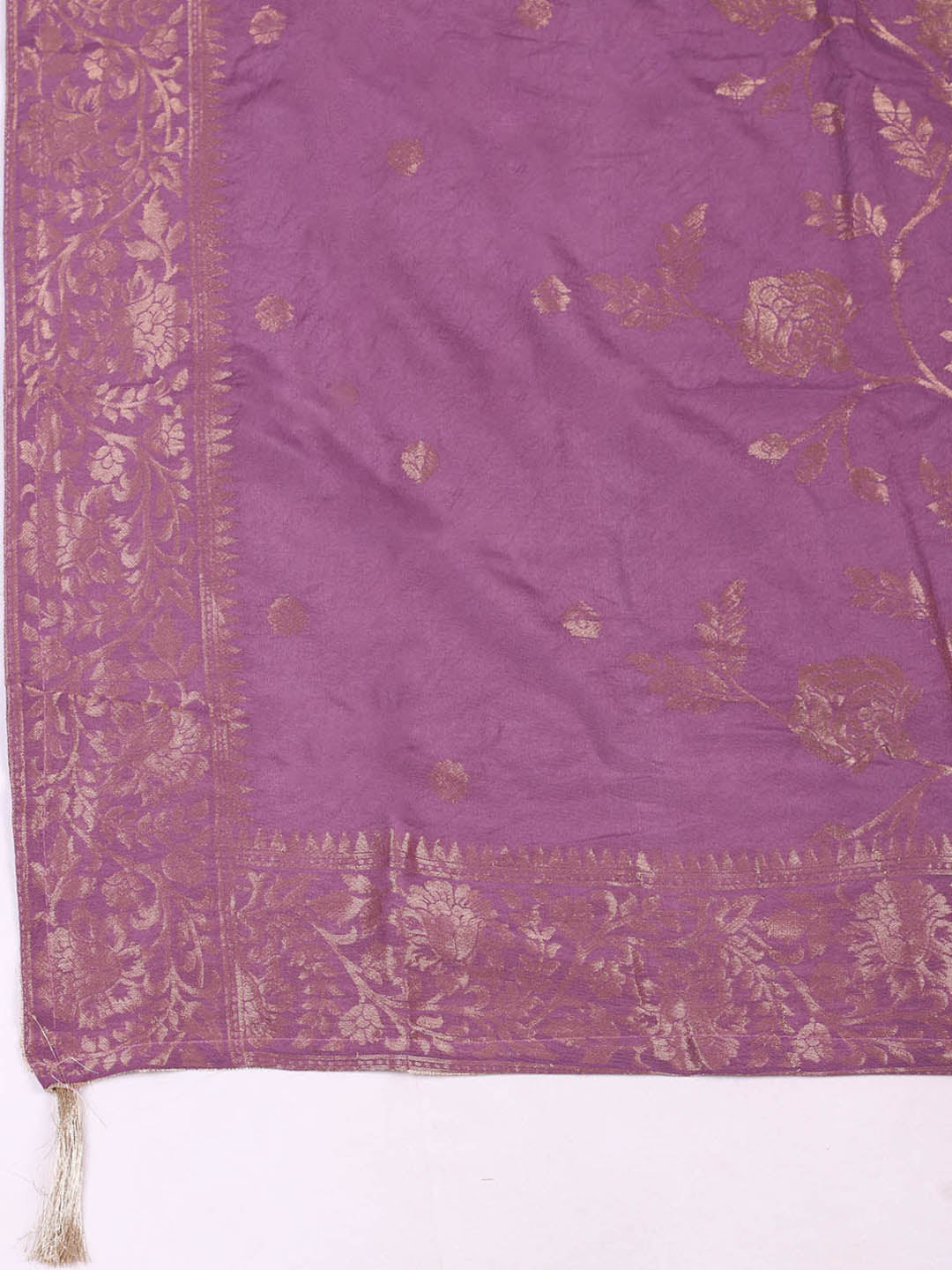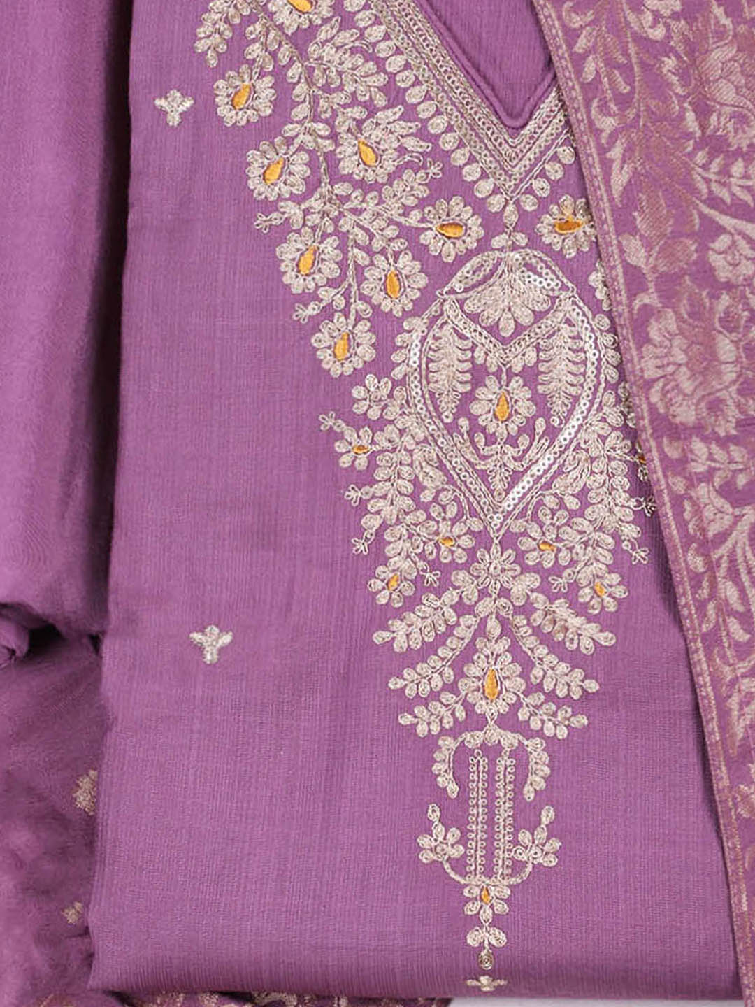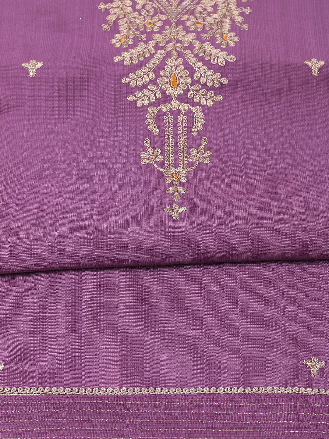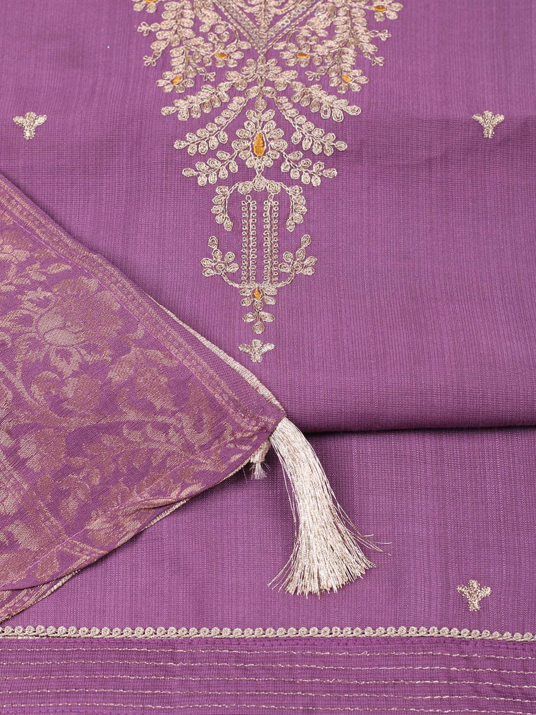 Embroidered Chanderi Lavender Unstitched Suit With Pant & Dupatta