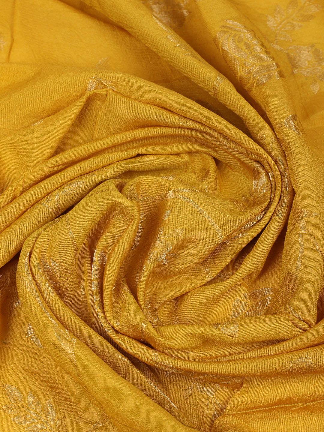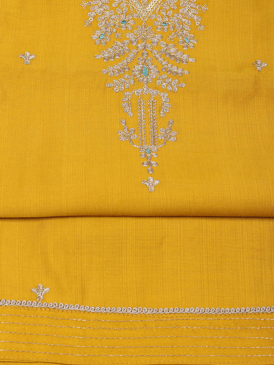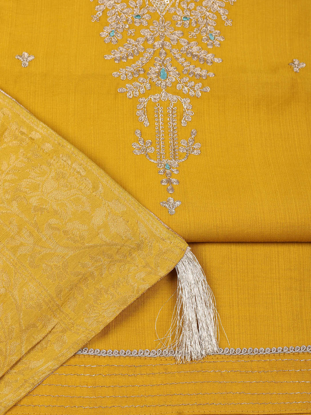 Embroidered Chanderi Mustard Unstitched Suit With Pant & Dupatta