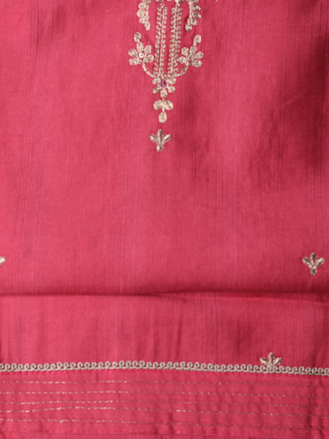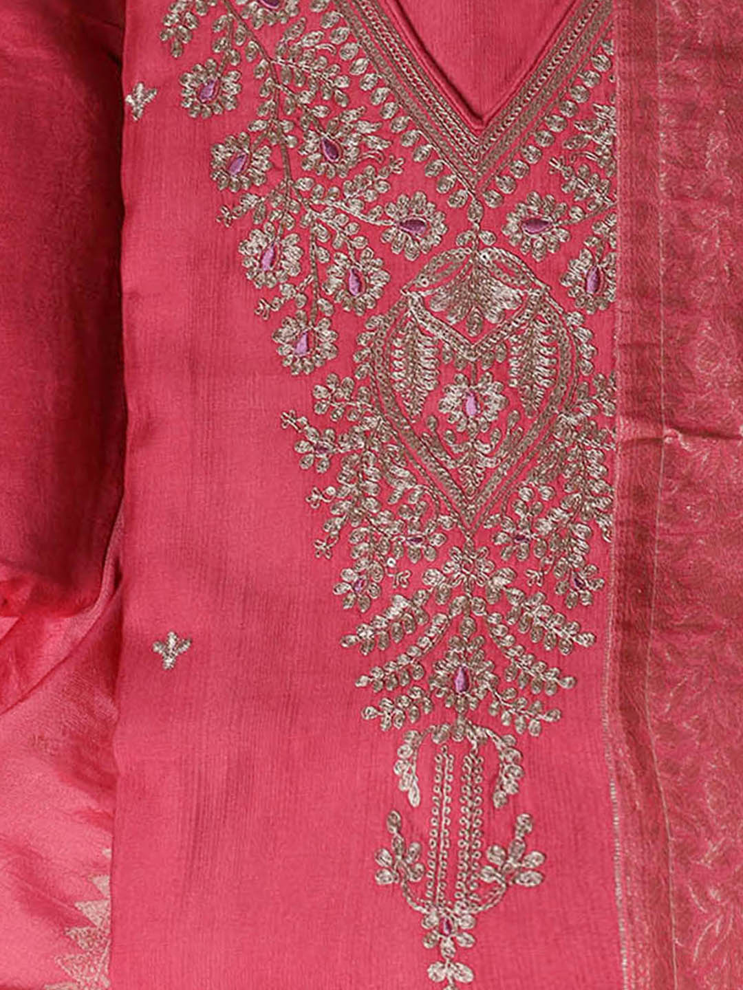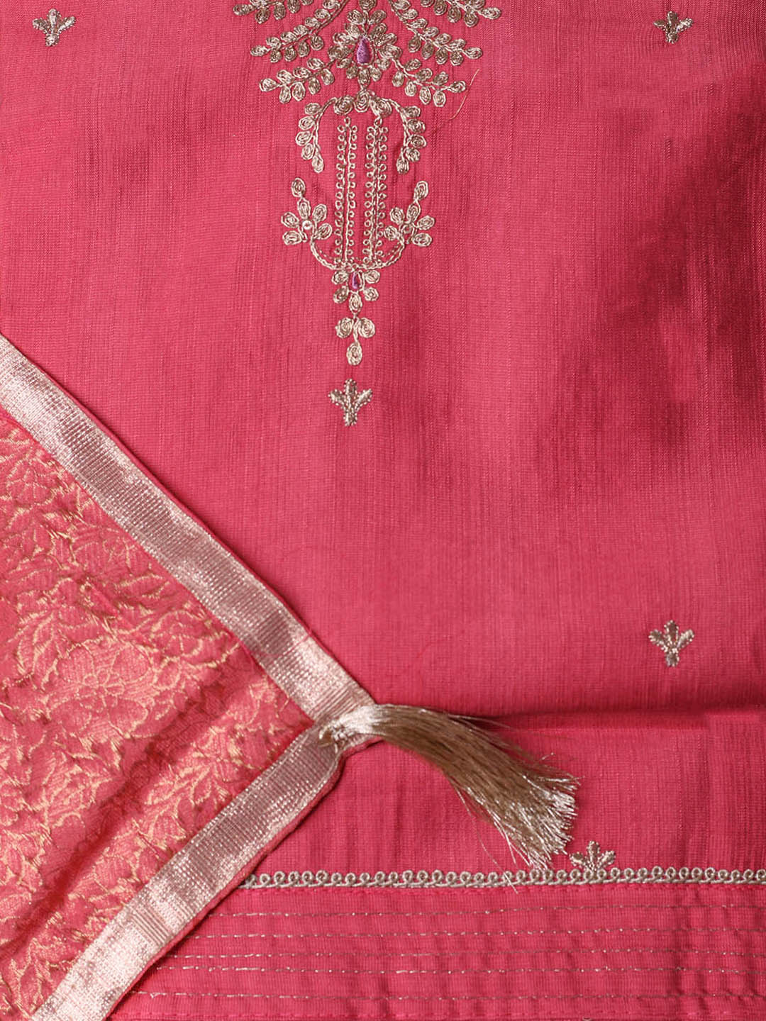 Embroidered Chanderi Pink Unstitched Suit With Pant & Dupatta
