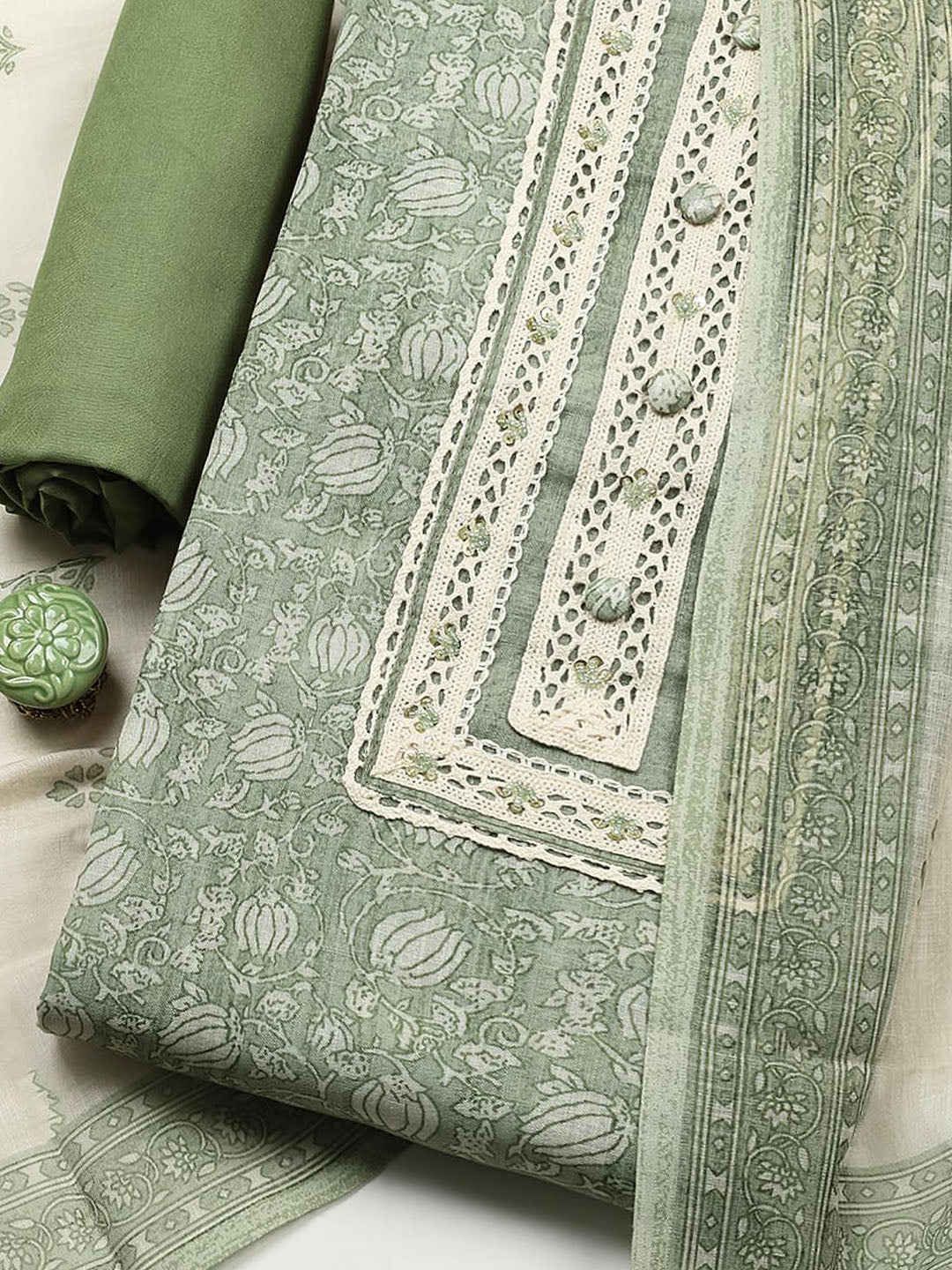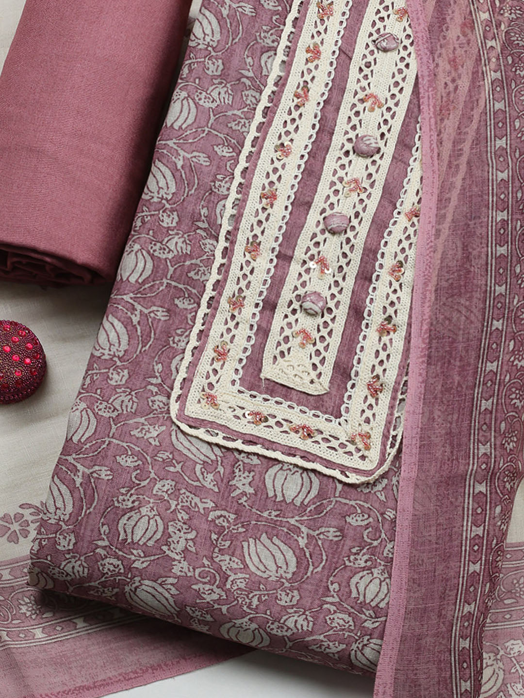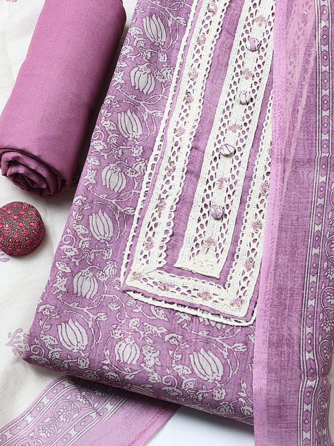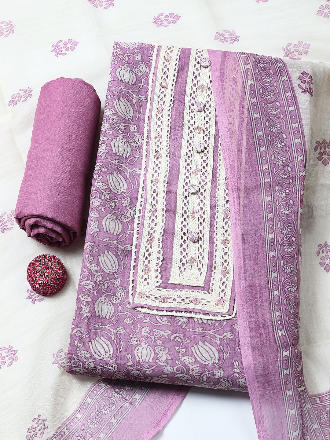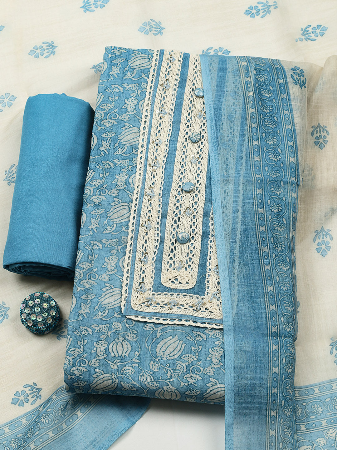 Embroidered Cotton Blend Unstitched Suit With Pant & Dupatta