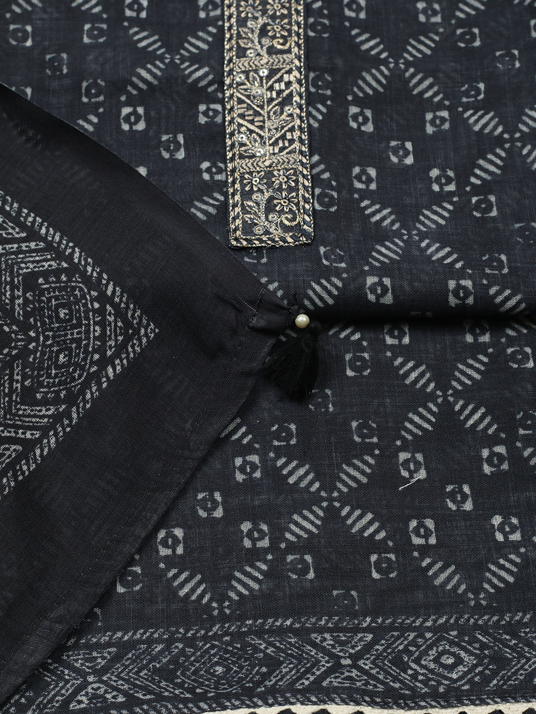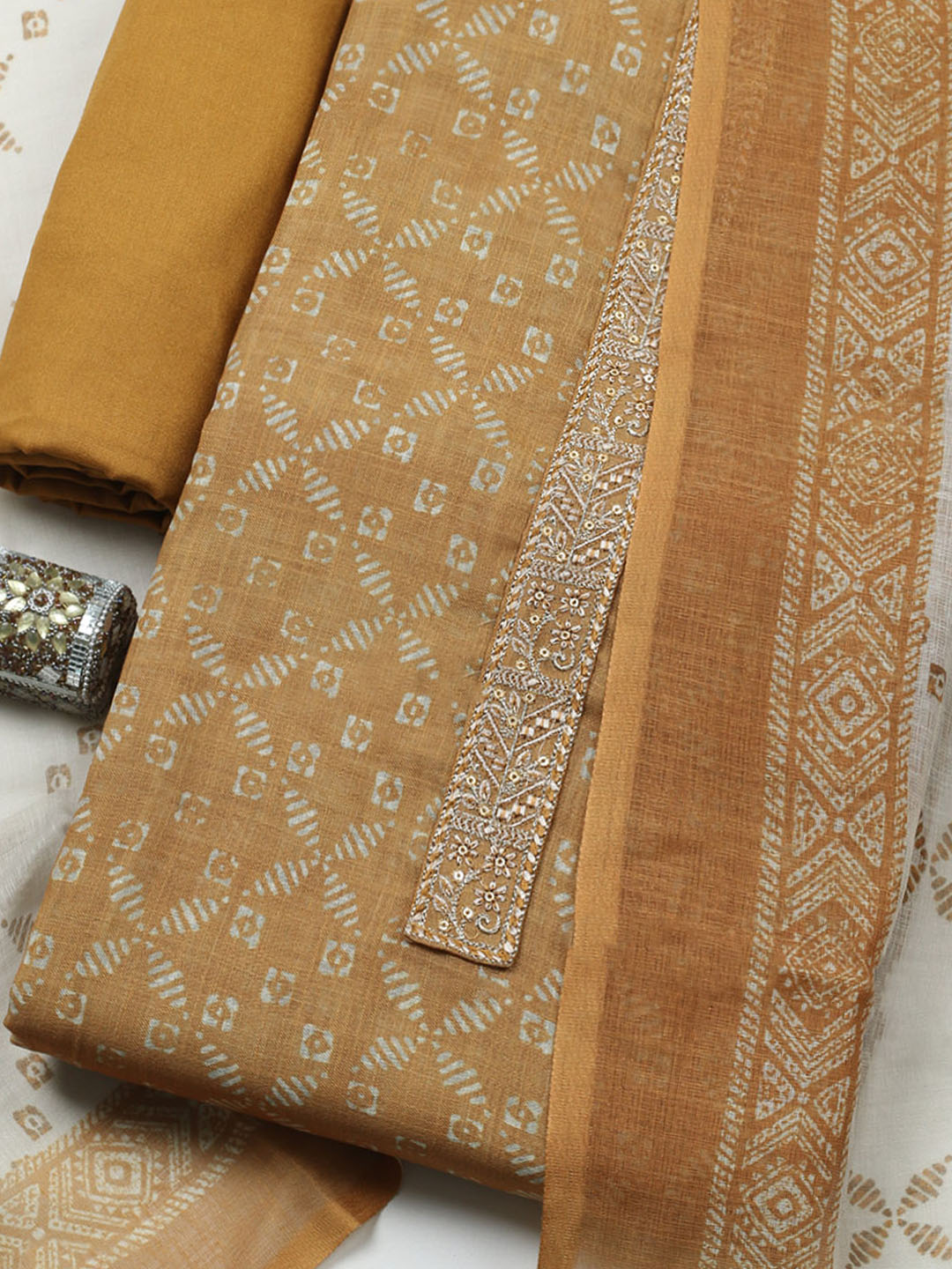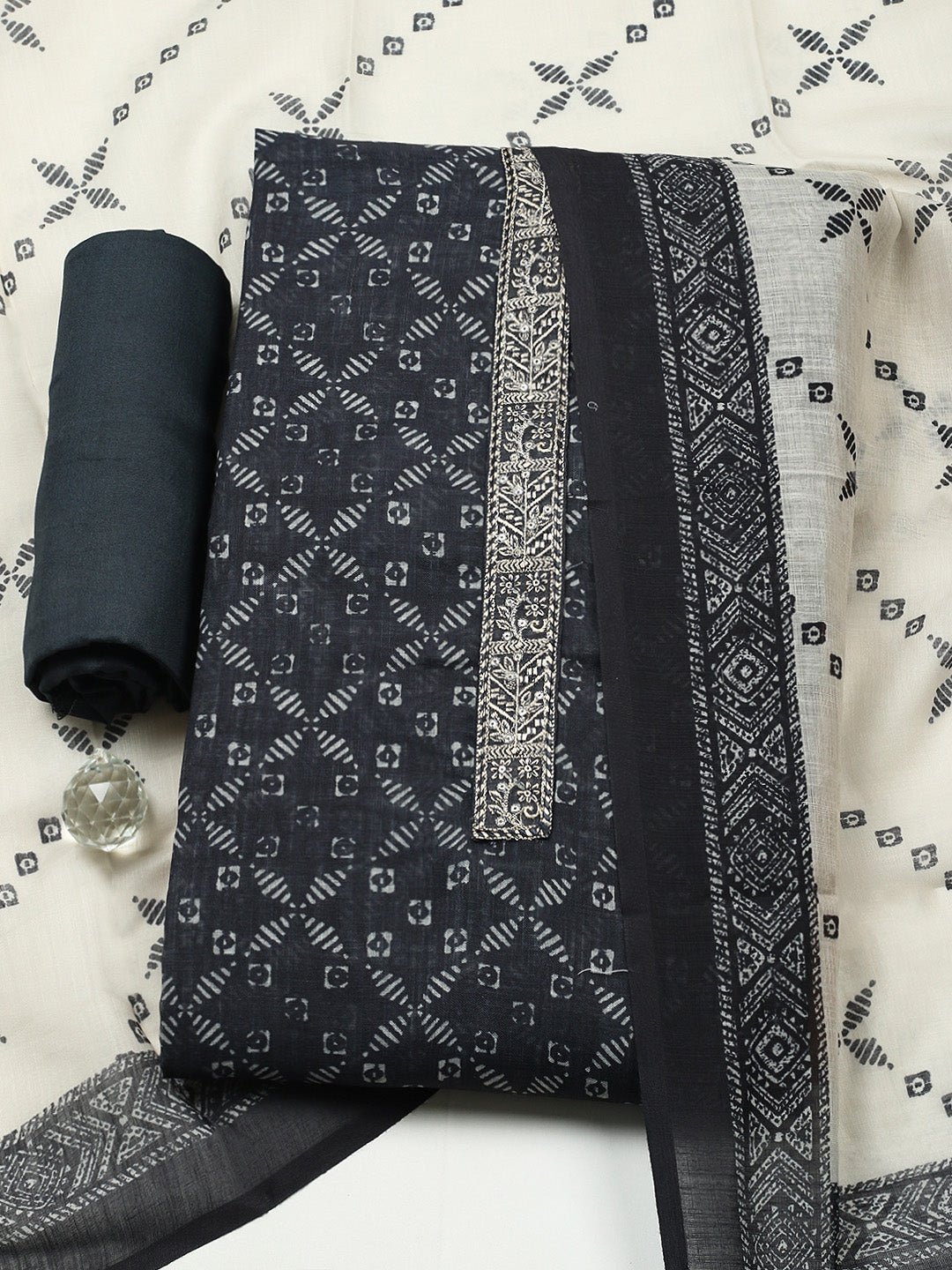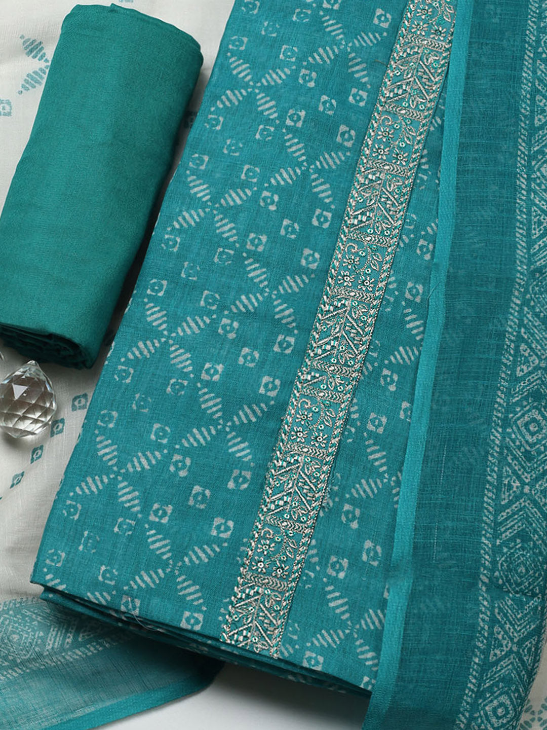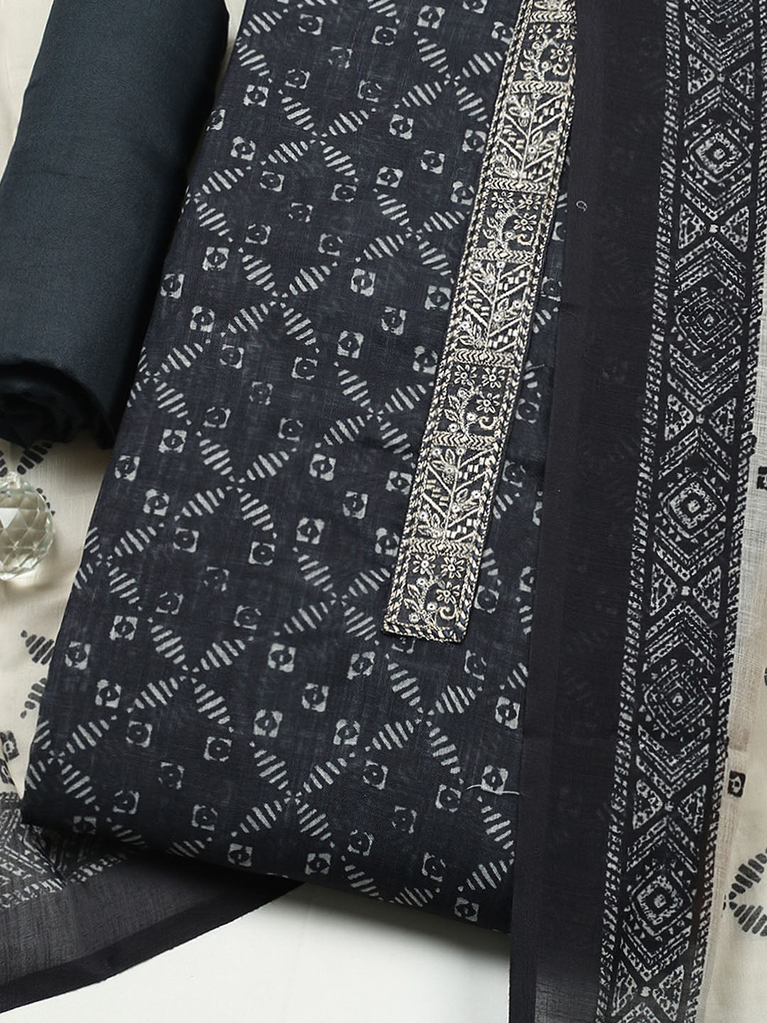 Embroidered Cotton Blend Unstitched Suit With Pant & Dupatta