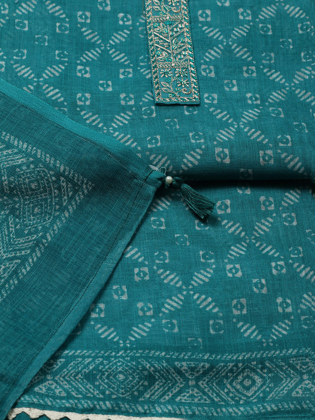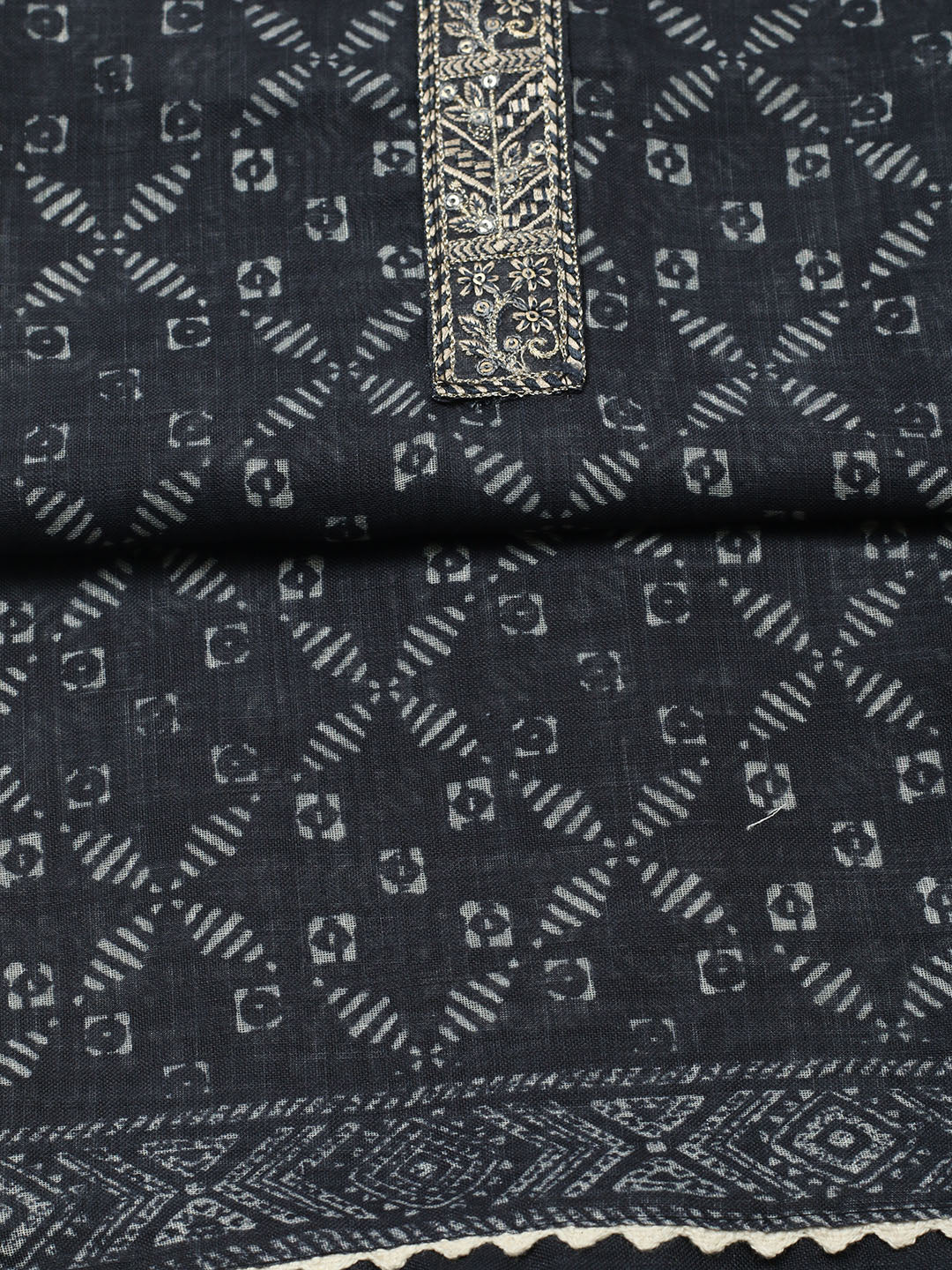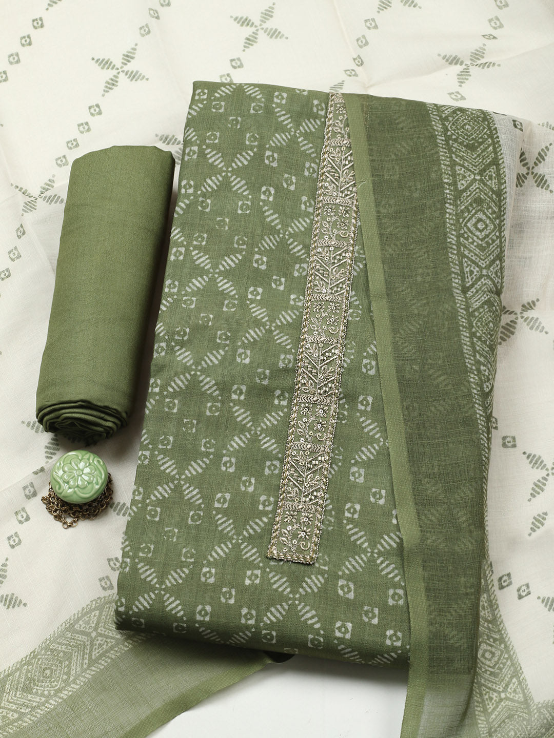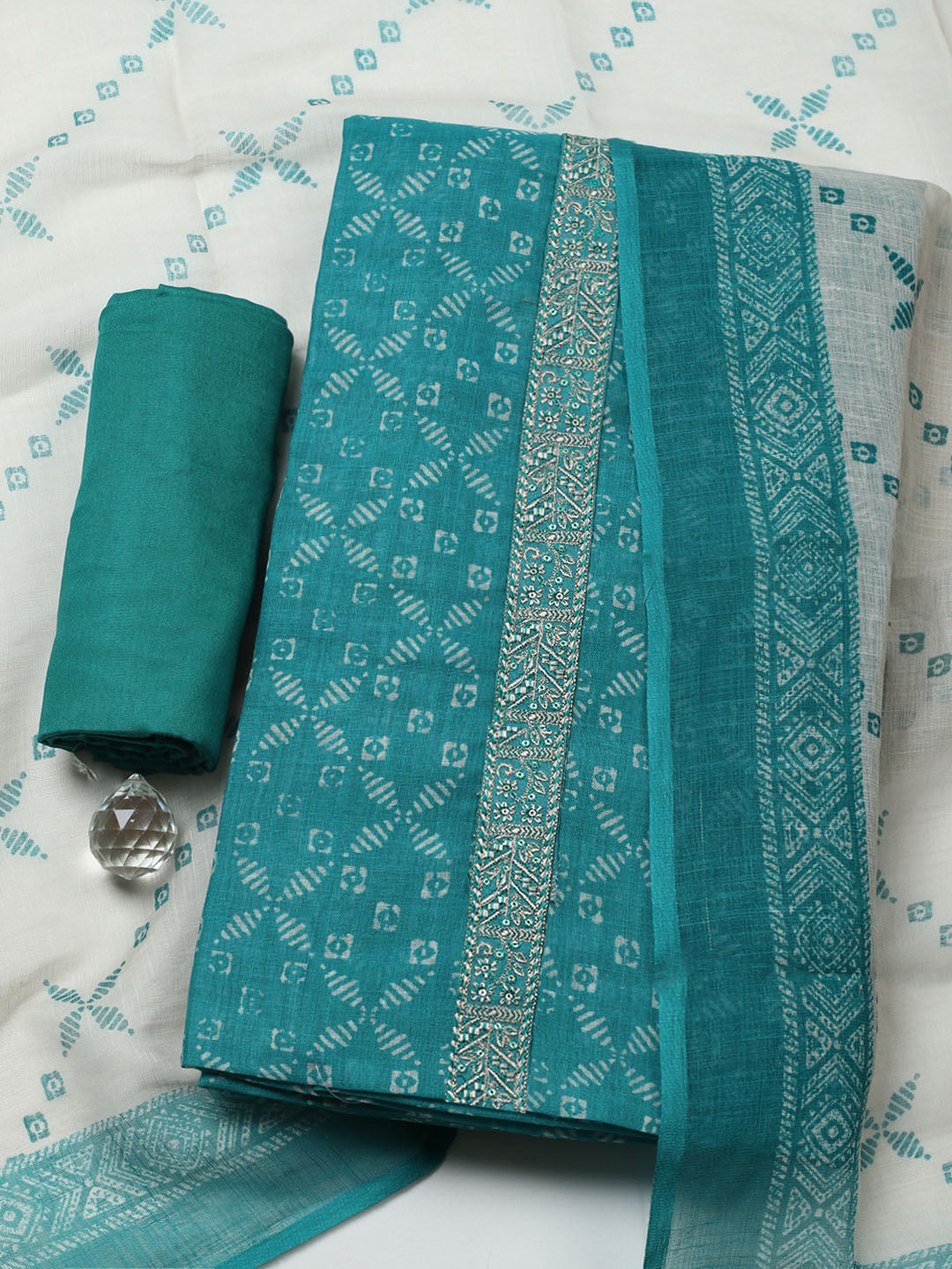 Embroidered Cotton Blend Unstitched Suit With Pant & Dupatta