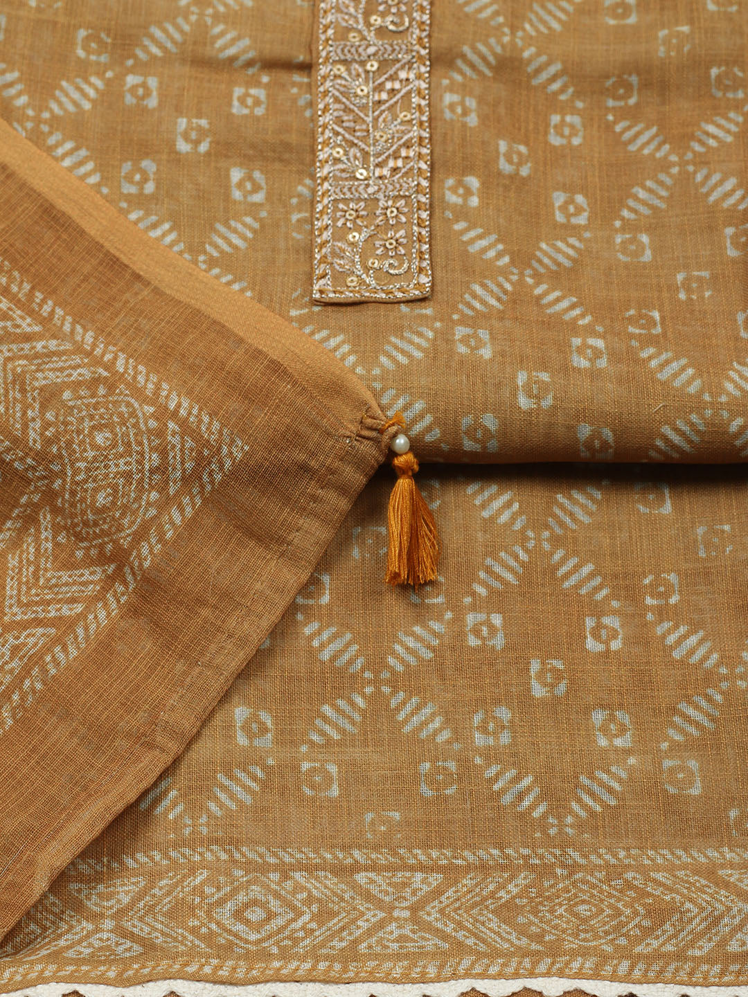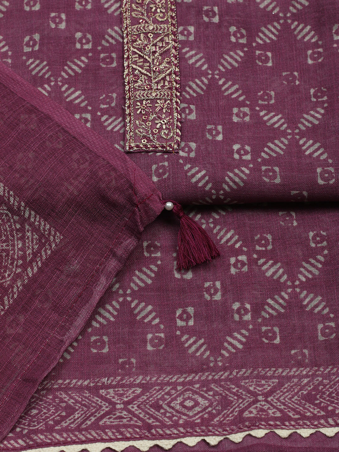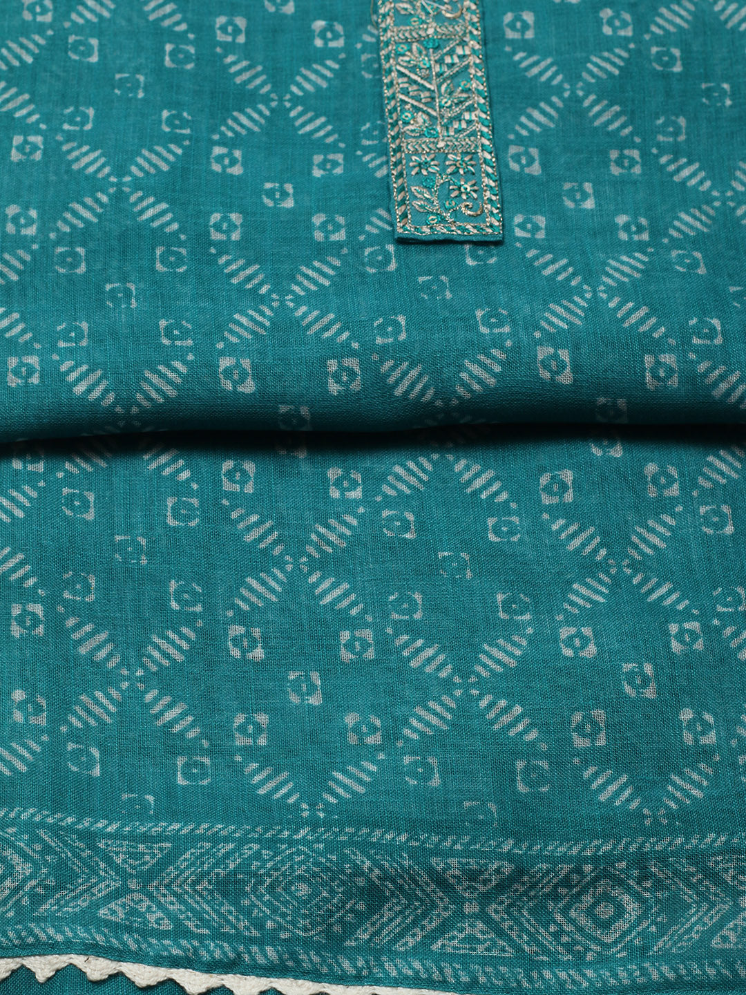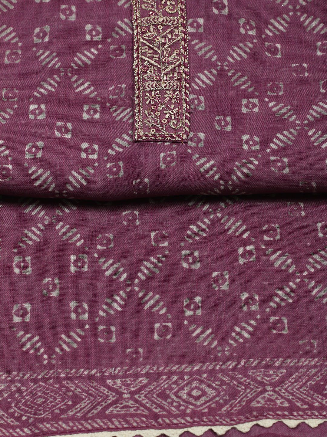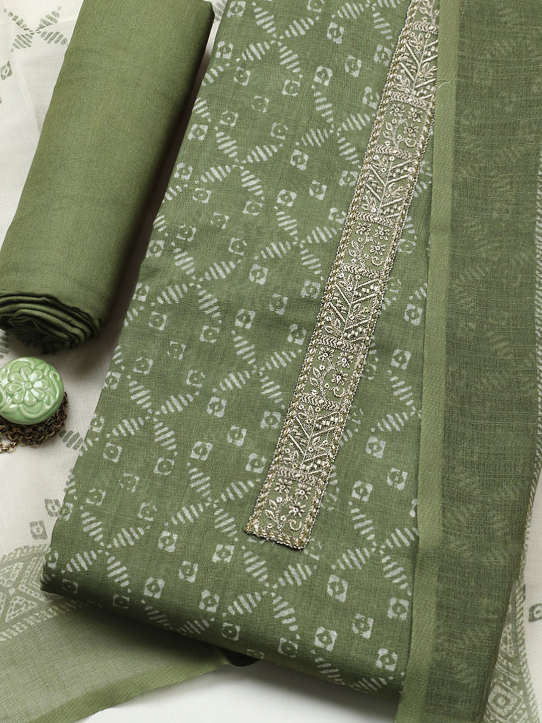 Embroidered Cotton Blend Unstitched Suit With Pant & Dupatta