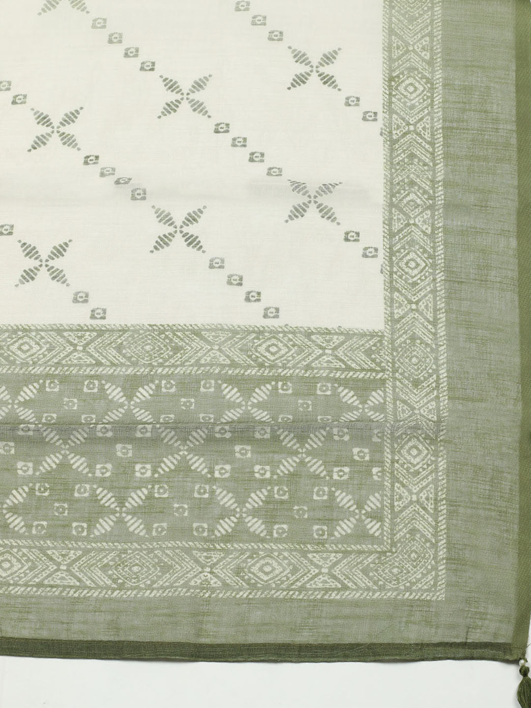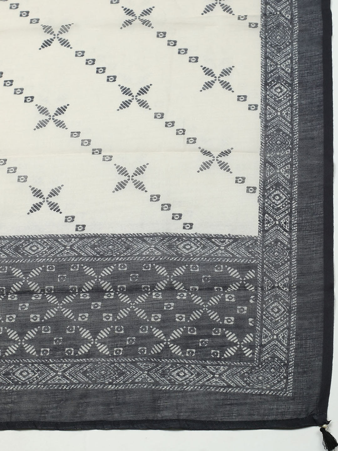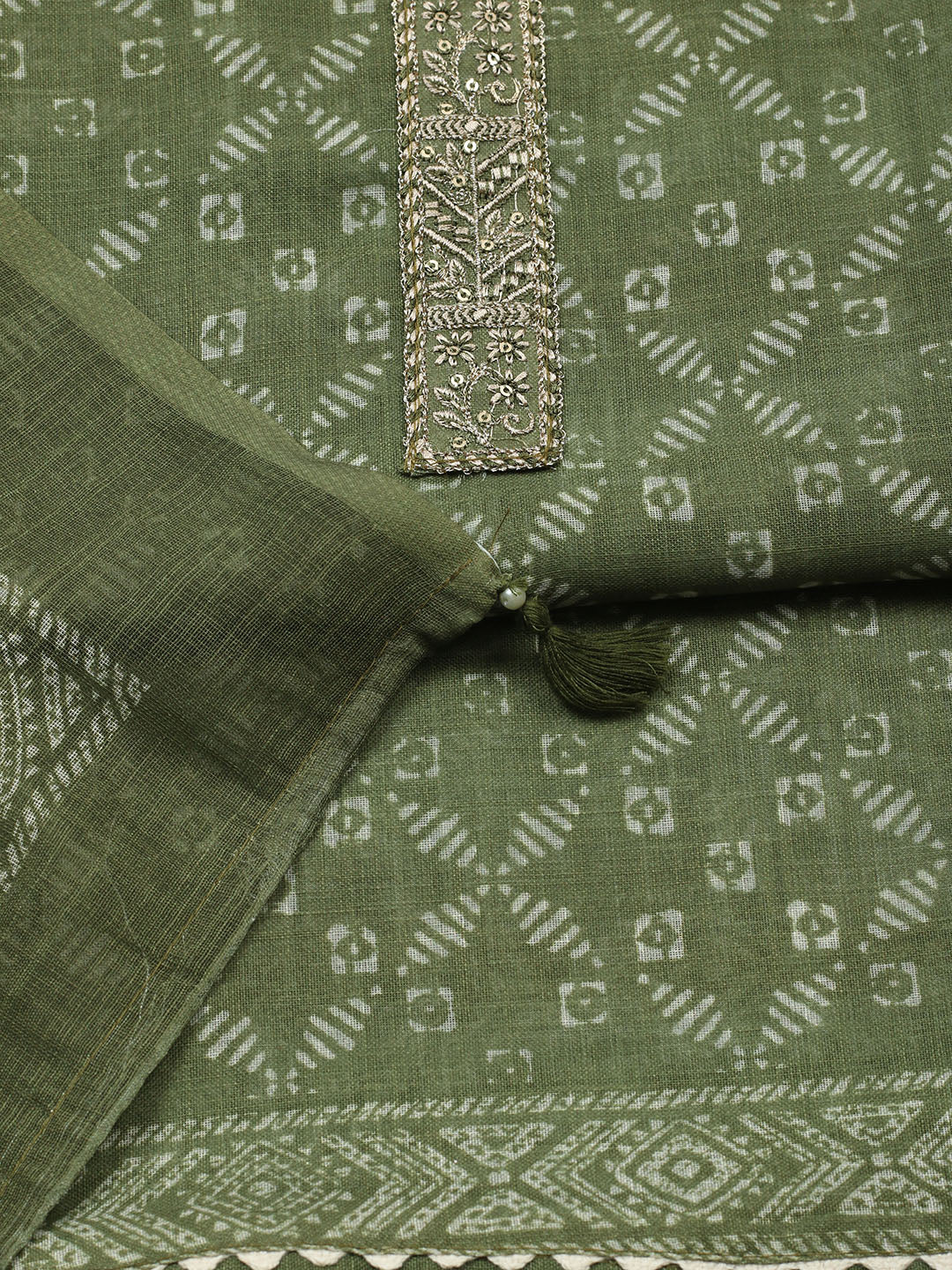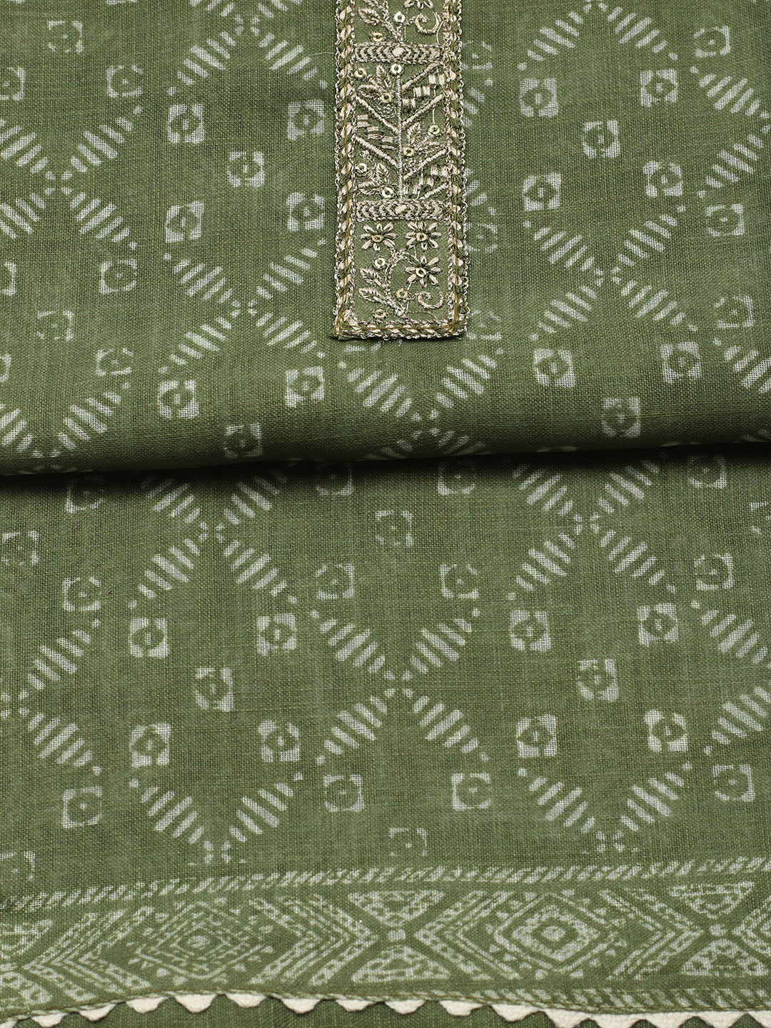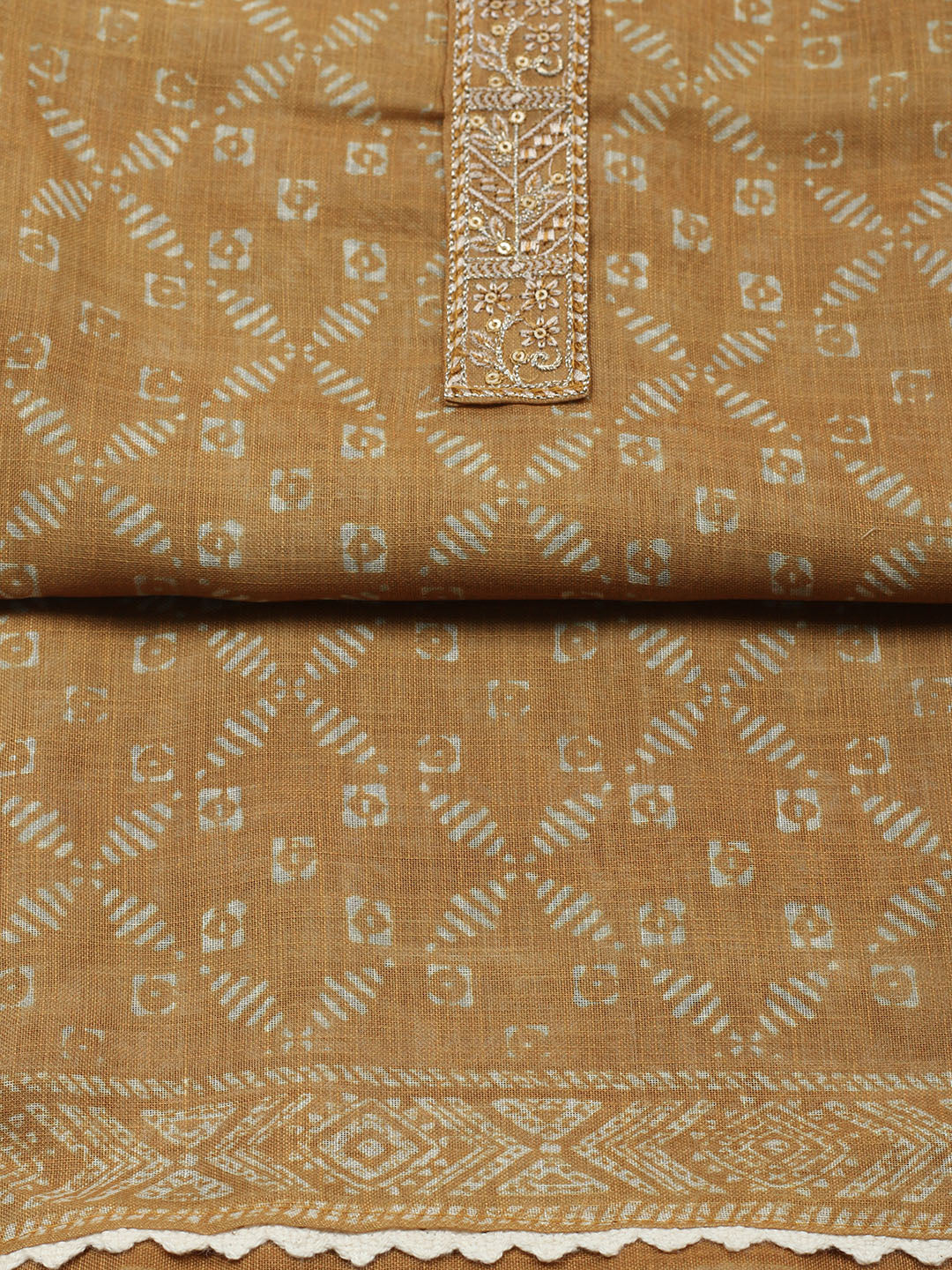 Embroidered Cotton Blend Unstitched Suit With Pant & Dupatta