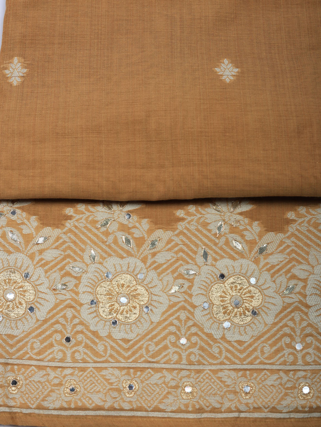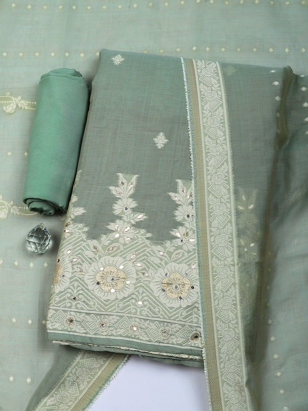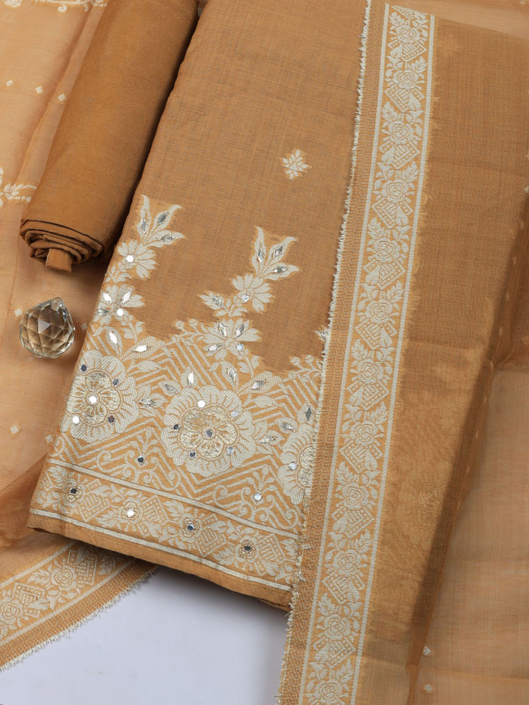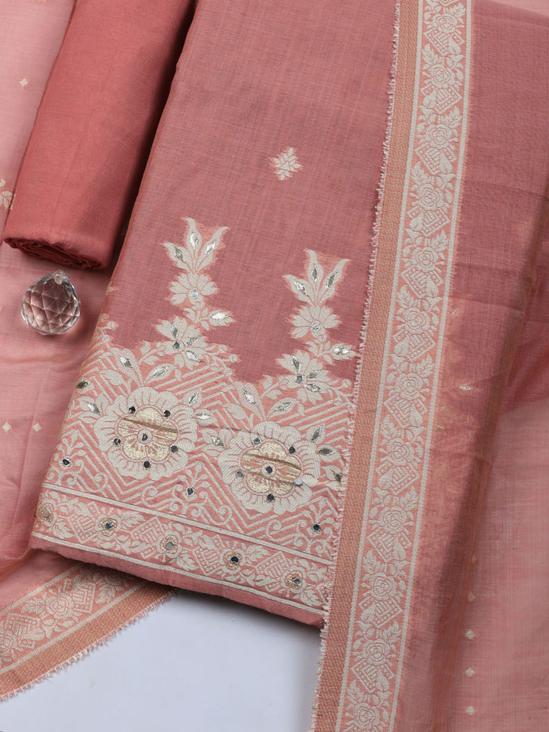 Embroidered Linen Blend Unstitched Suit With Pant & Dupatta