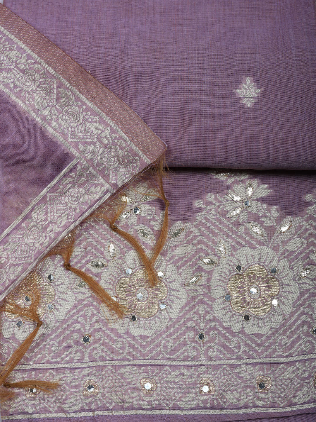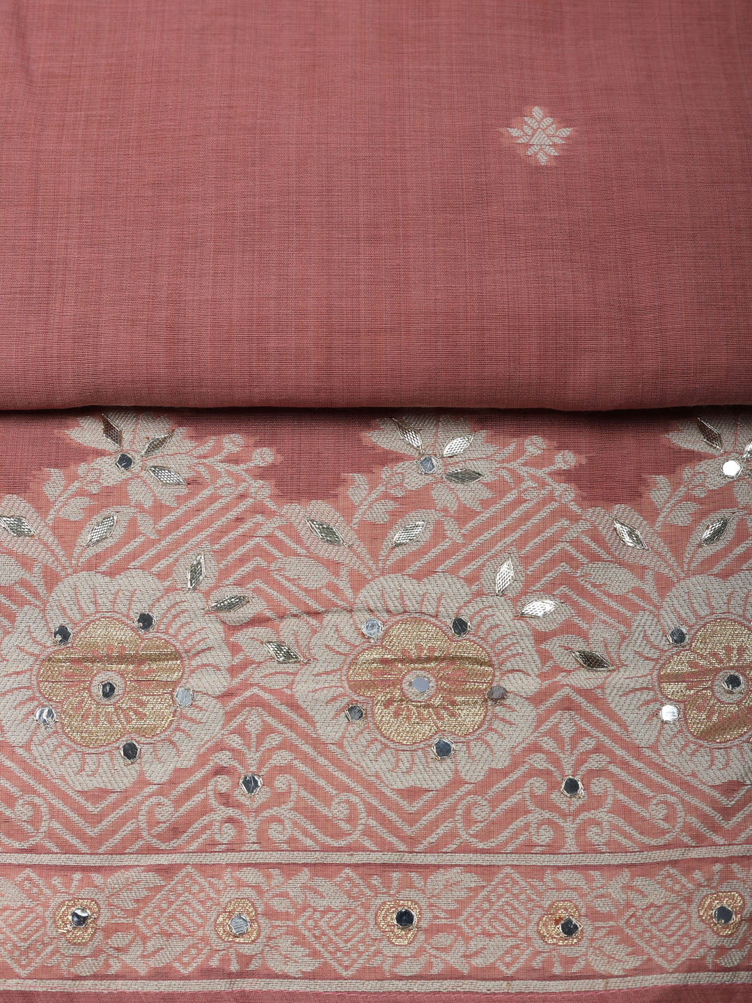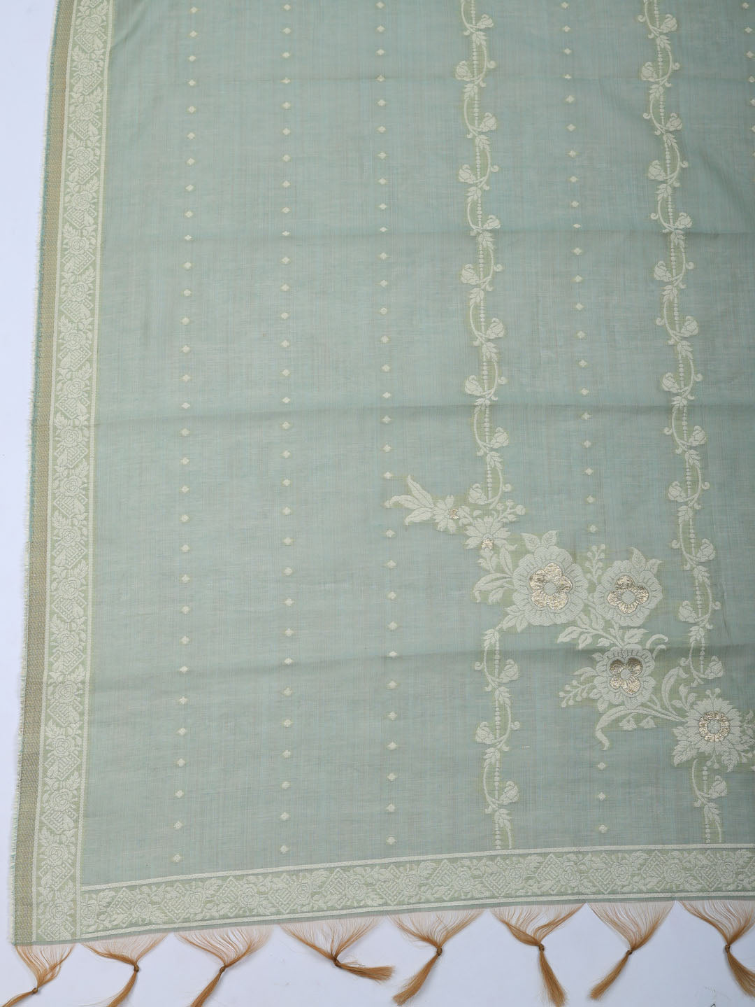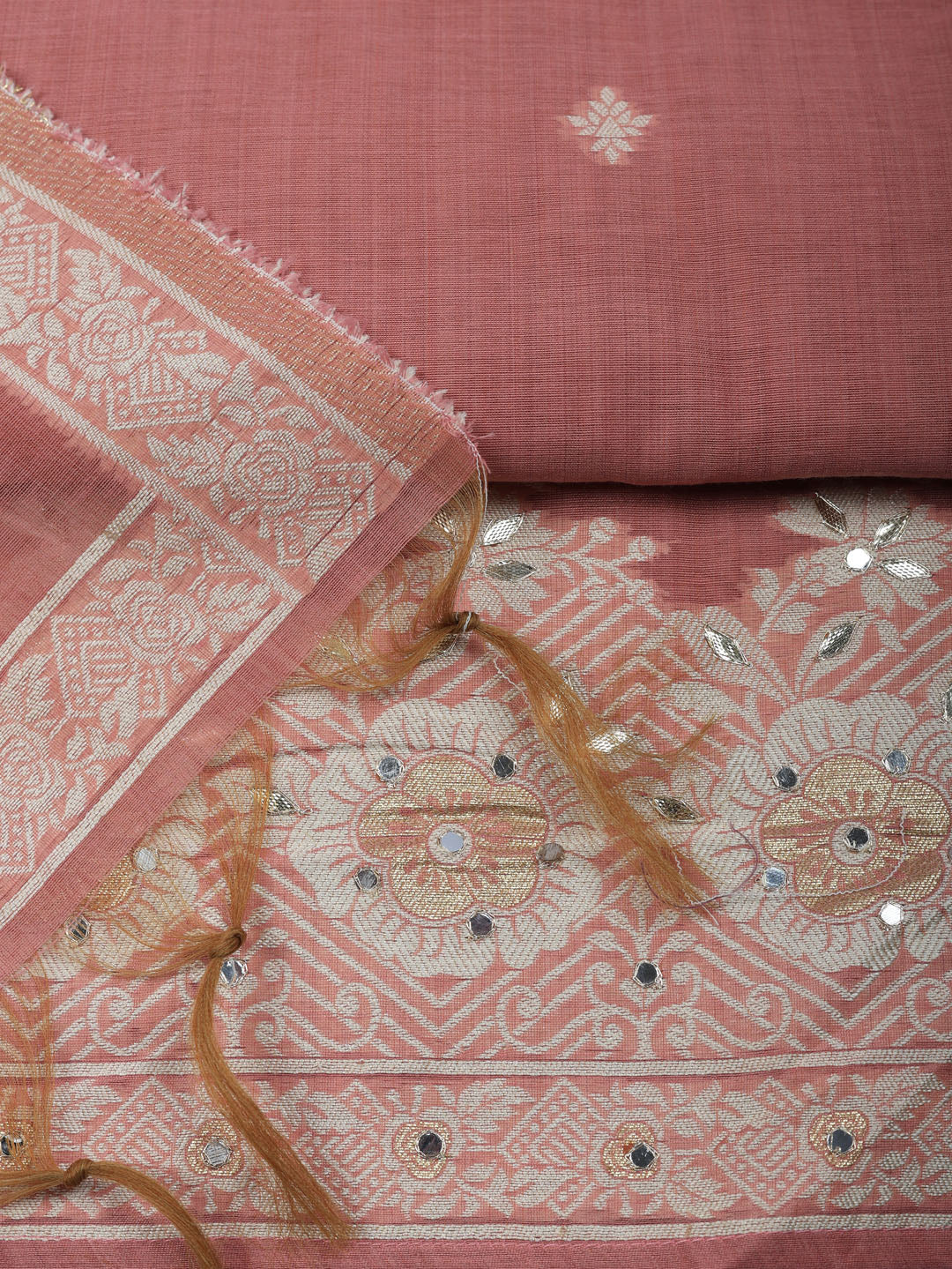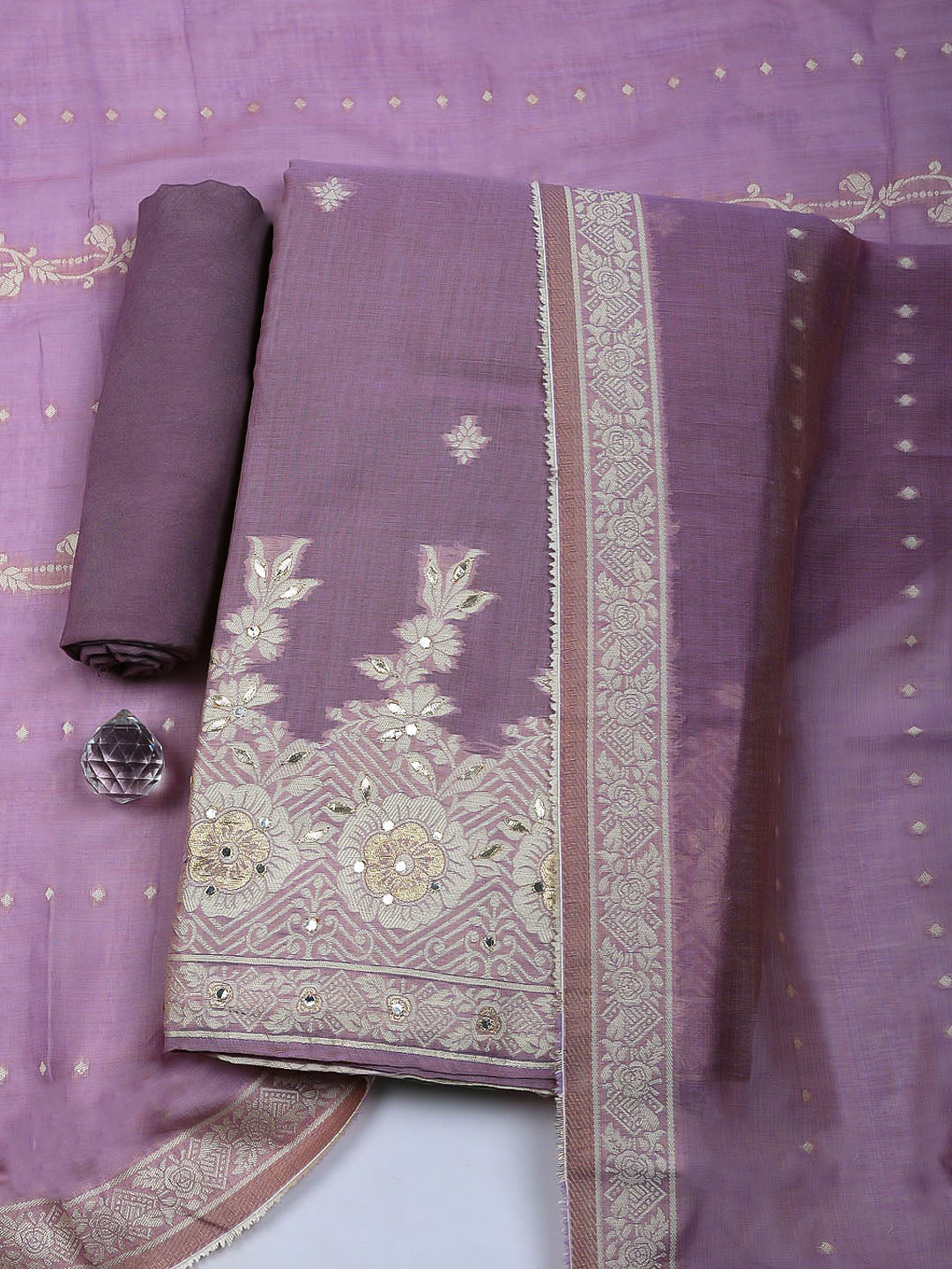 Embroidered Linen Blend Unstitched Suit With Pant & Dupatta