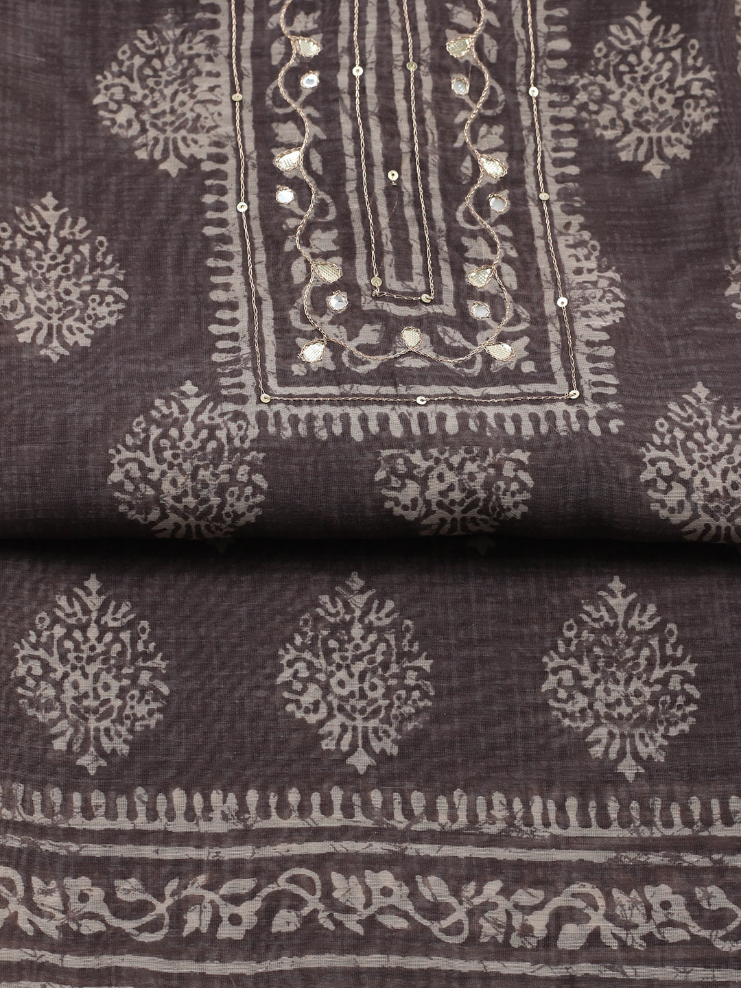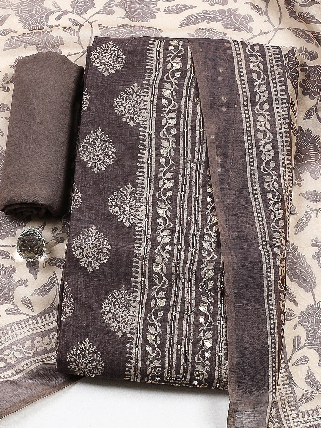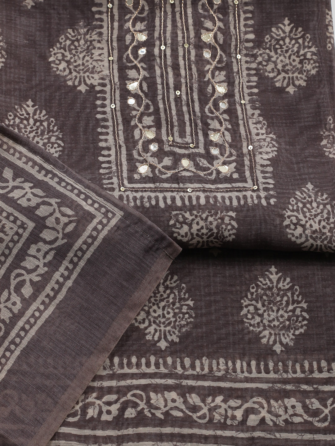 Embroidered Chanderi Unstitched Suit With Pant & Dupatta