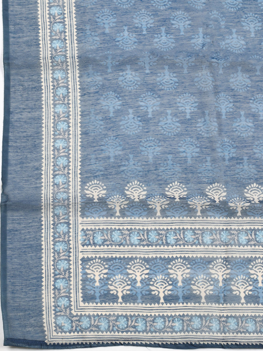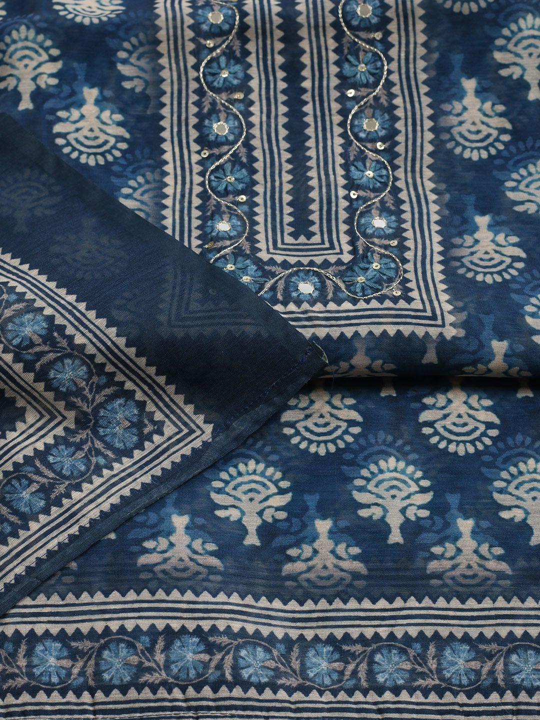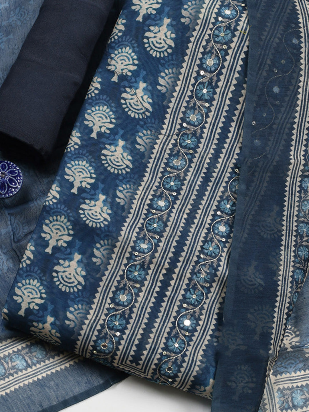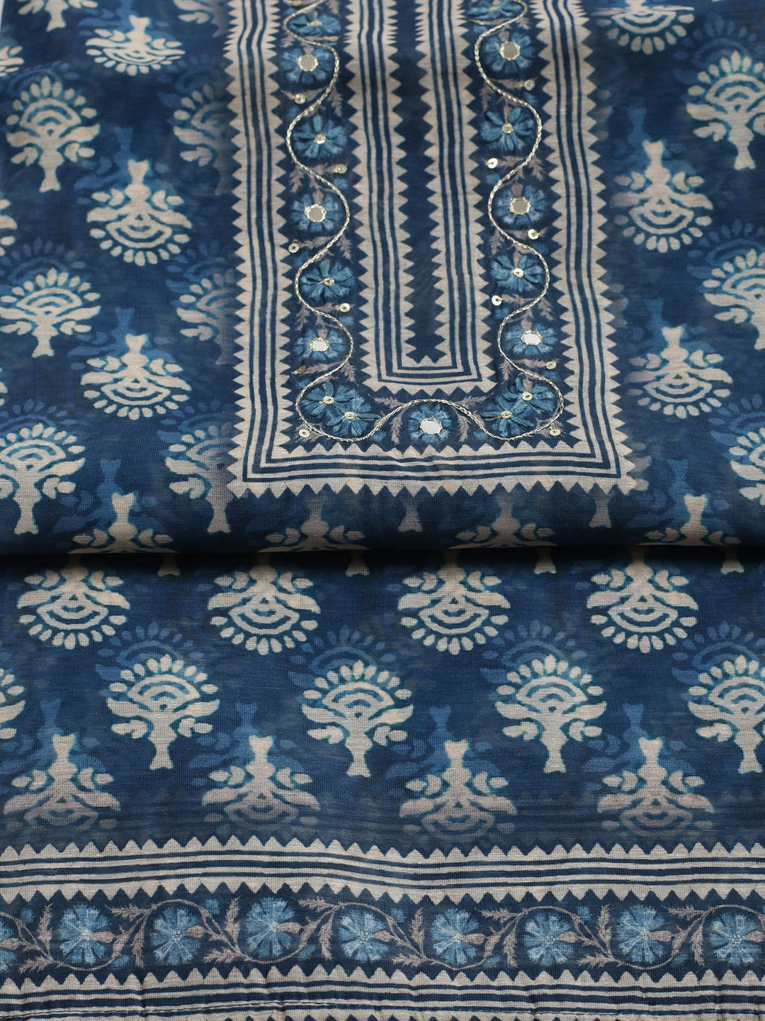 Embroidered Chanderi Unstitched Suit With Pant & Dupatta