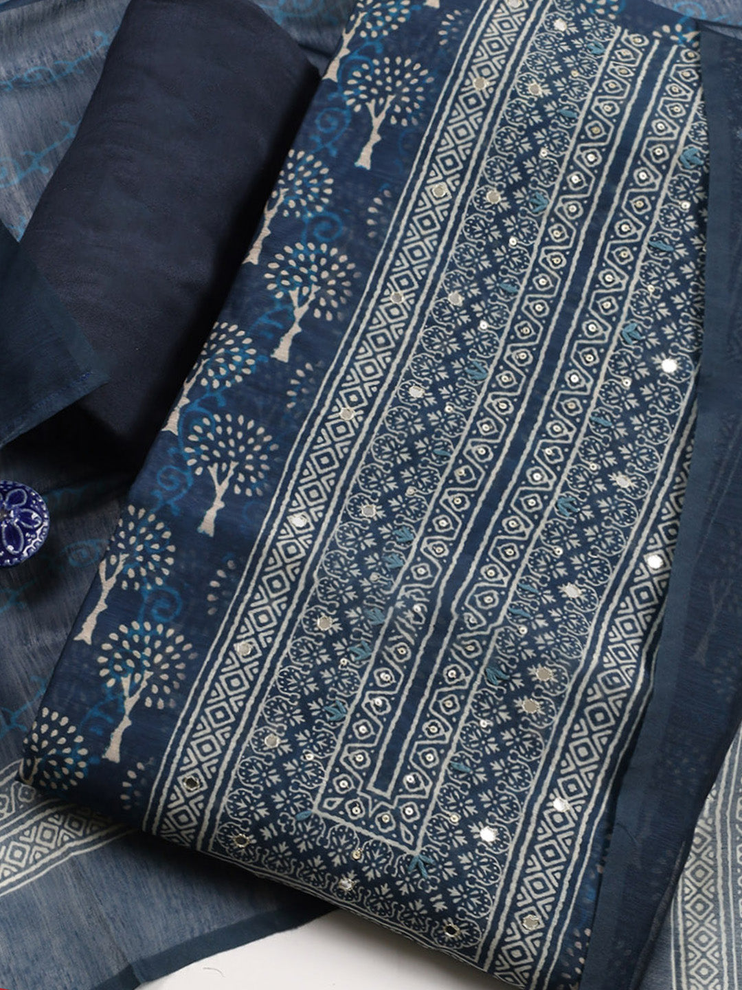 Embroidered Chanderi Unstitched Suit With Pant & Dupatta