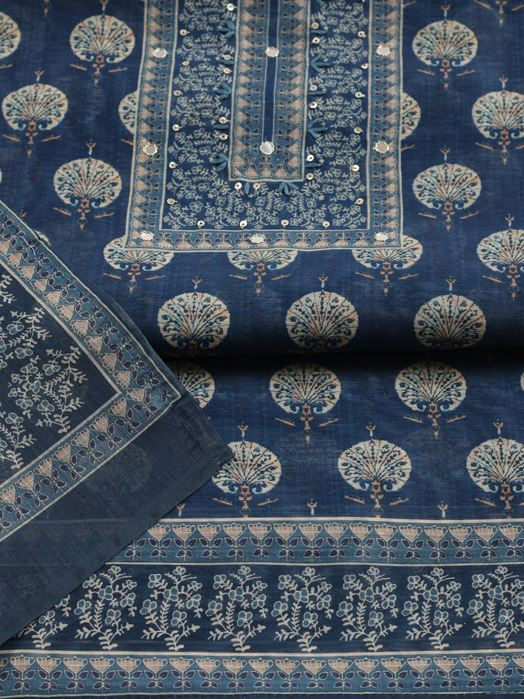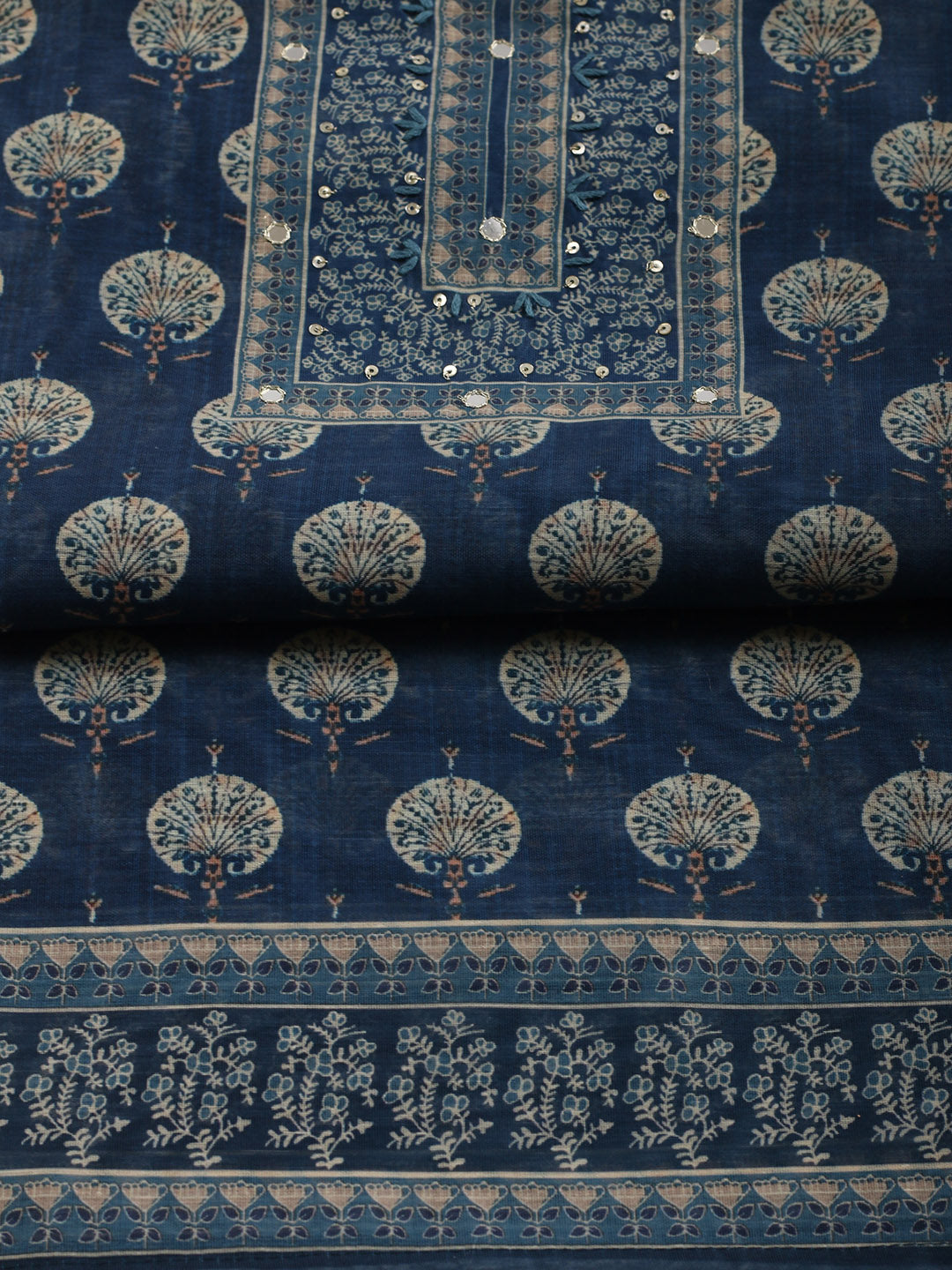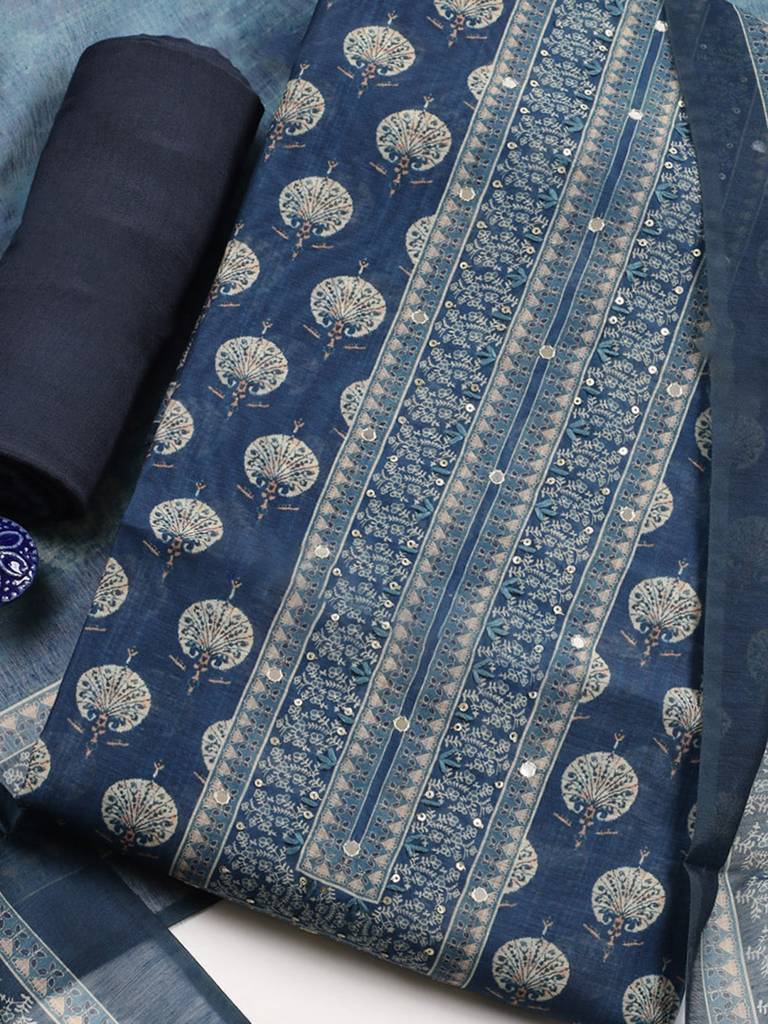 Embroidered Chanderi Unstitched Suit With Pant & Dupatta