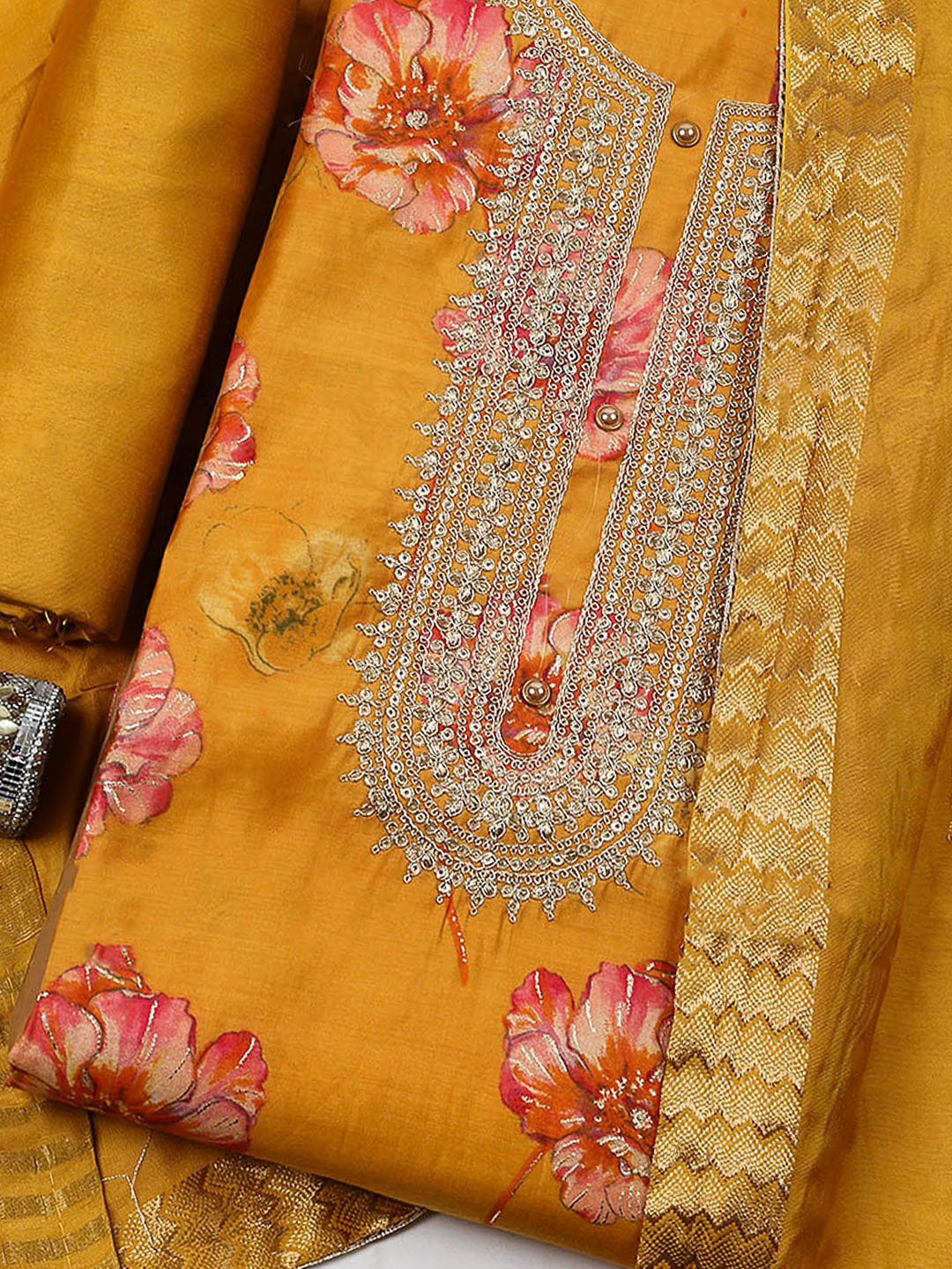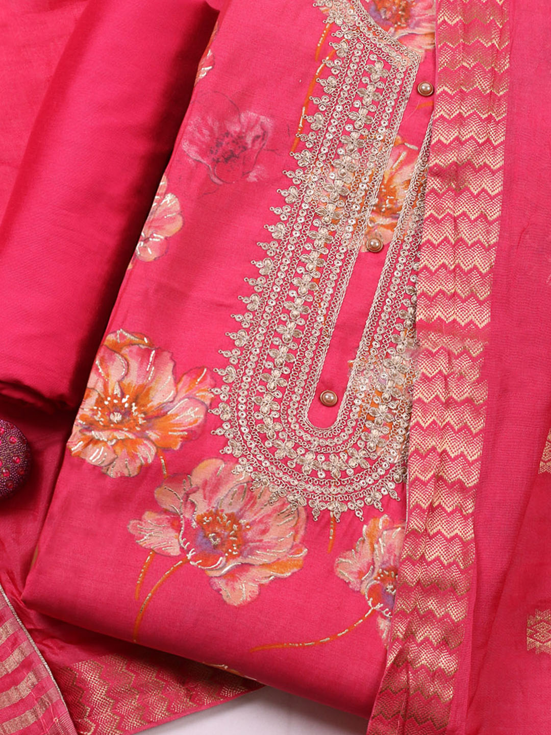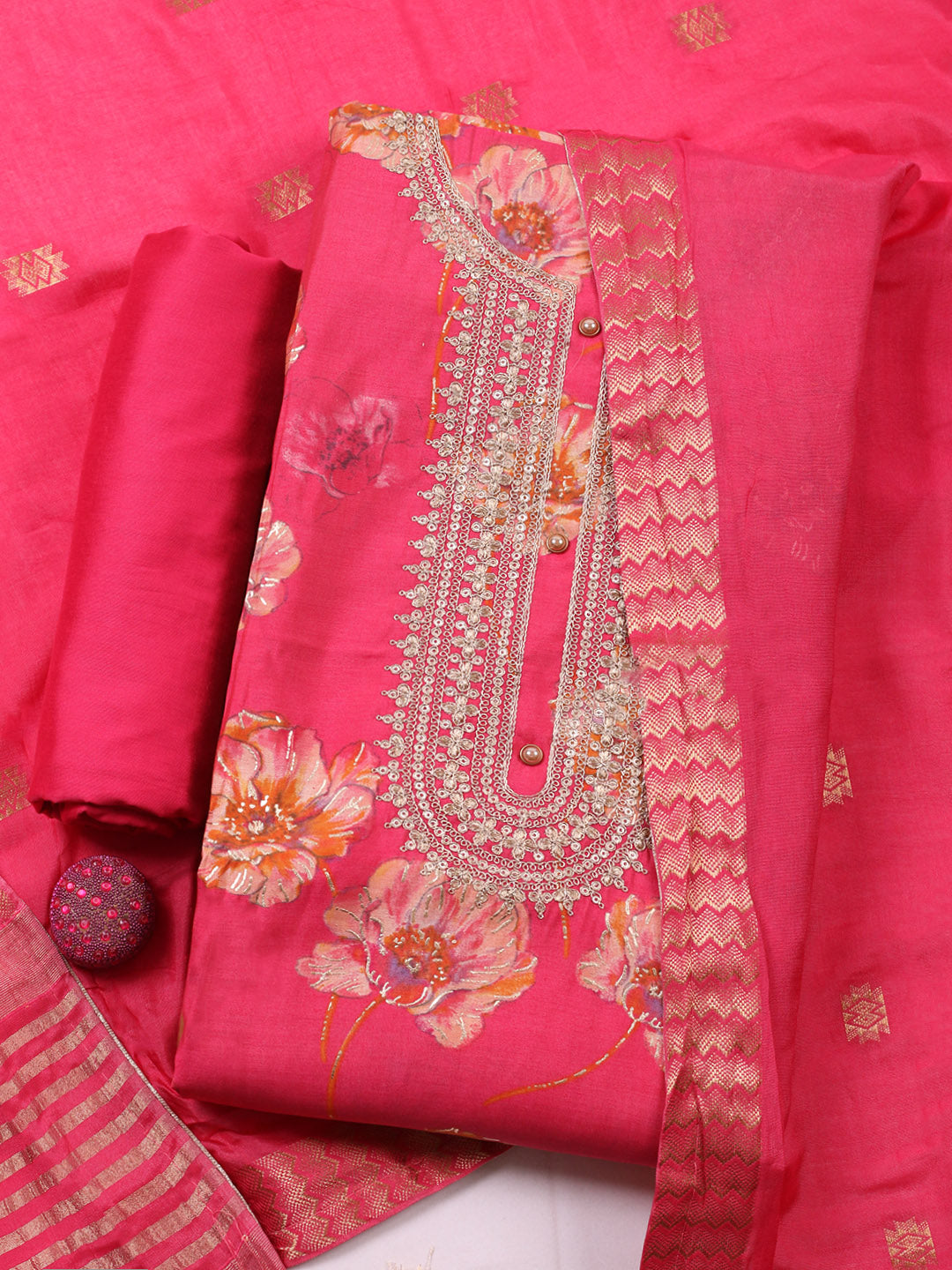 Embroidered Cotton Blend Unstitched Suit With Pant & Dupatta