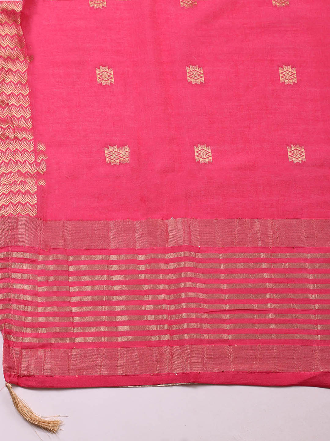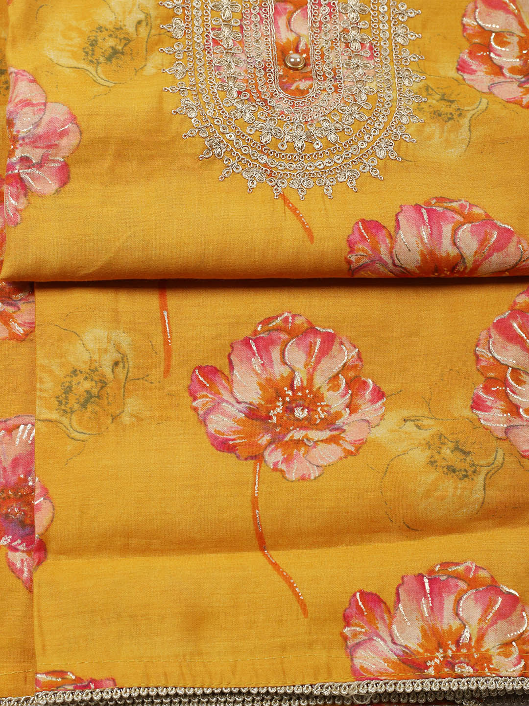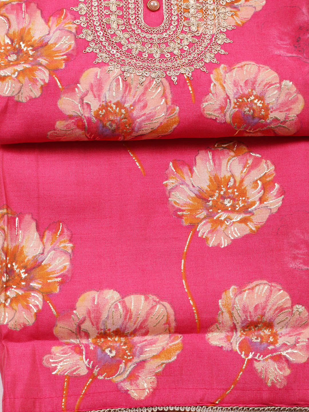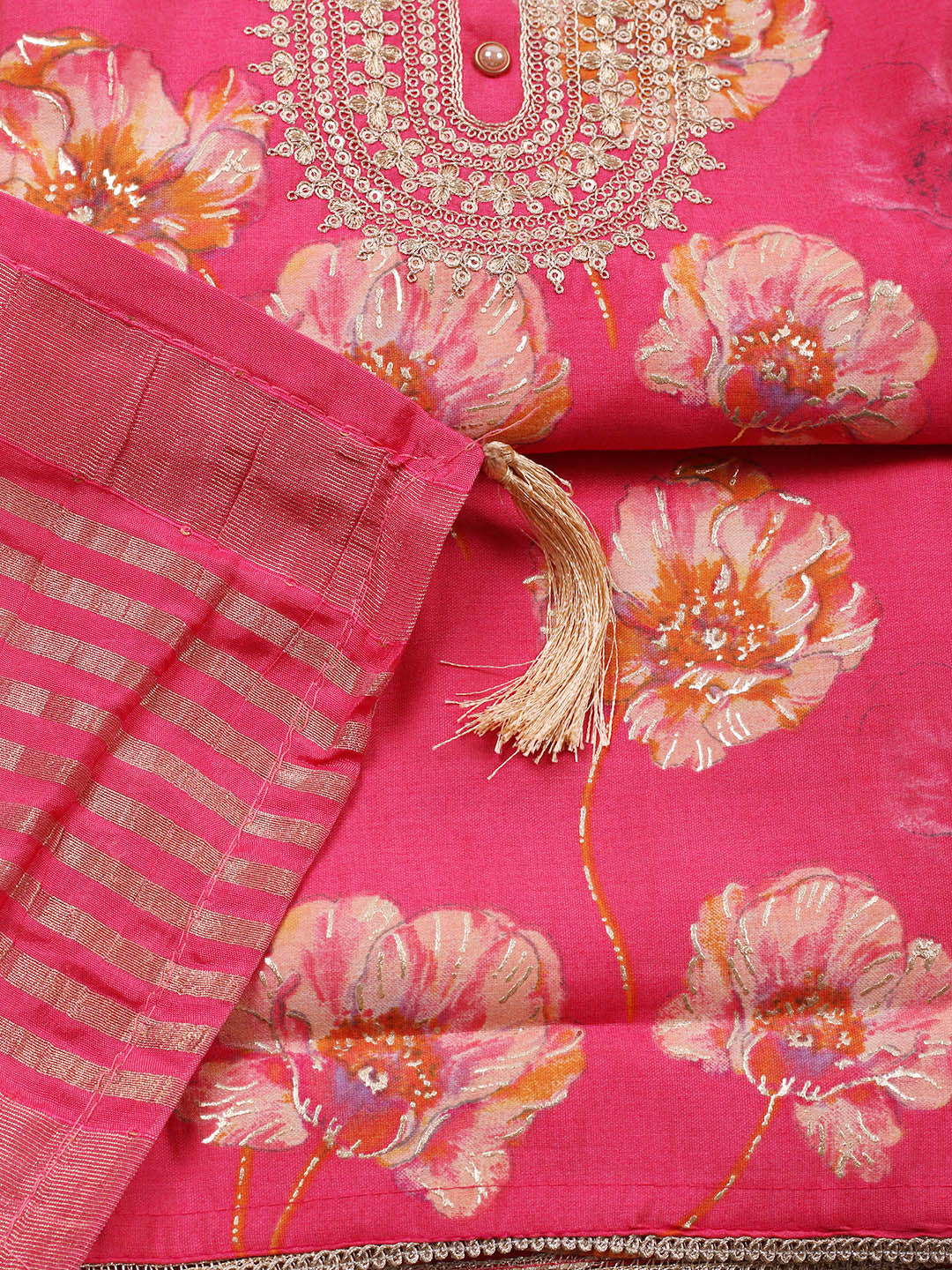 Embroidered Cotton Blend Unstitched Suit With Pant & Dupatta