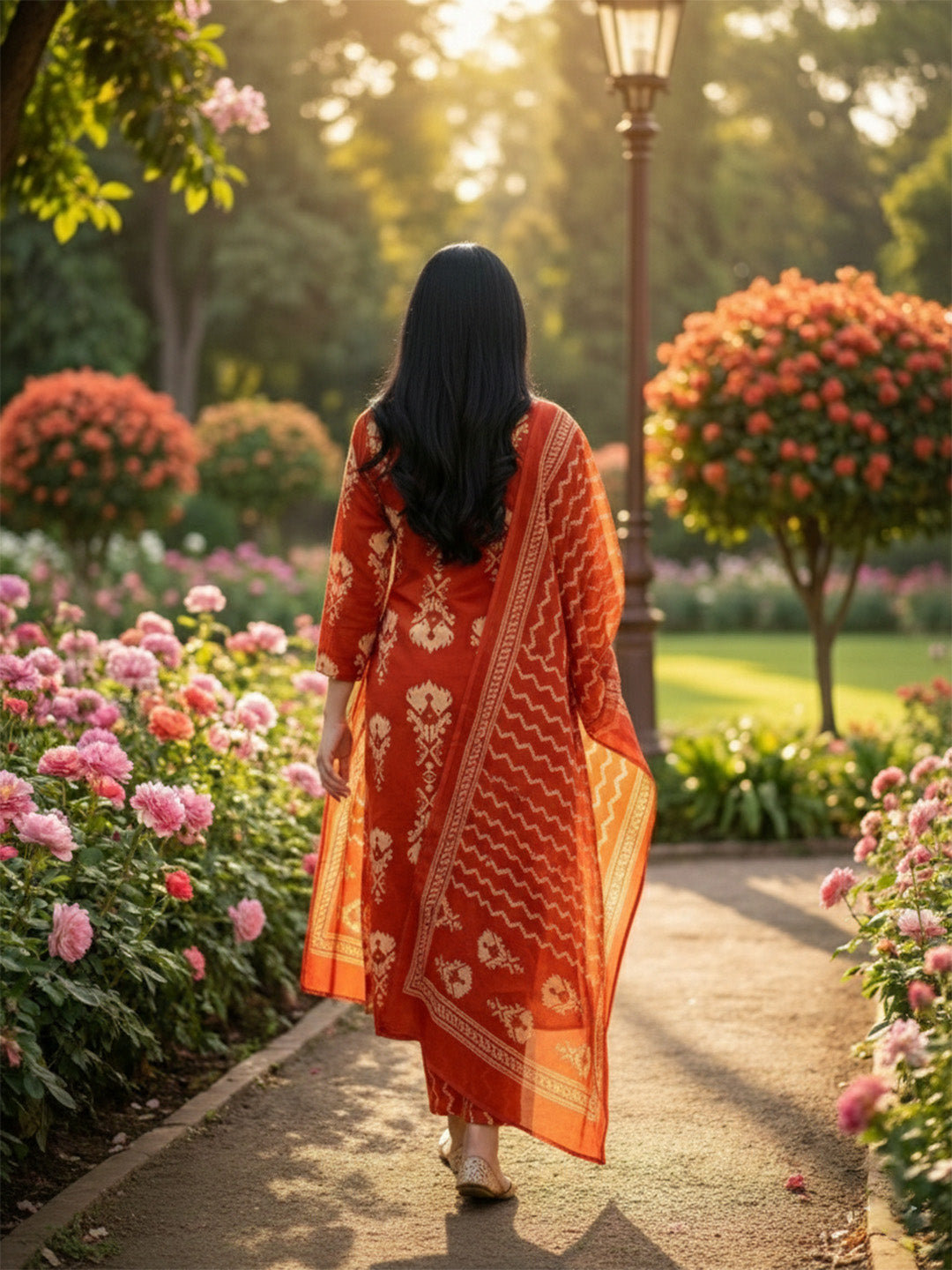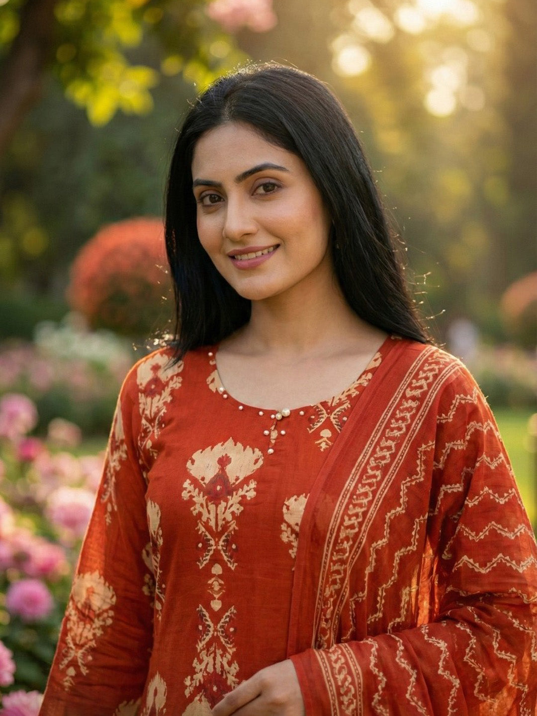 Printed Cotton Blend Kurta With Pant & Dupatta