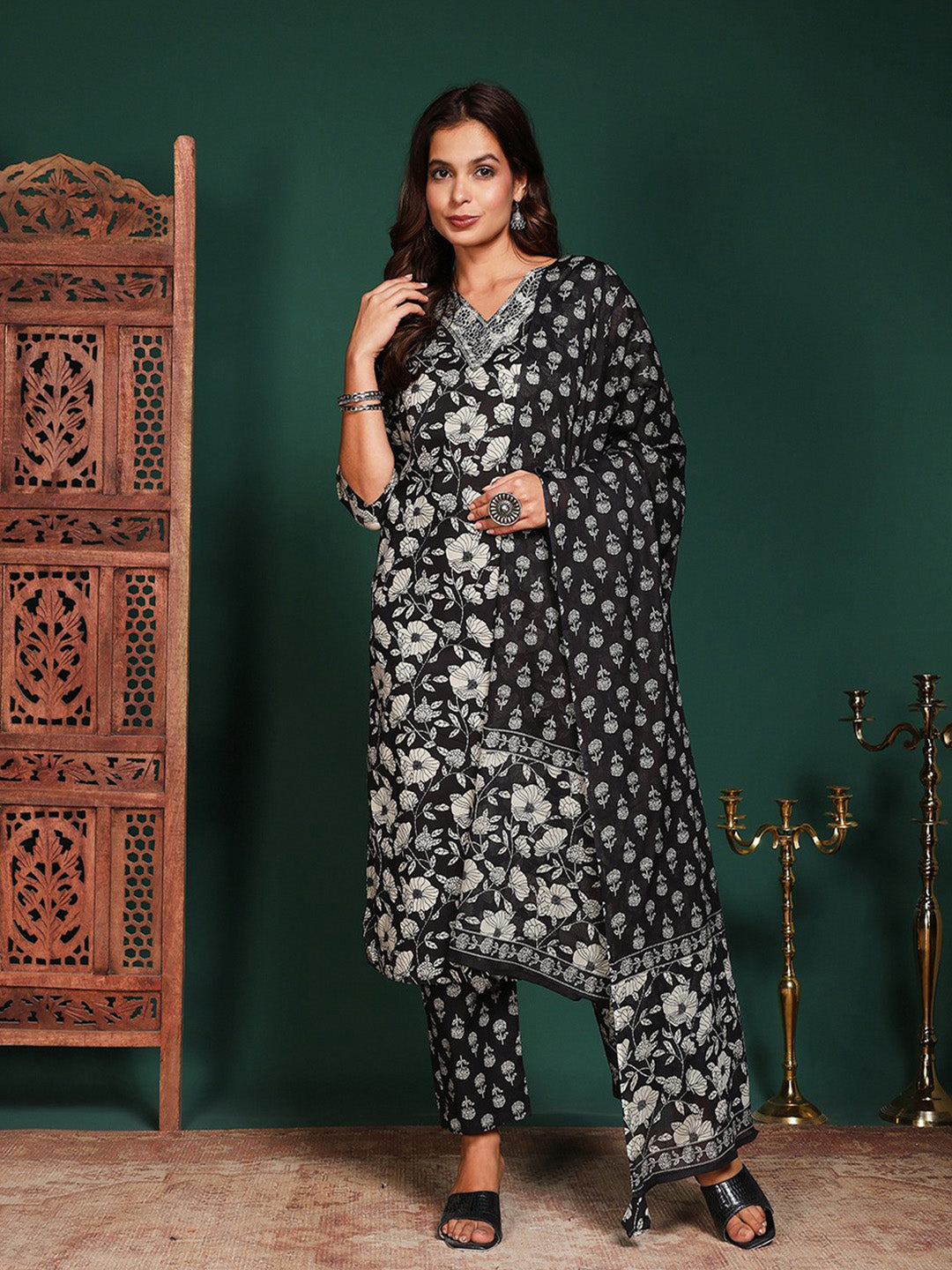 Printed Cotton Blend Kurta With Pant & Dupatta