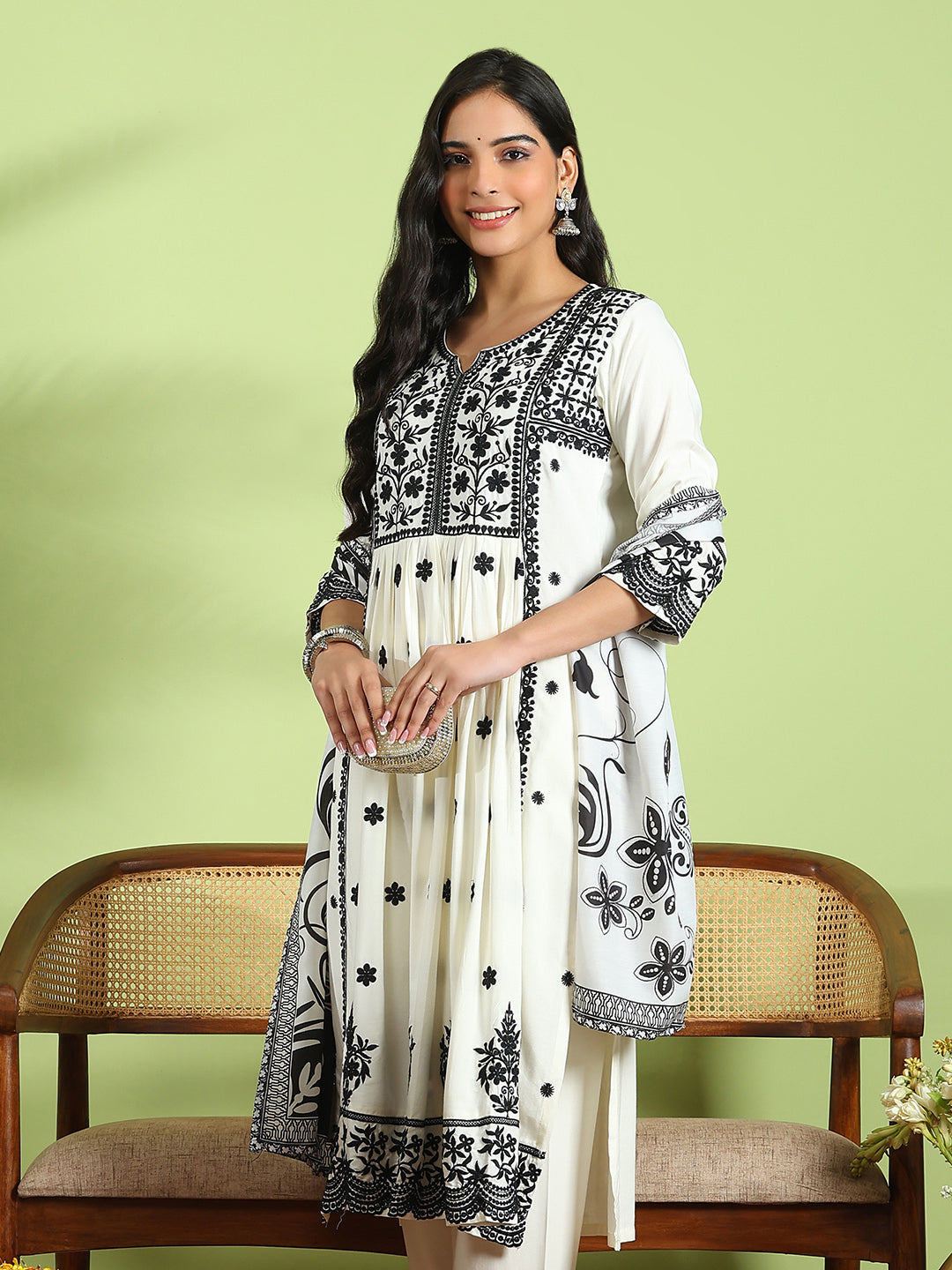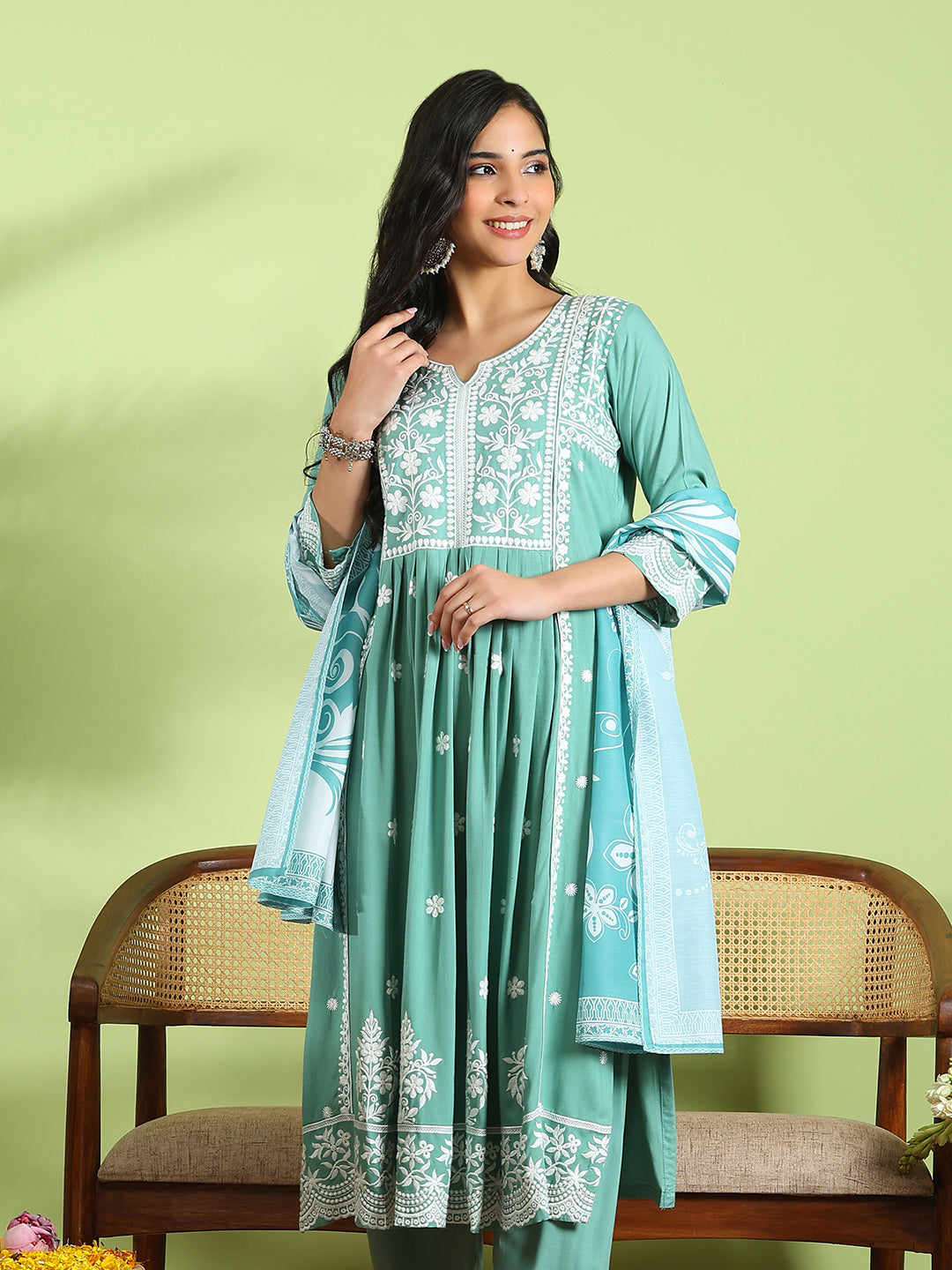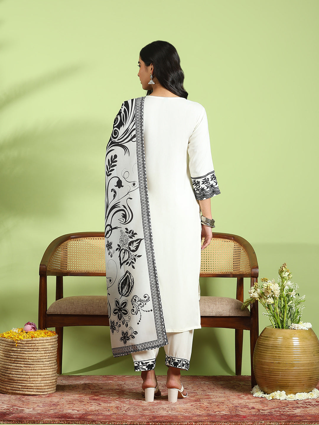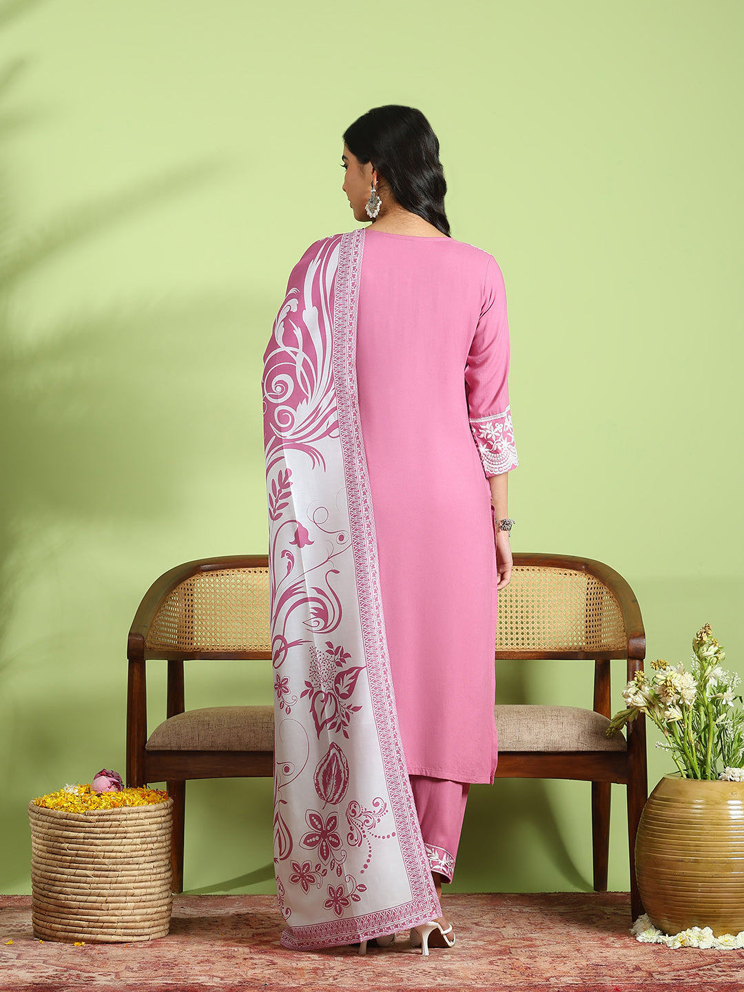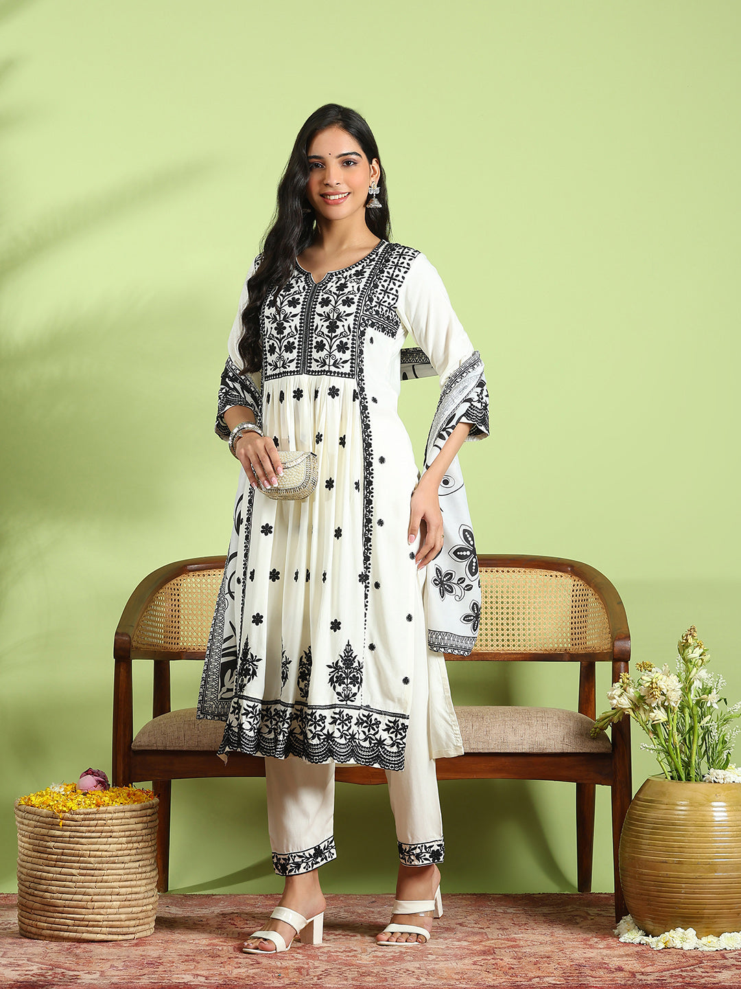 Embroidered Cotton Kurta With Pant & Dupatta