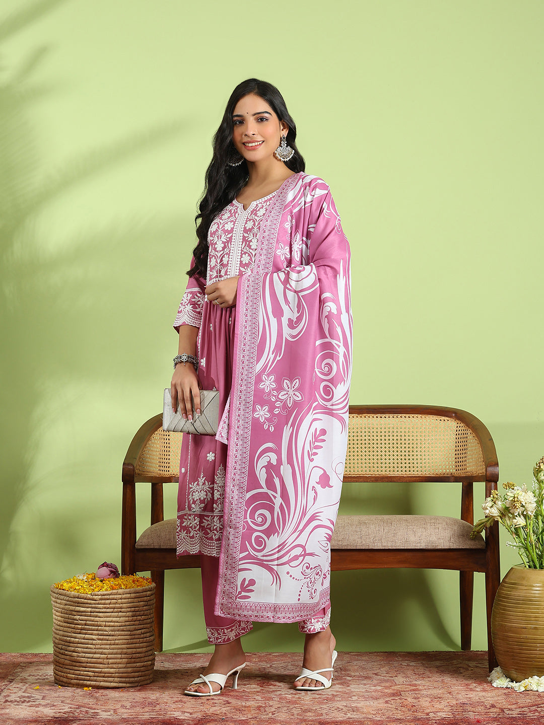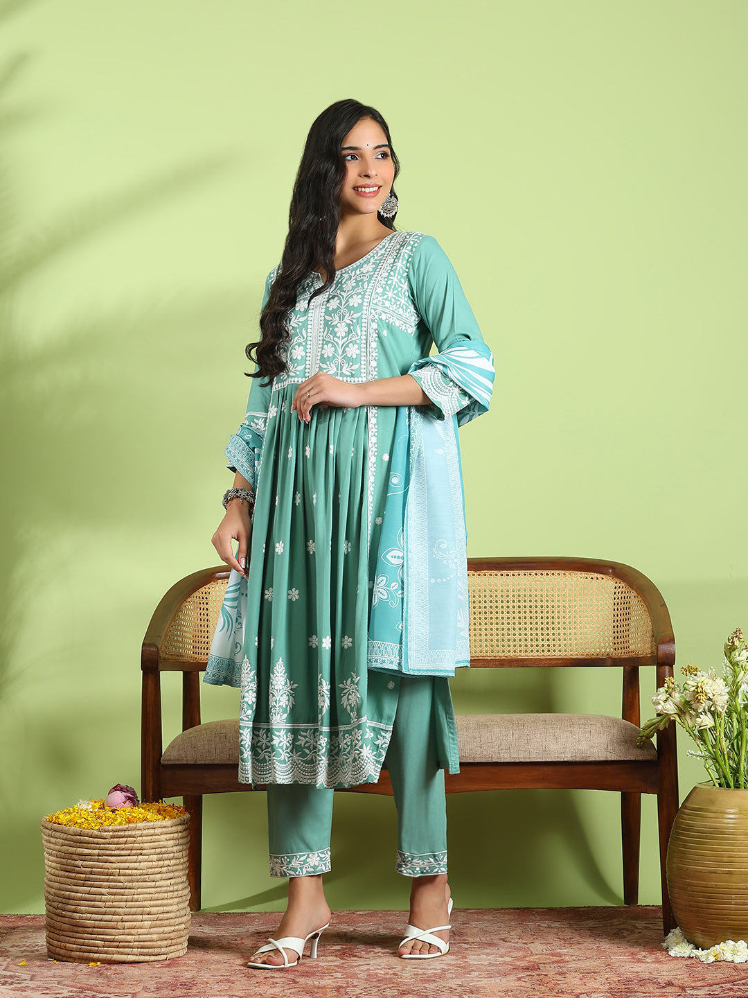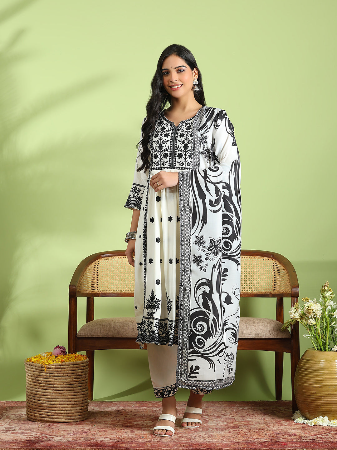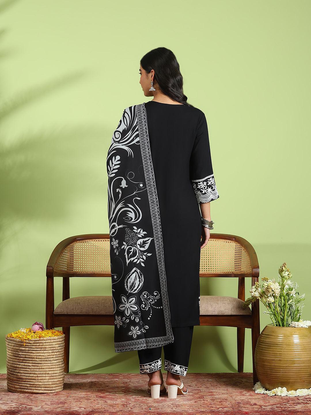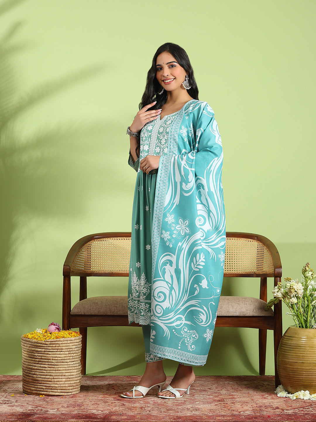 Embroidered Cotton Kurta With Pant & Dupatta