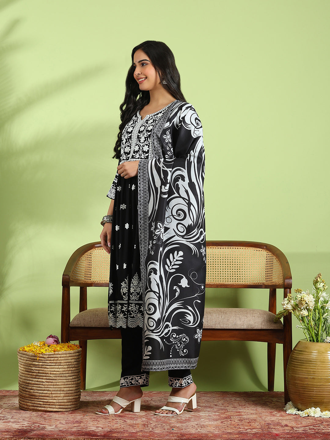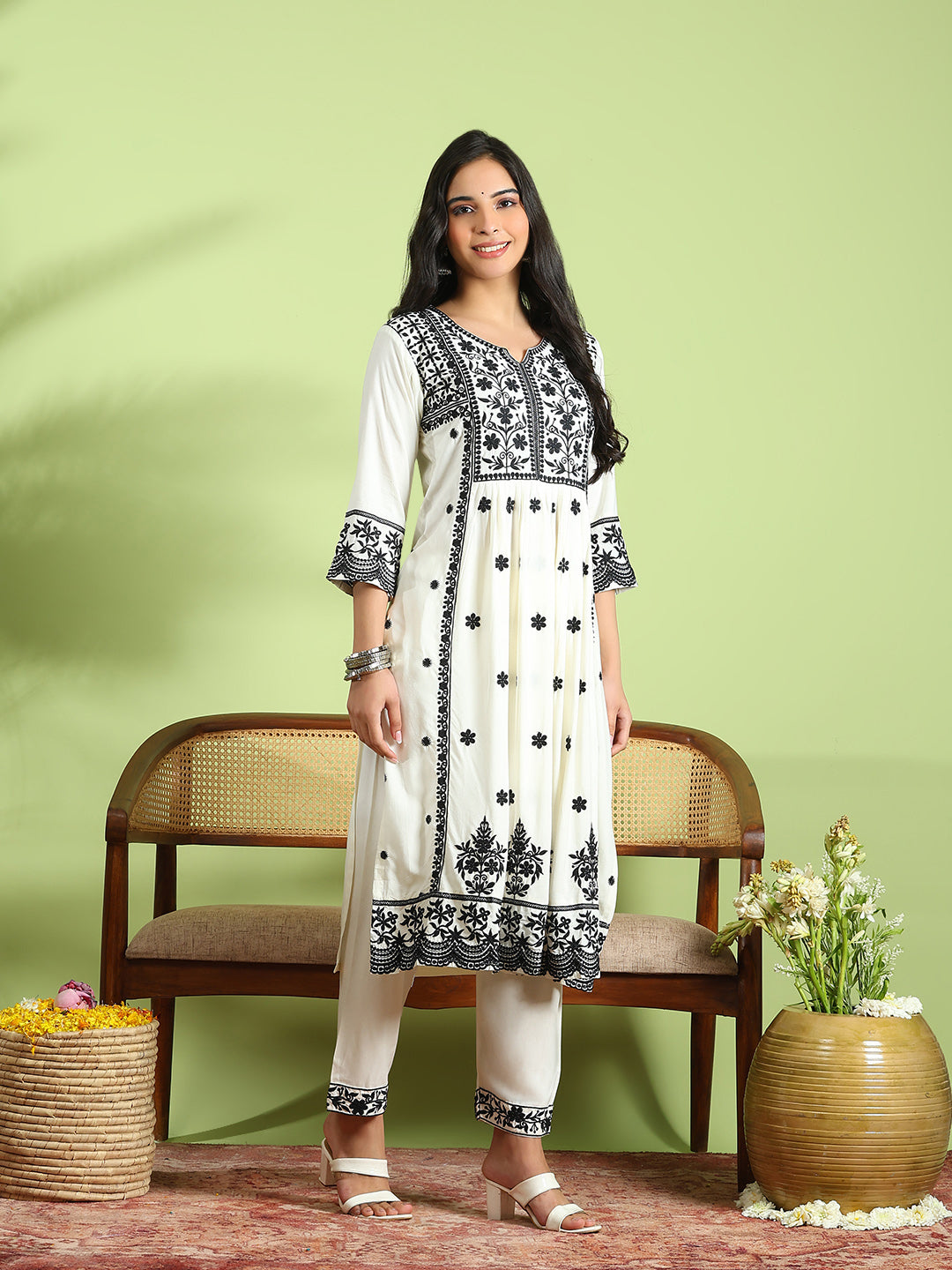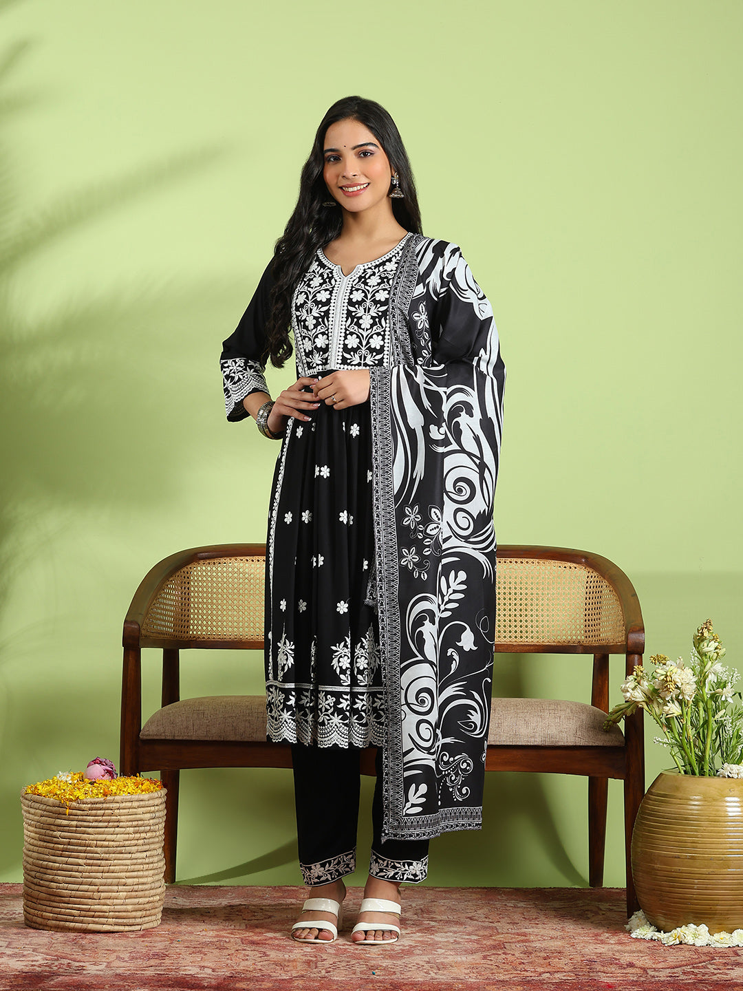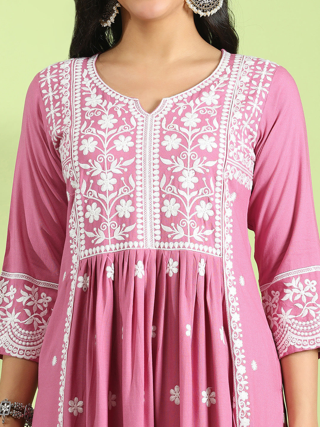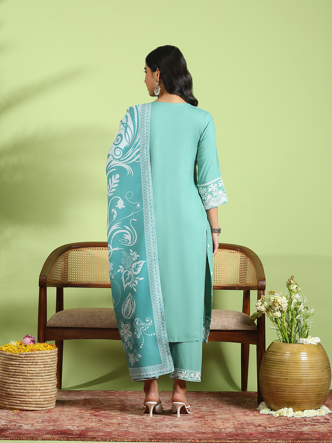 Embroidered Cotton Kurta With Pant & Dupatta