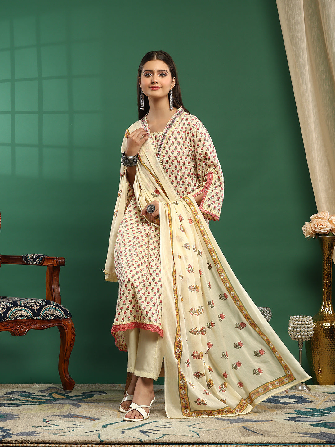 Printed Cotton Blend Kurta With Pant & Dupatta