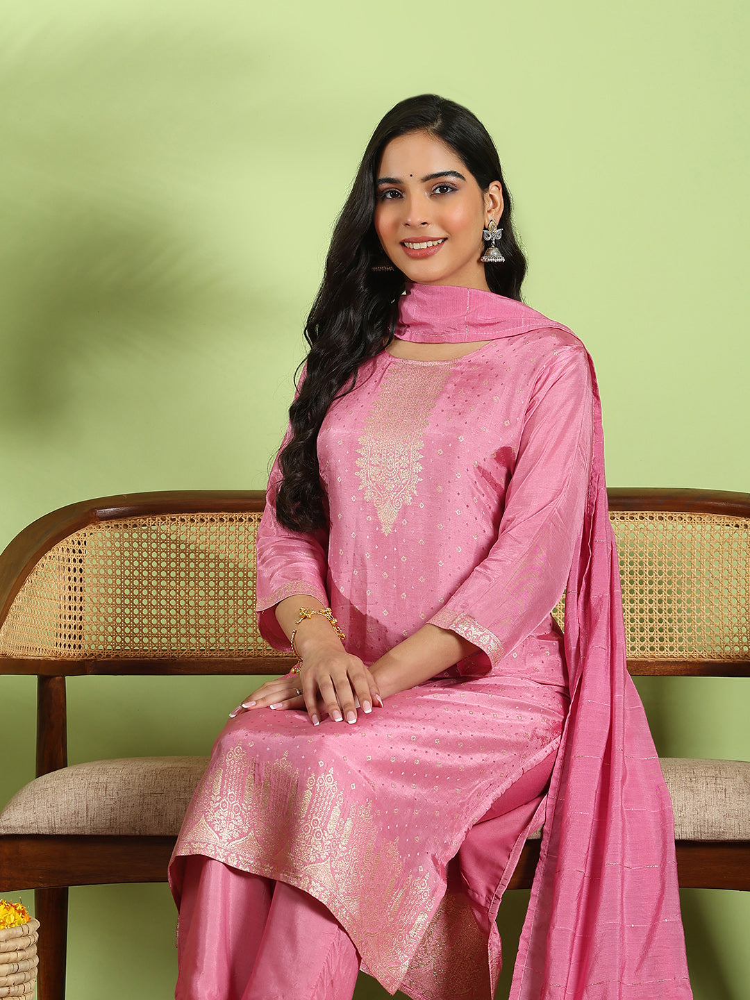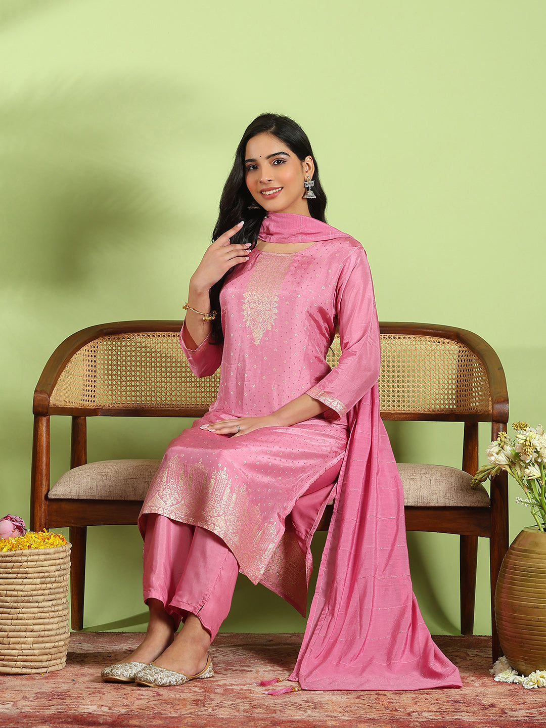 Embroidered Cotton Kurta With Pant & Dupatta