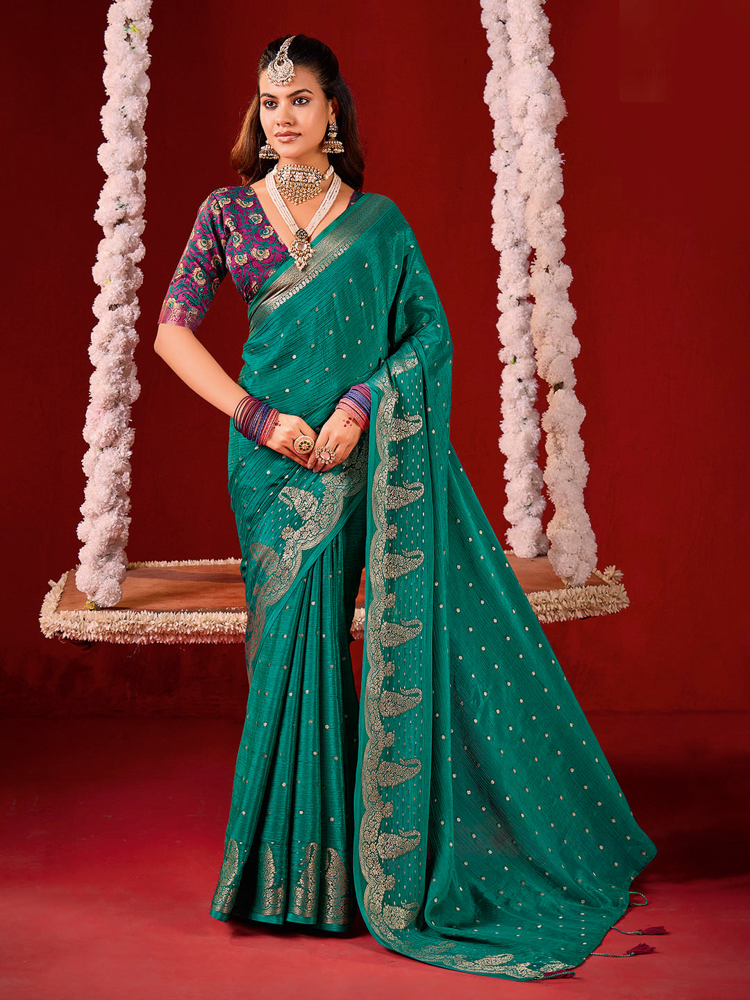Note: The blouse shown in the pictures is just for Photoshoot purposes. The blouse you will get will be an attached running blouse.