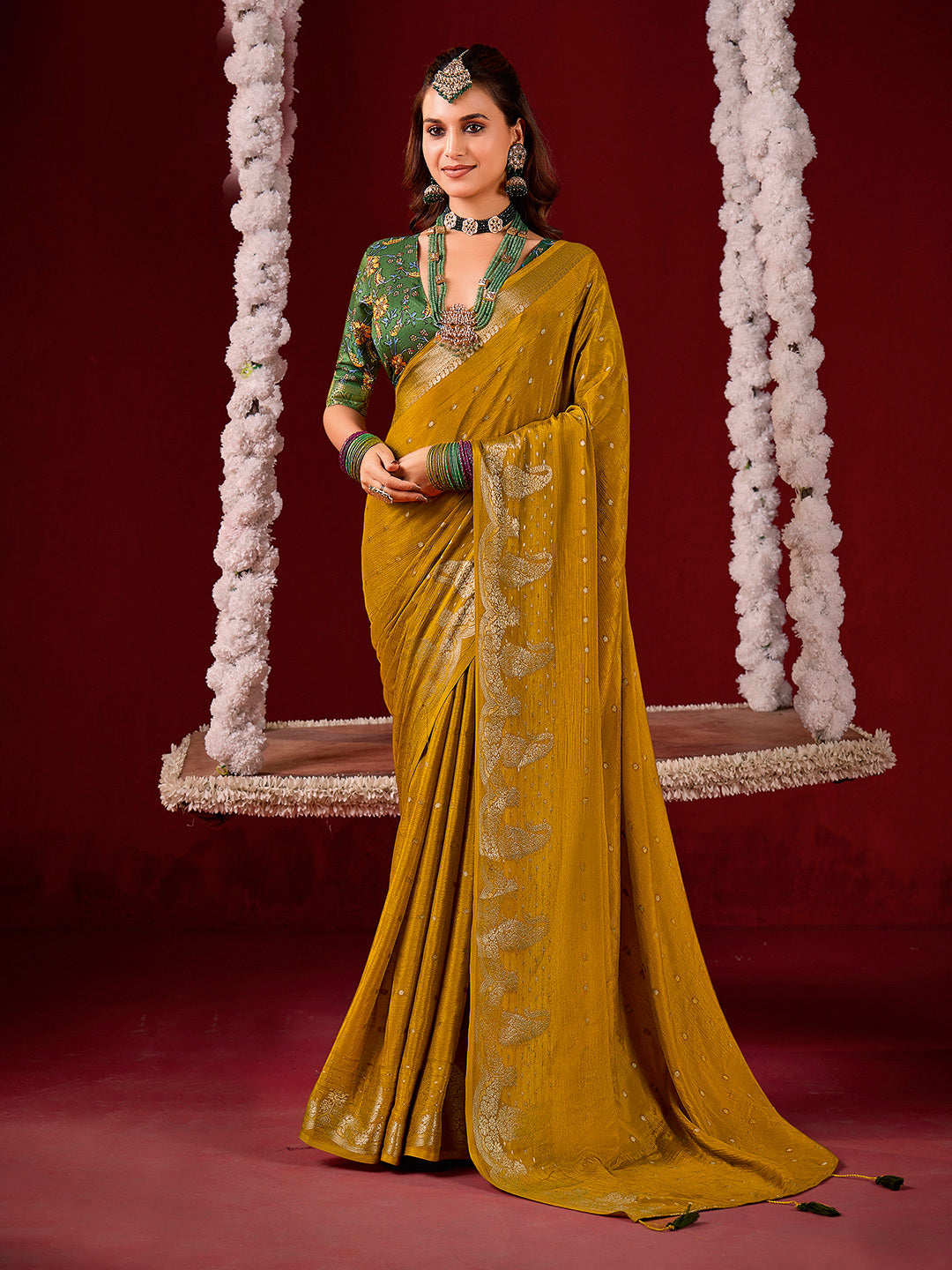 Note: The blouse shown in the pictures is just for Photoshoot purposes. The blouse you will get will be an attached running blouse.