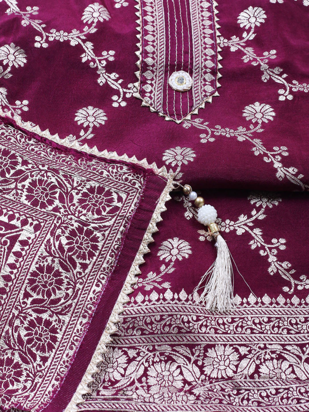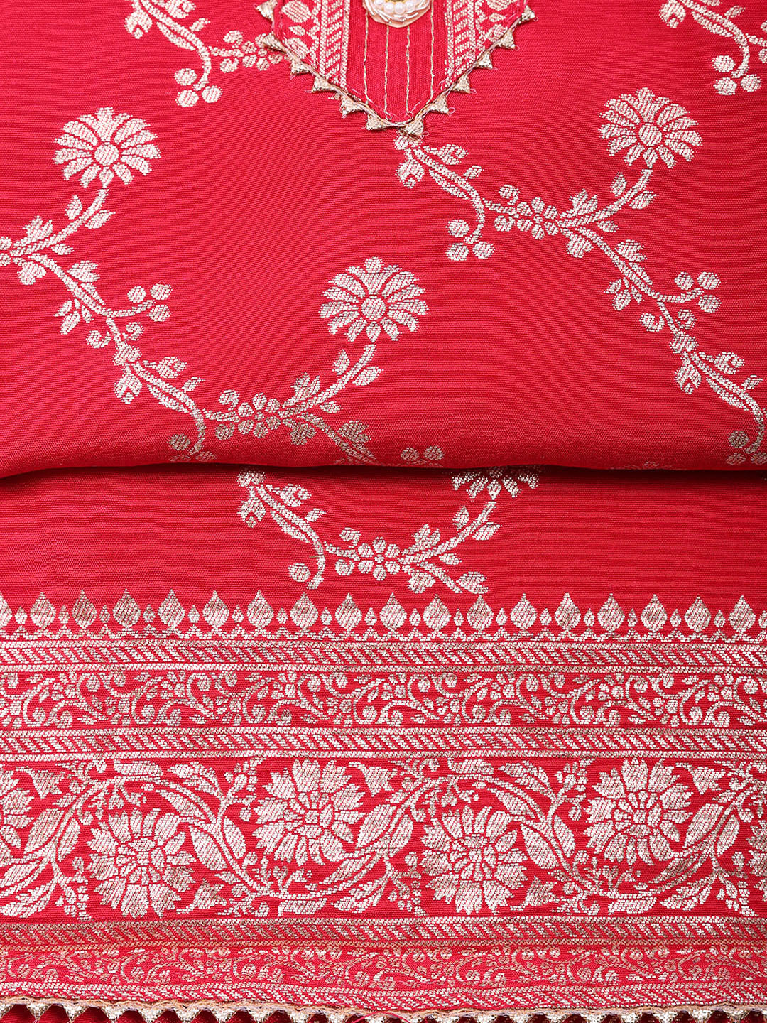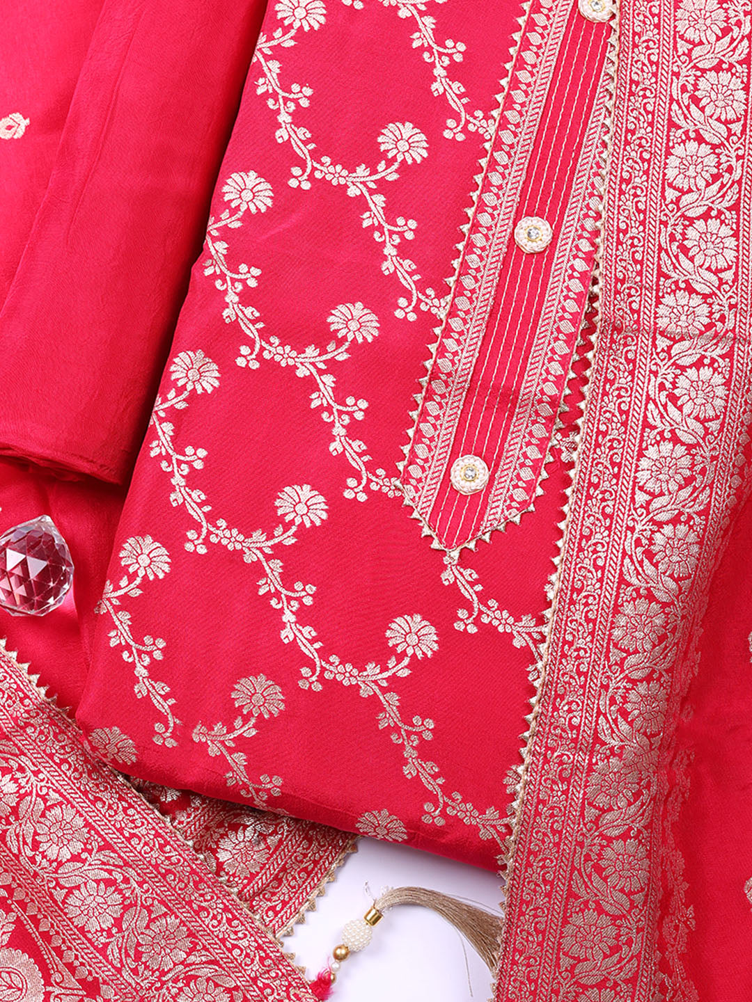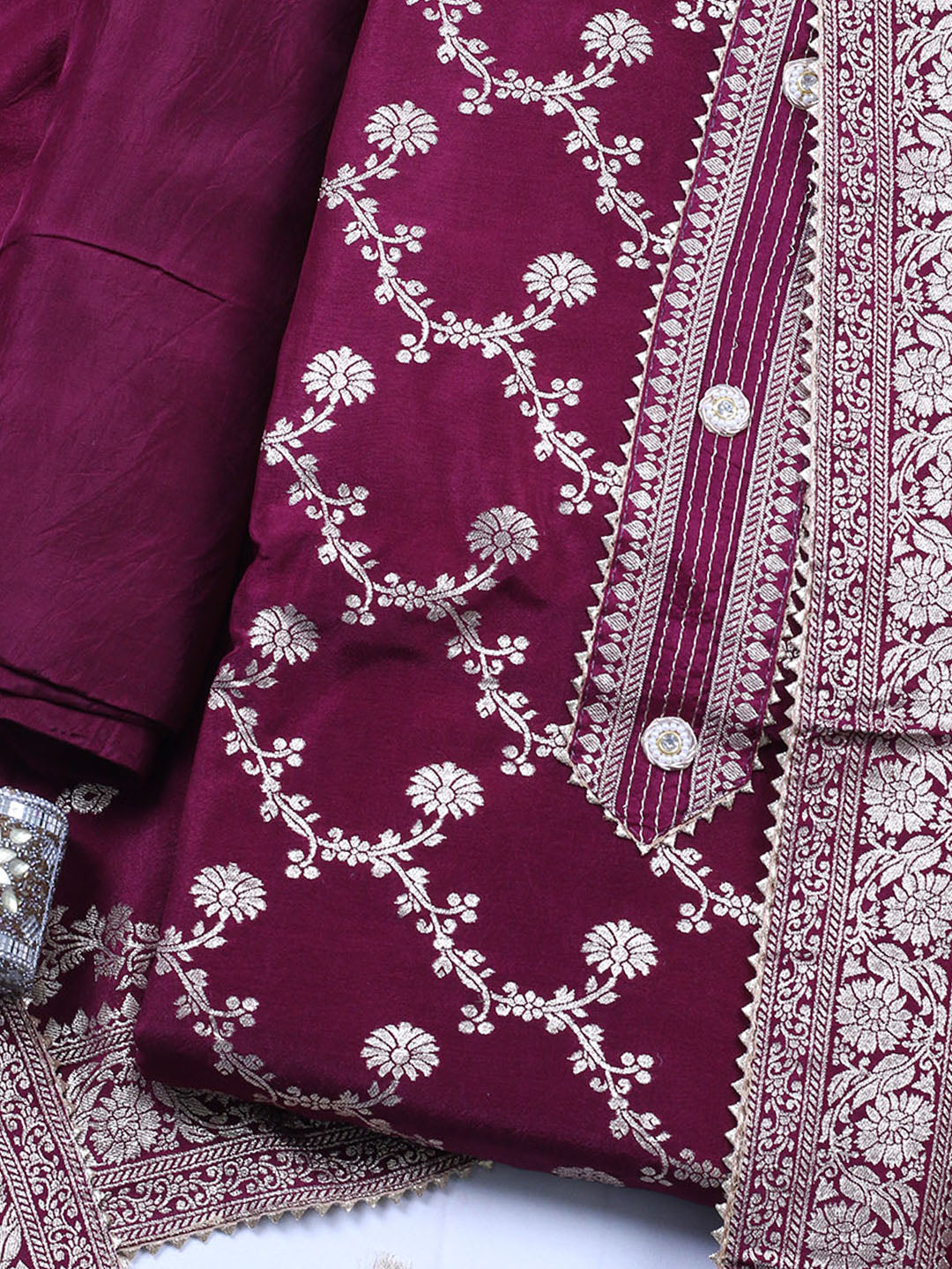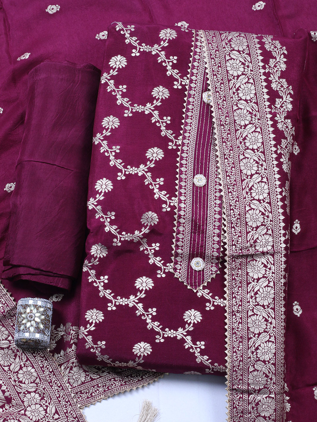 Embroidered Chanderi Unstitched Suit With Pant & Dupatta