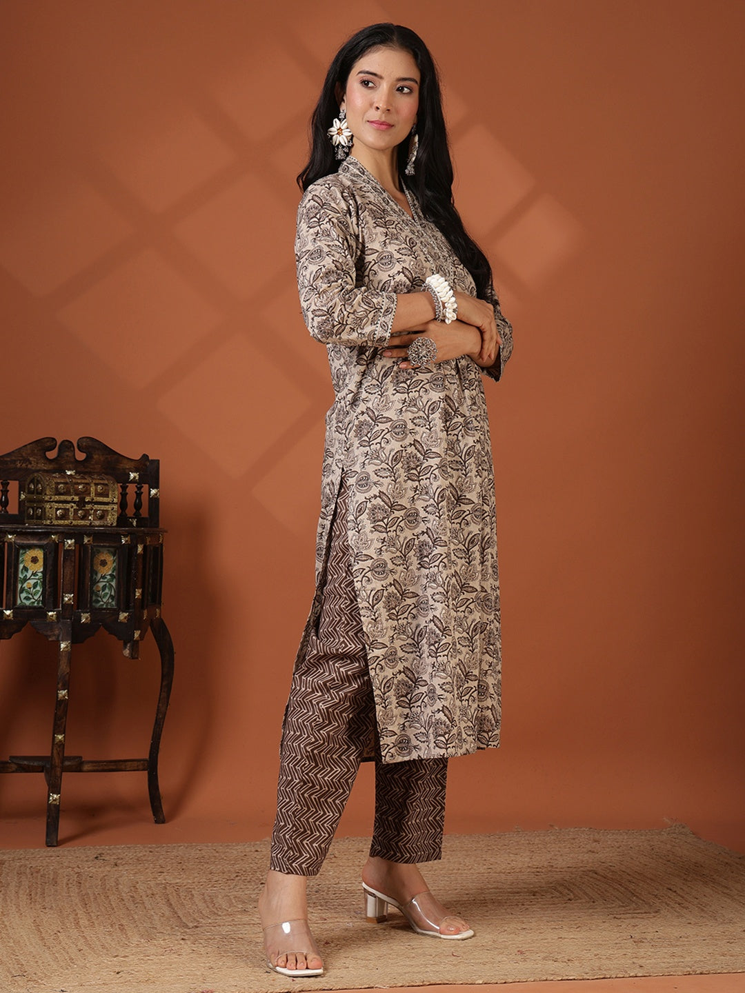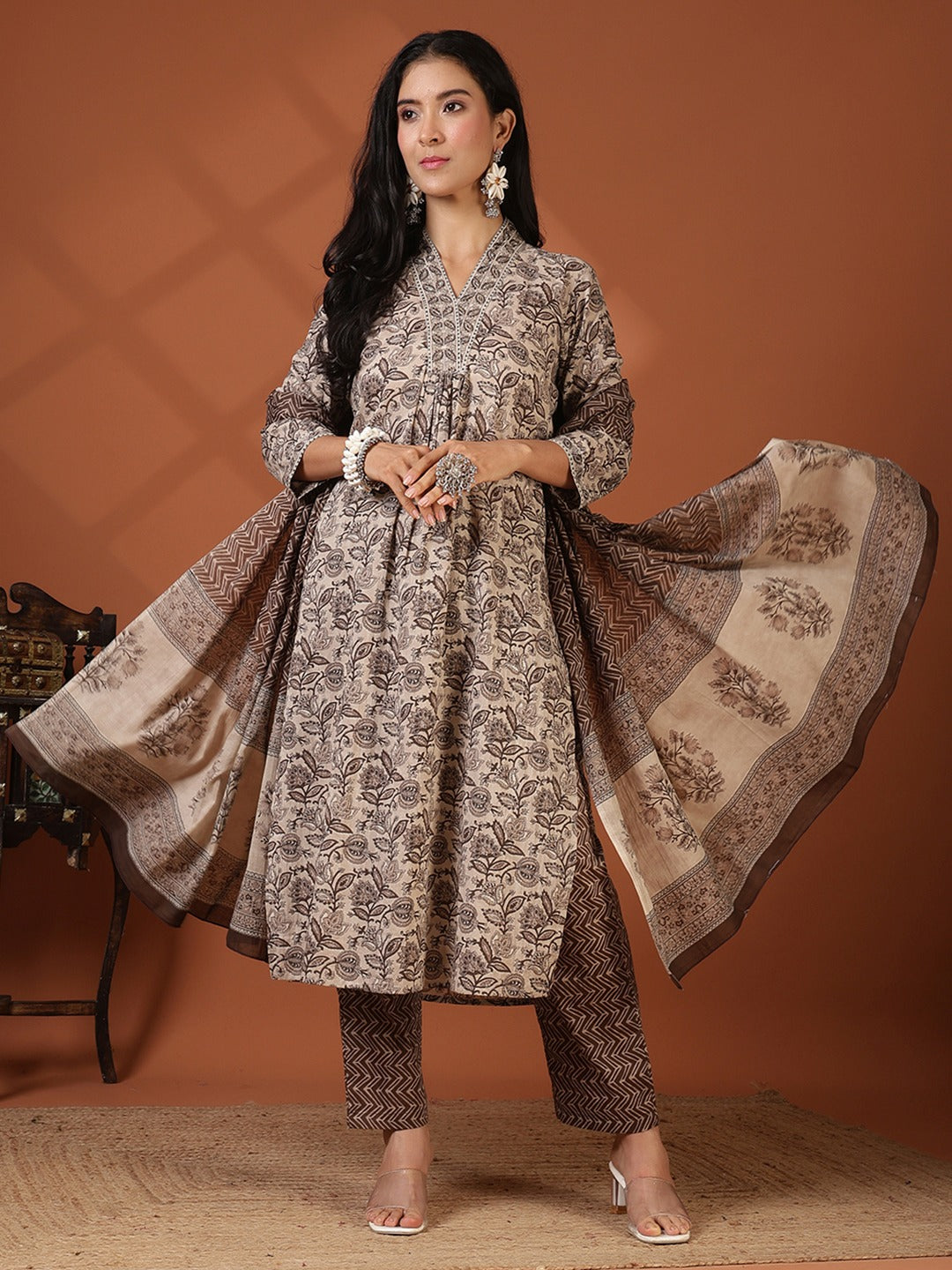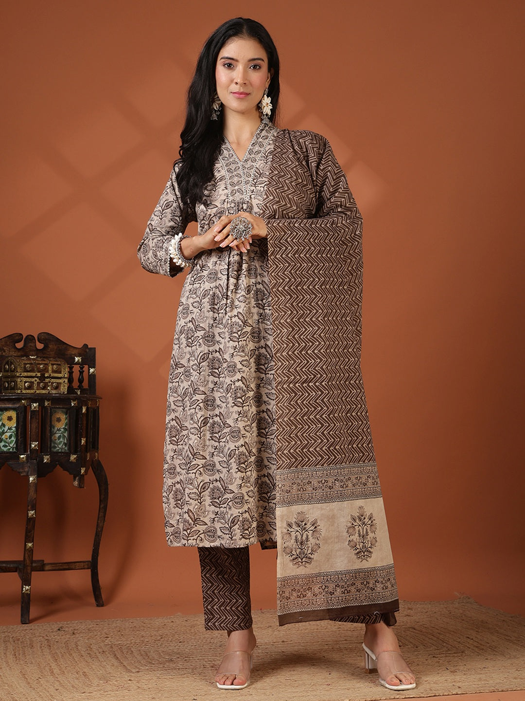 Printed Cotton Blend Kurta With Pant & Dupatta