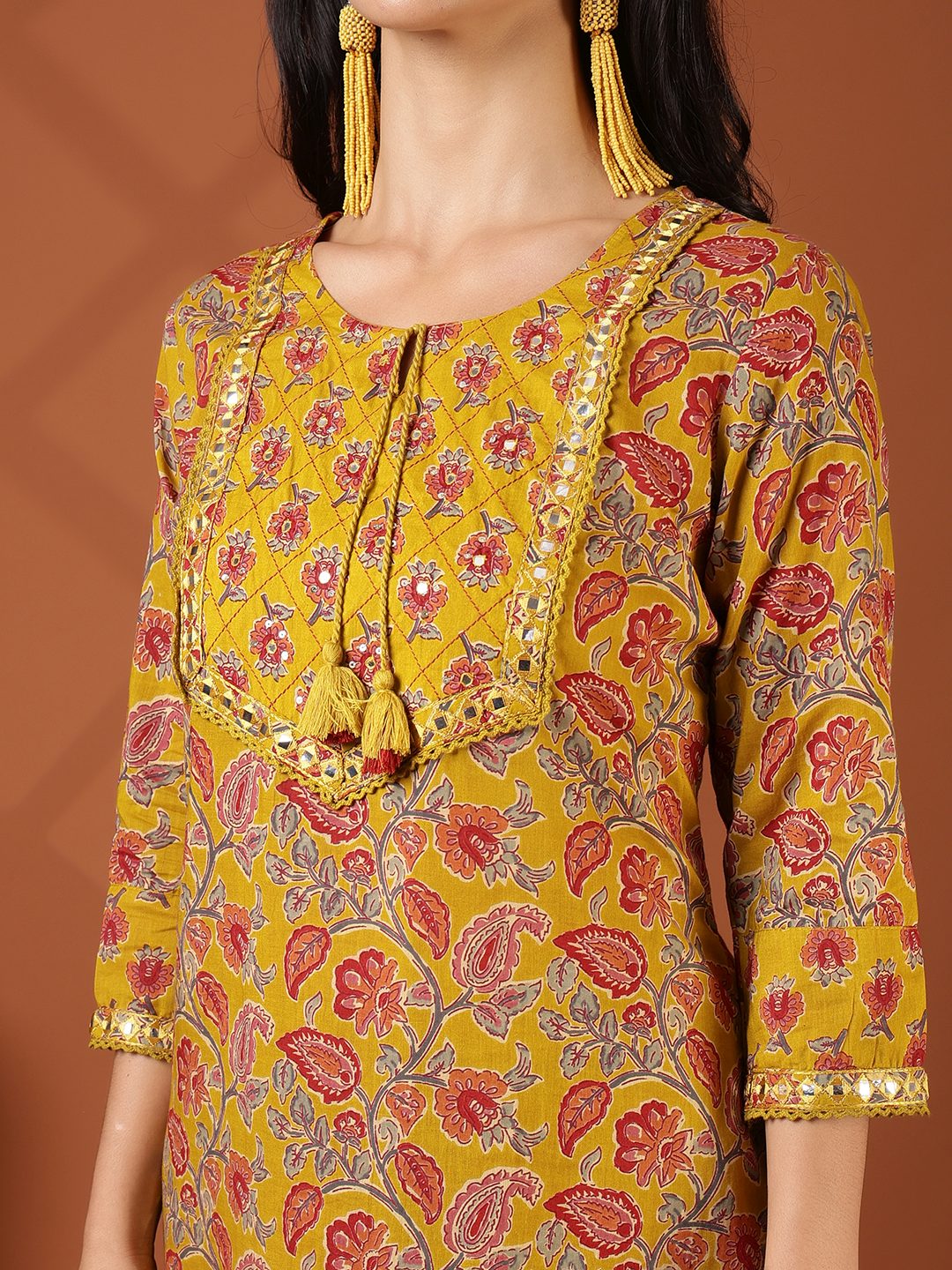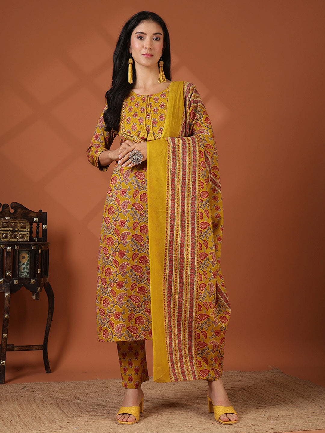 Printed Cotton Blend Kurta With Pant & Dupatta