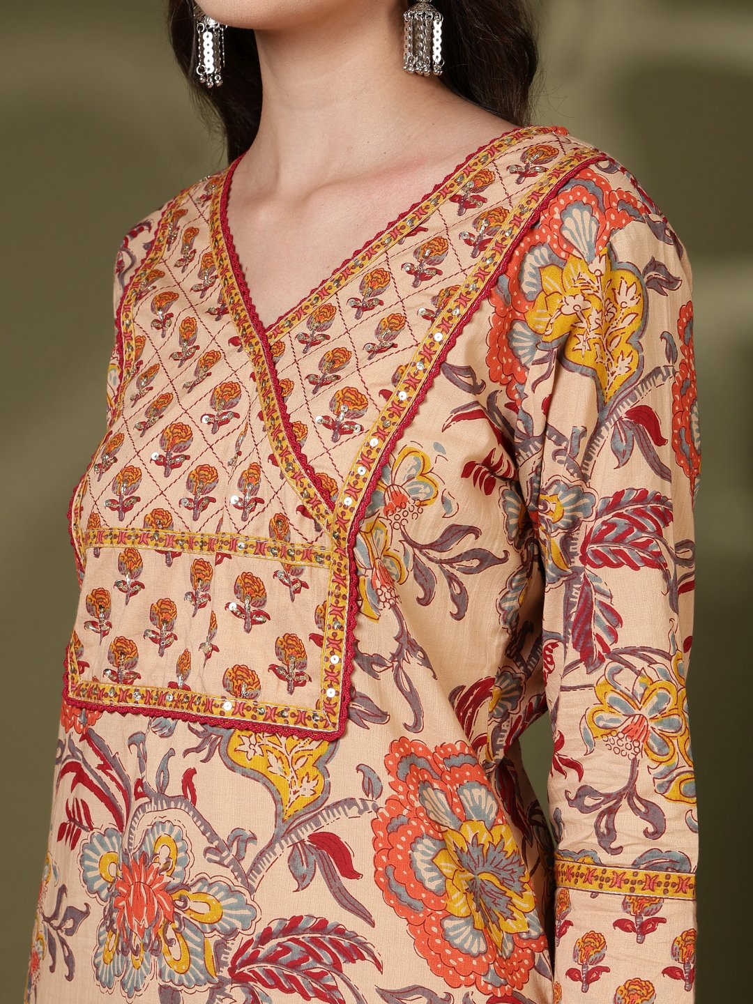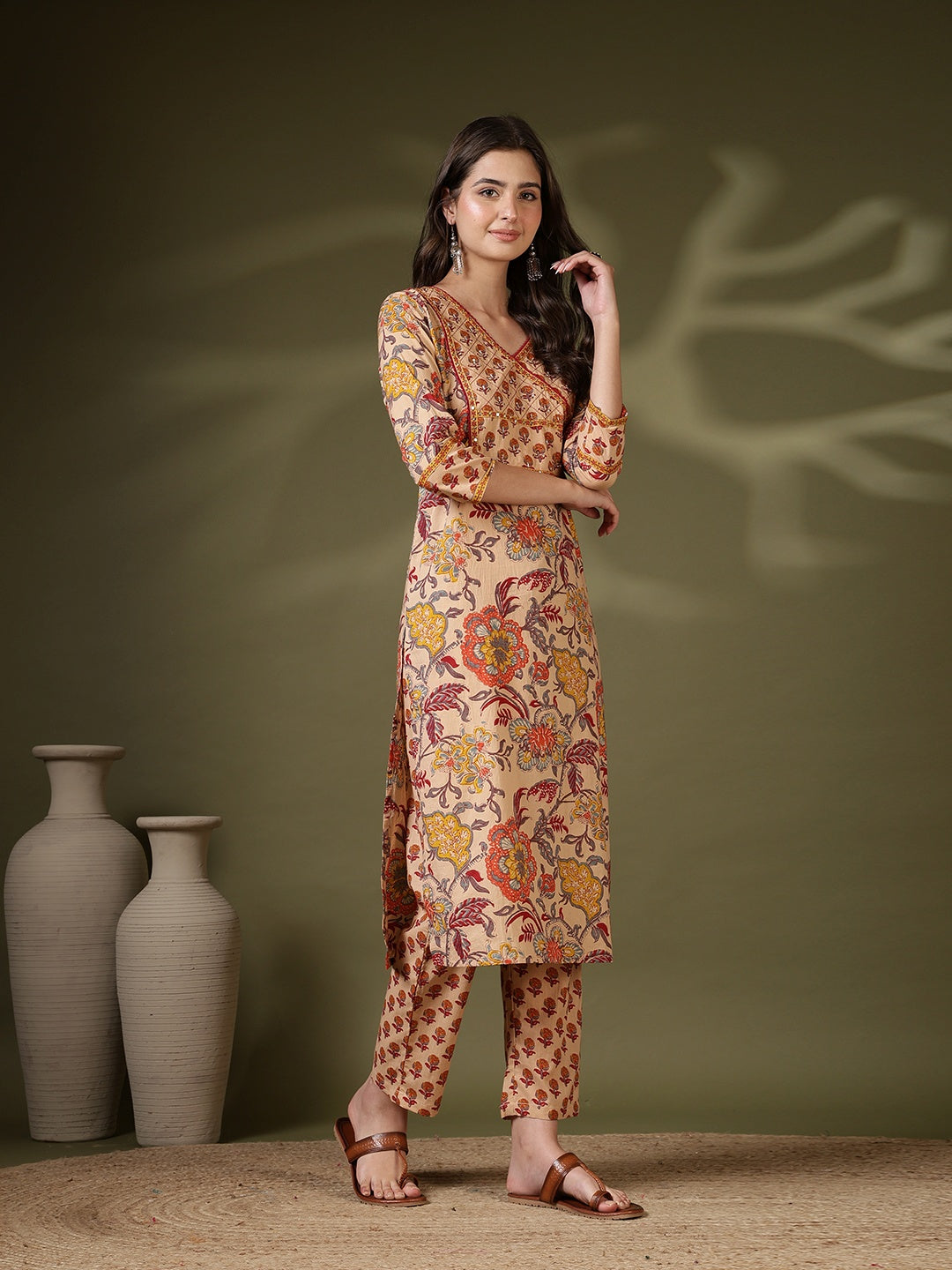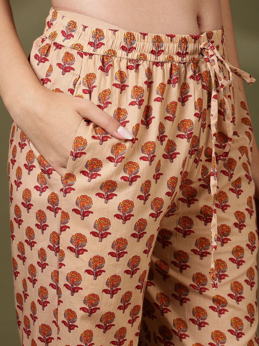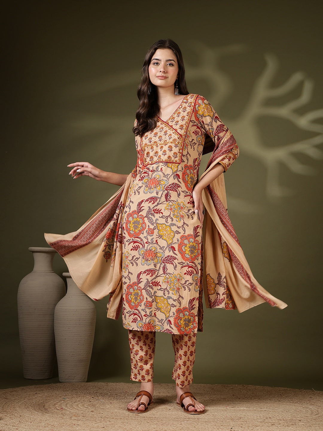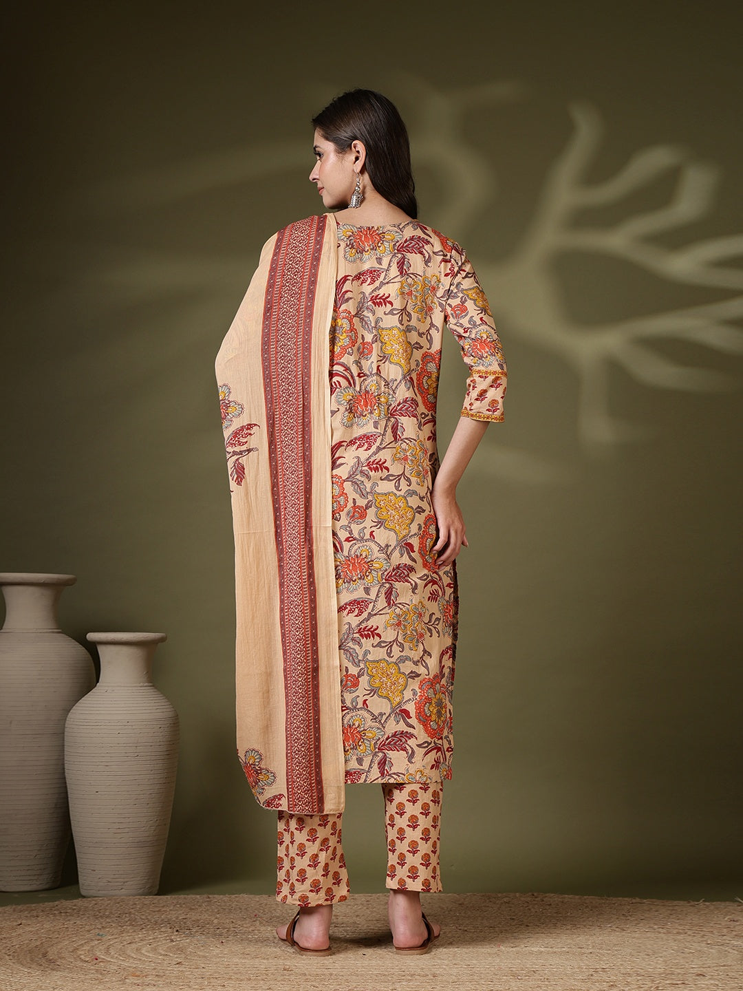 Printed Cotton Blend Kurta With Pant & Dupatta