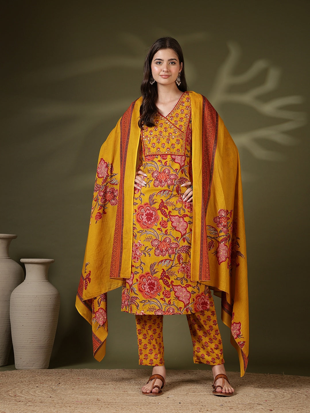 Printed Cotton Blend Kurta With Pant & Dupatta