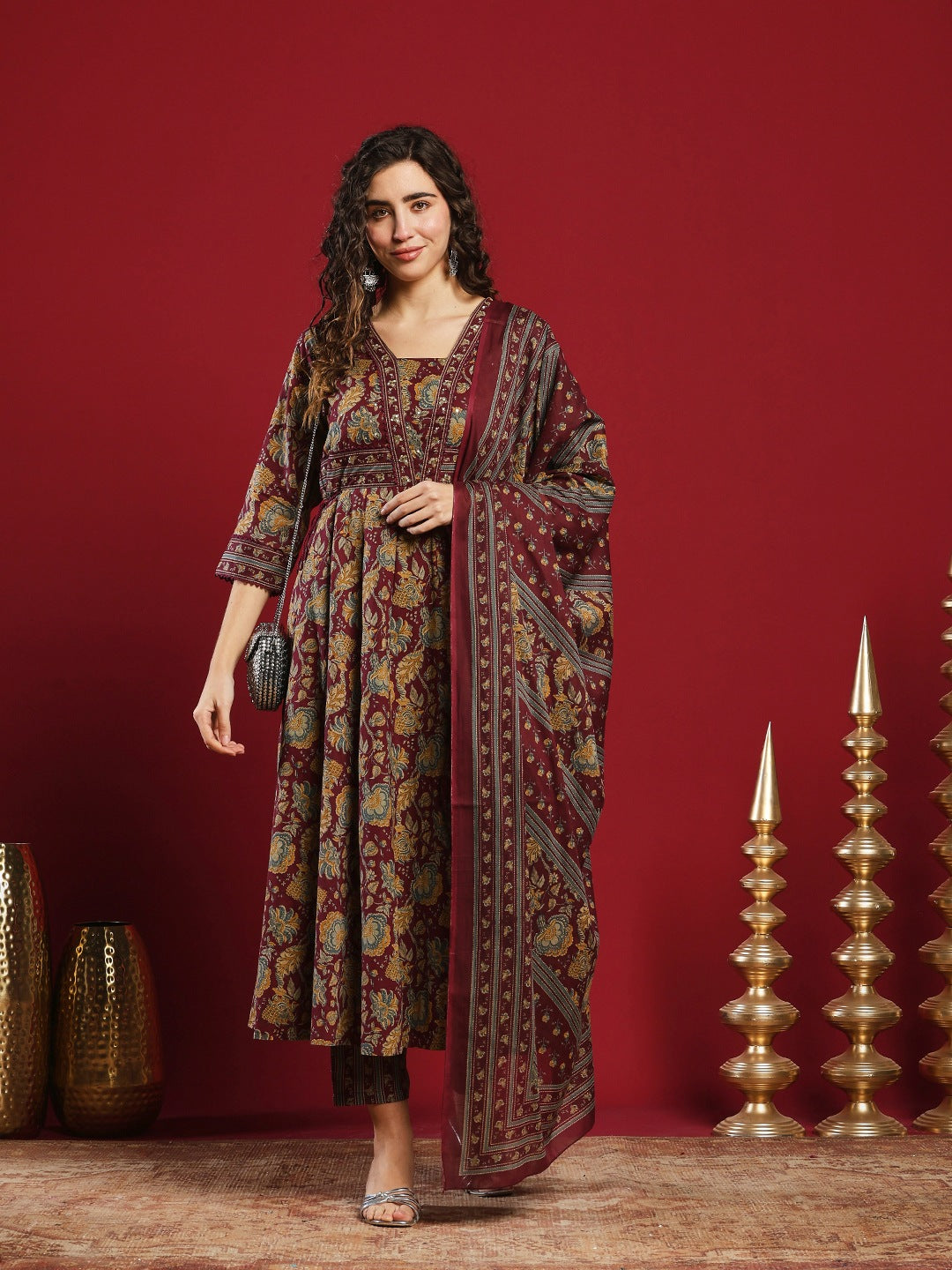 Printed Cotton Kurta With Pant & Dupatta