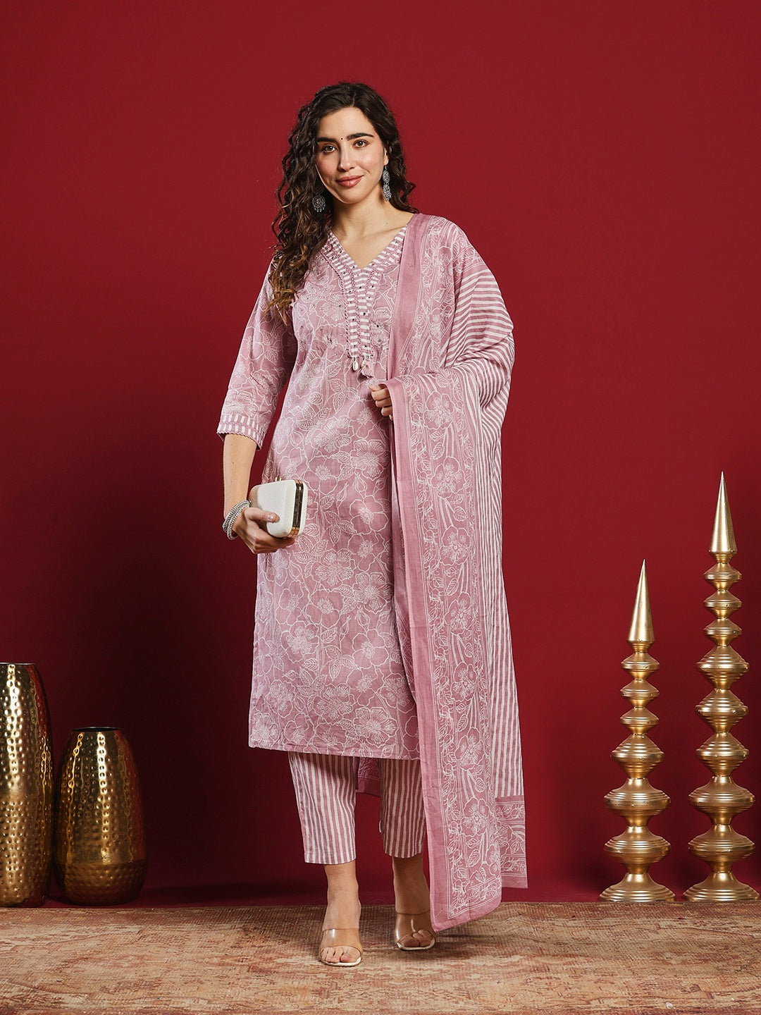 Printed Cotton Kurta With Pant & Dupatta
