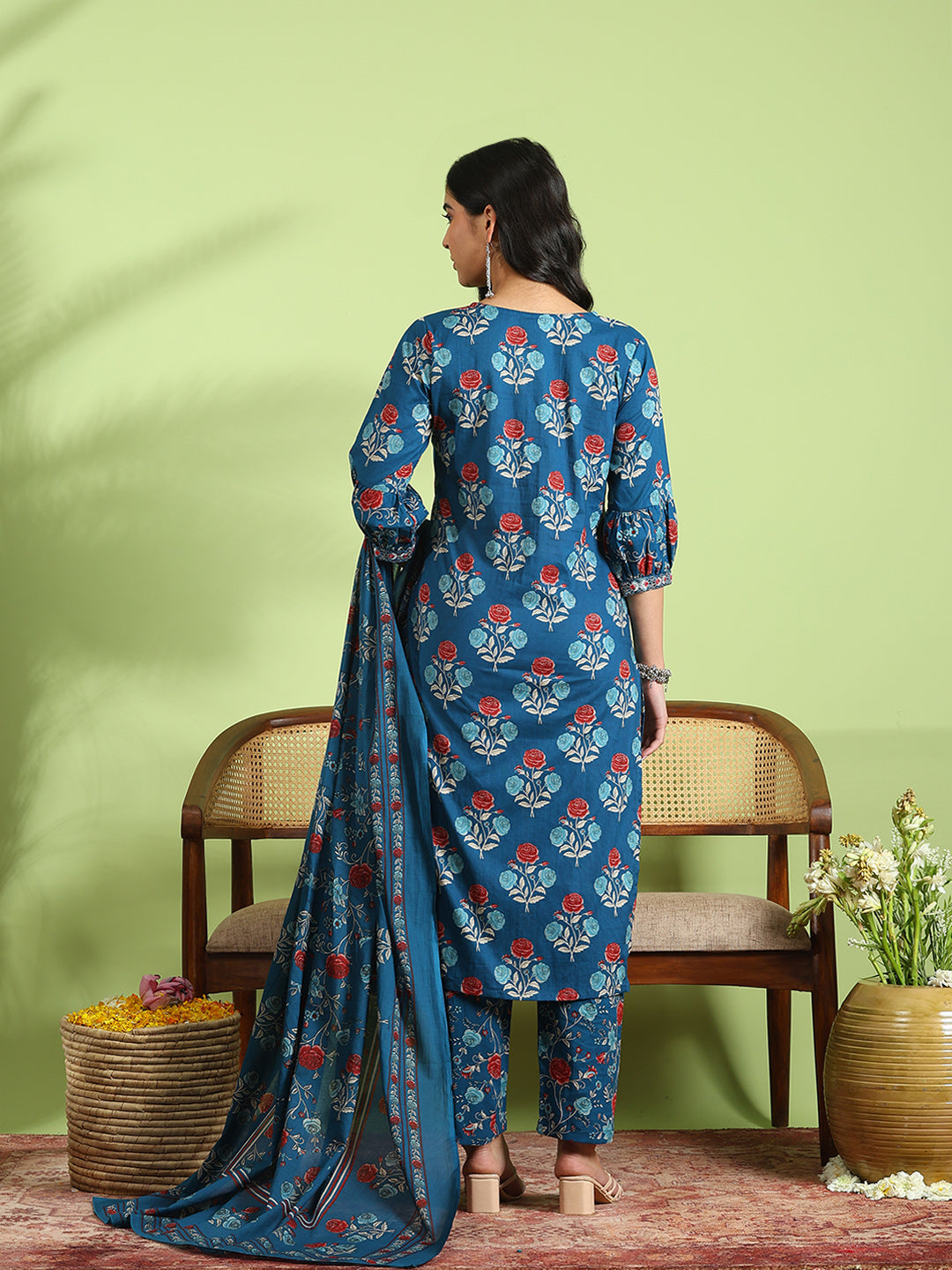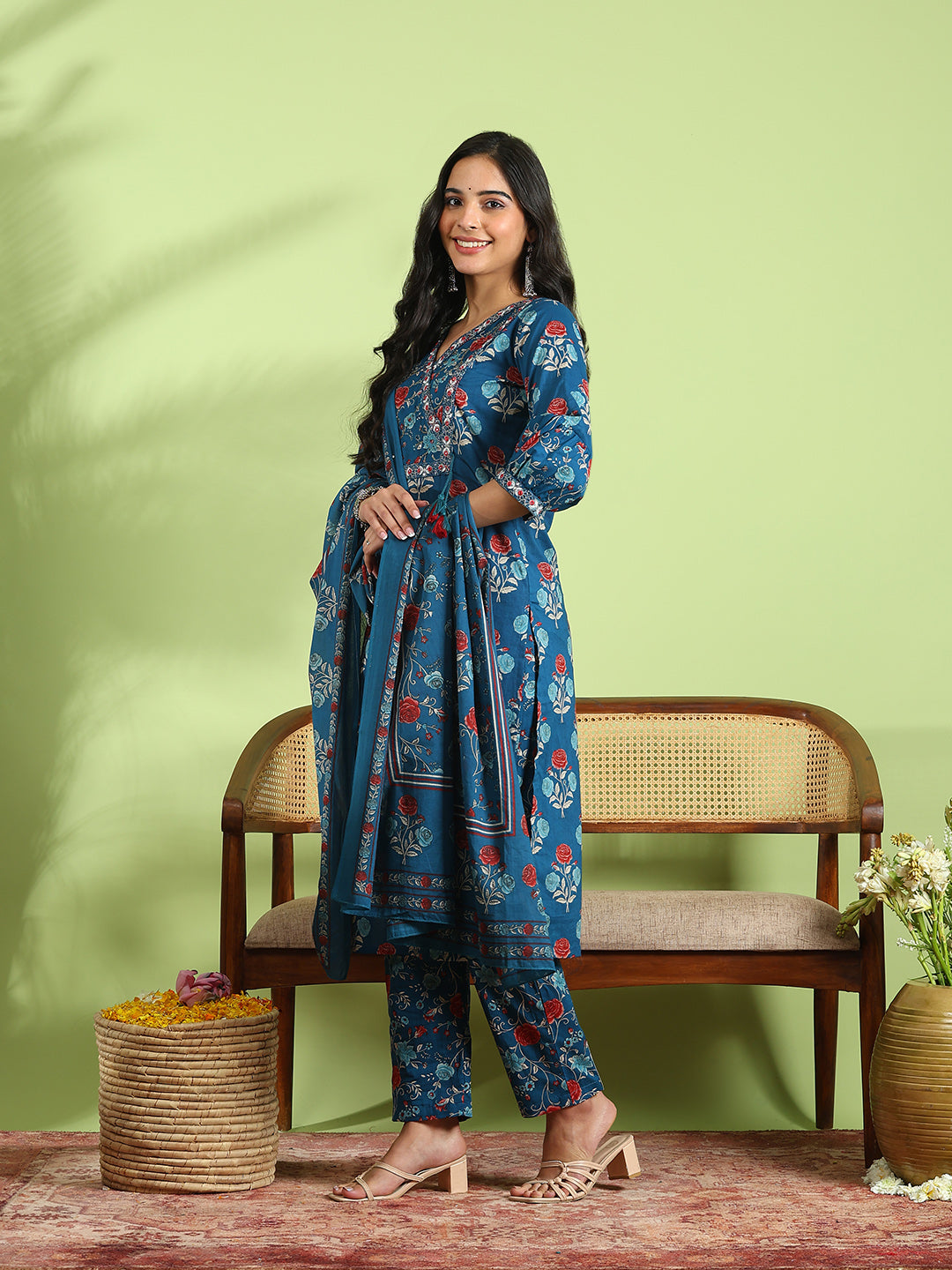 Printed Cotton Kurta With Pant & Dupatta