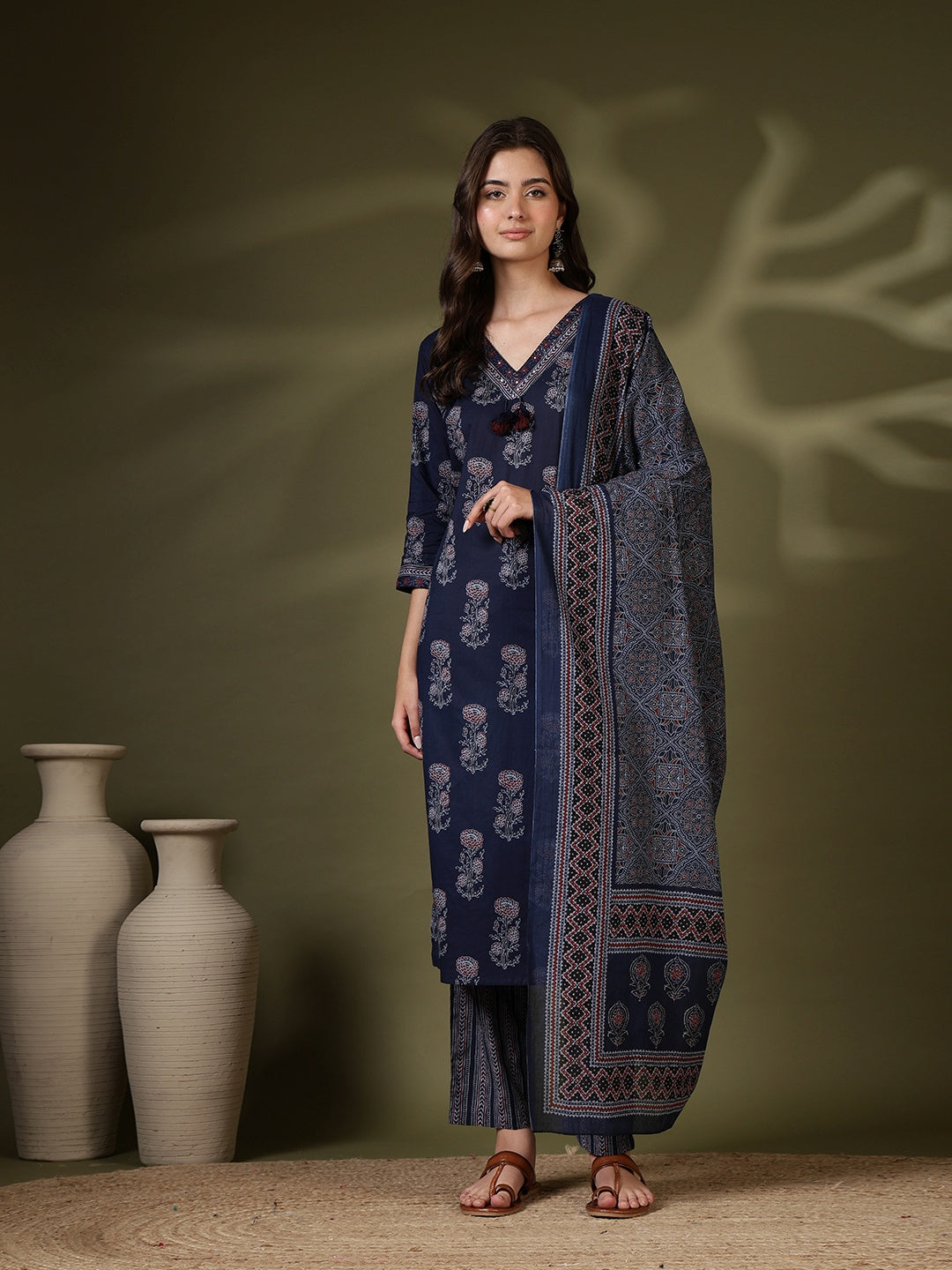 Printed Cotton Blend Kurta With Pant & Dupatta