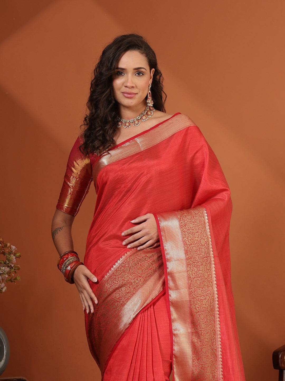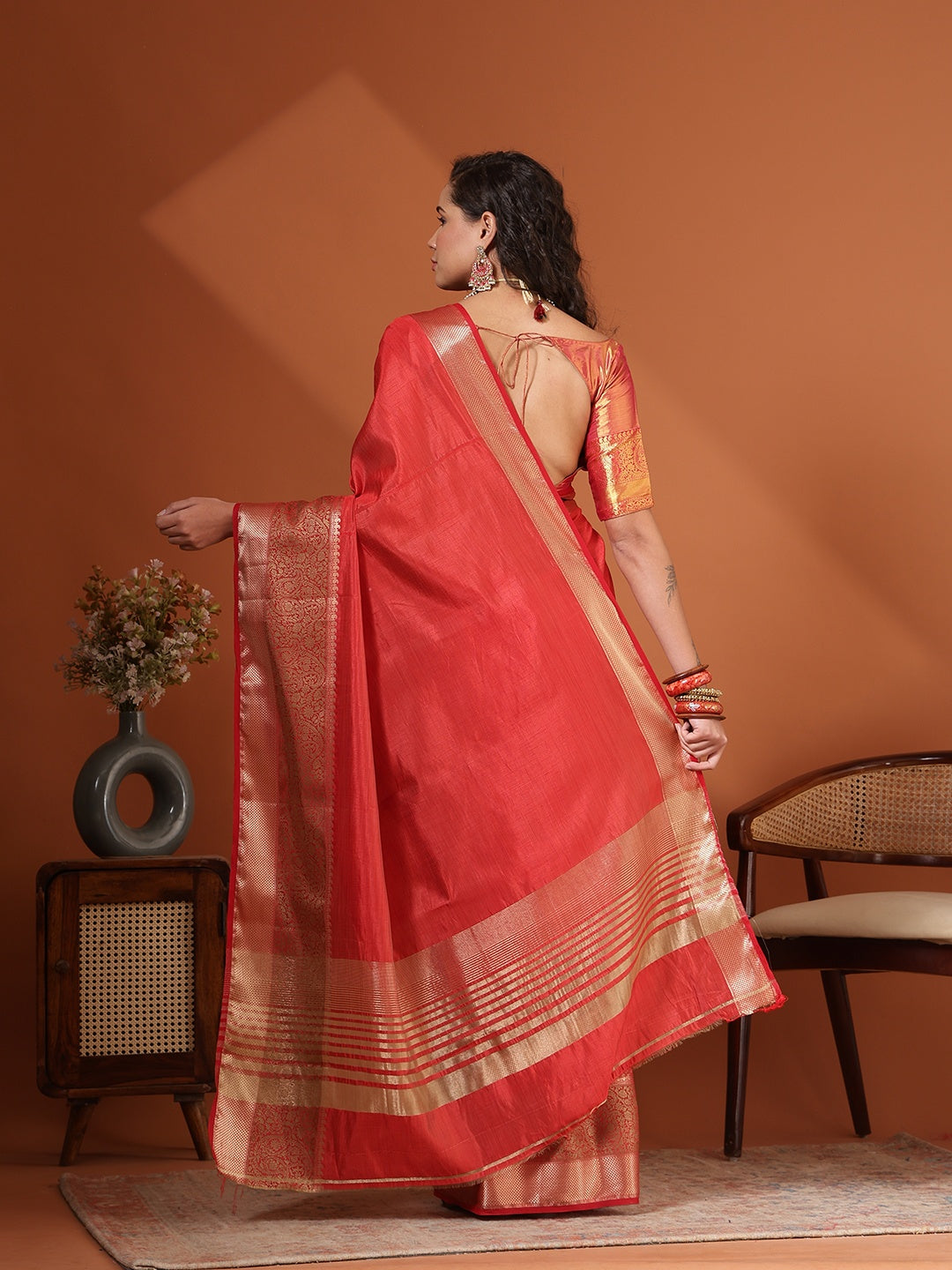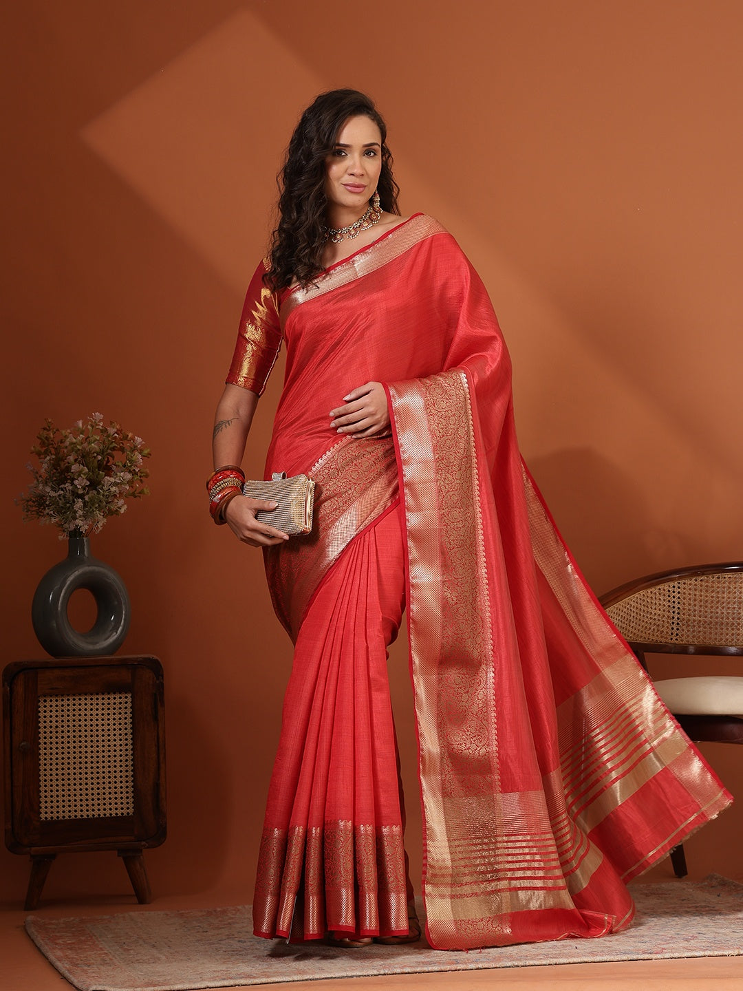Note: The blouse shown in the pictures is just for Photoshoot purposes. The blouse you will get will be an attached running blouse.