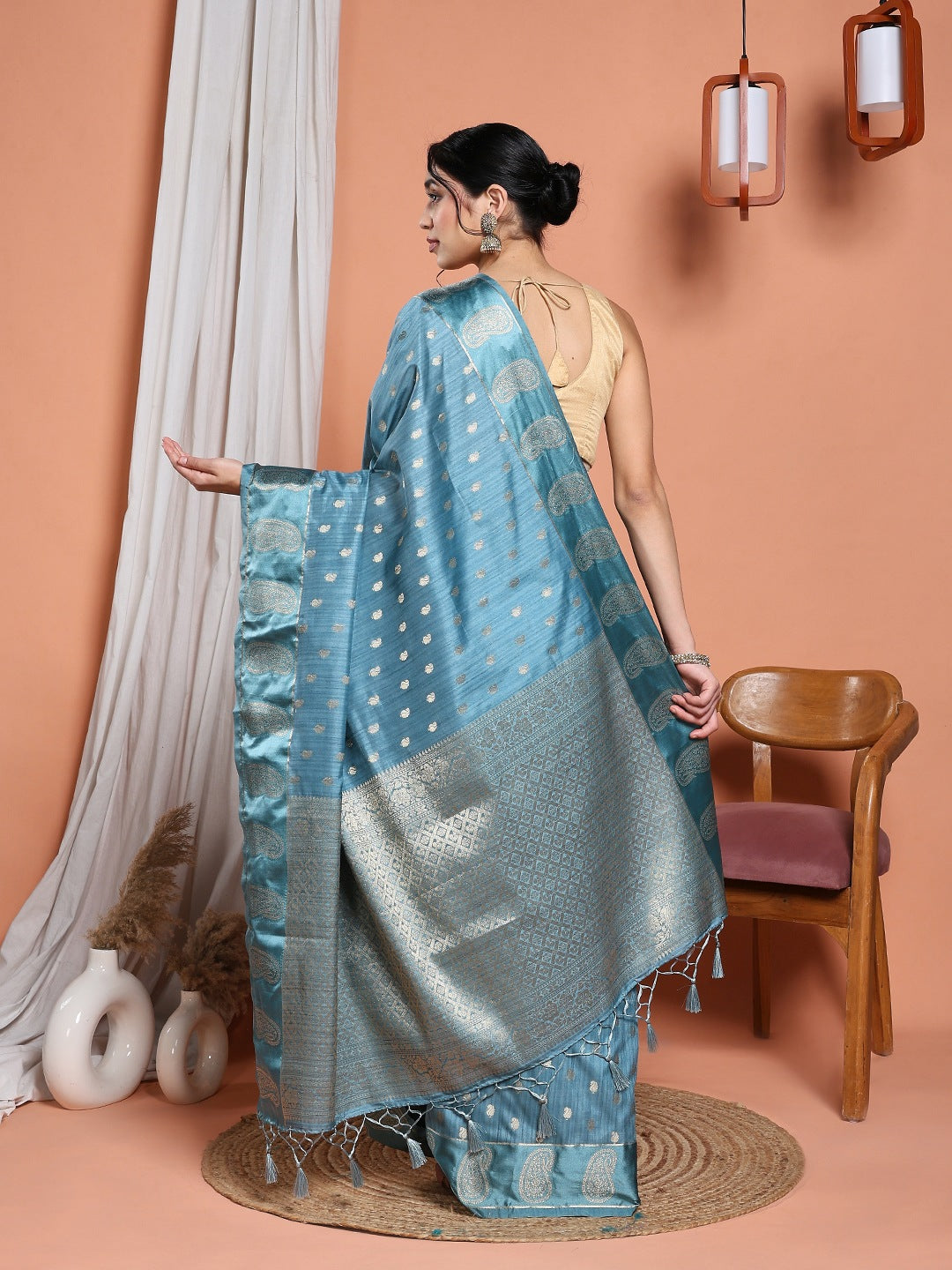 Note: The blouse shown in the pictures is just for Photoshoot purposes. The blouse you will get will be an attached running blouse.