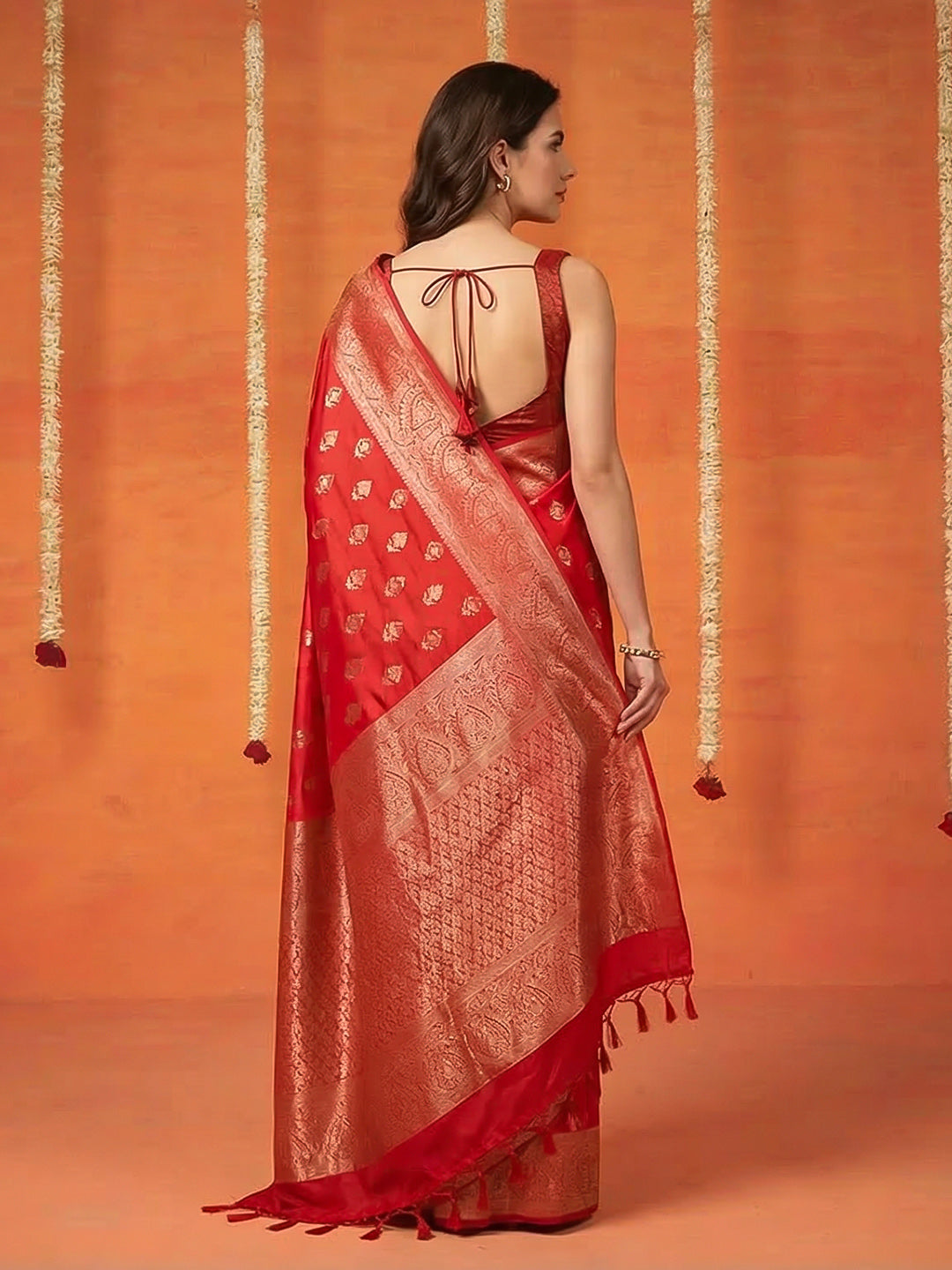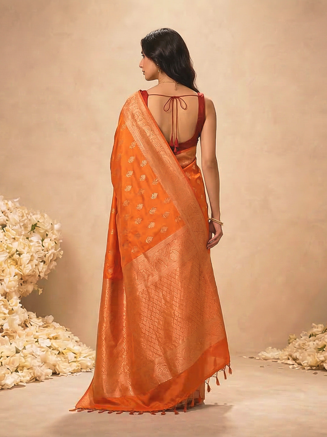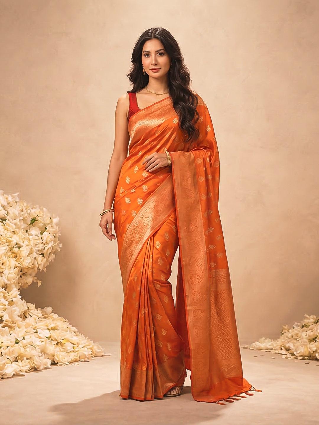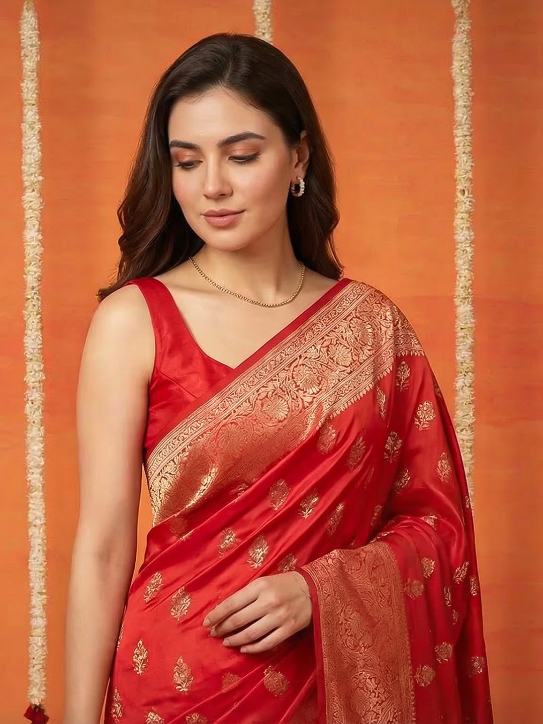 Note: The blouse shown in the pictures is just for Photoshoot purposes. The blouse you will get will be an attached running blouse.