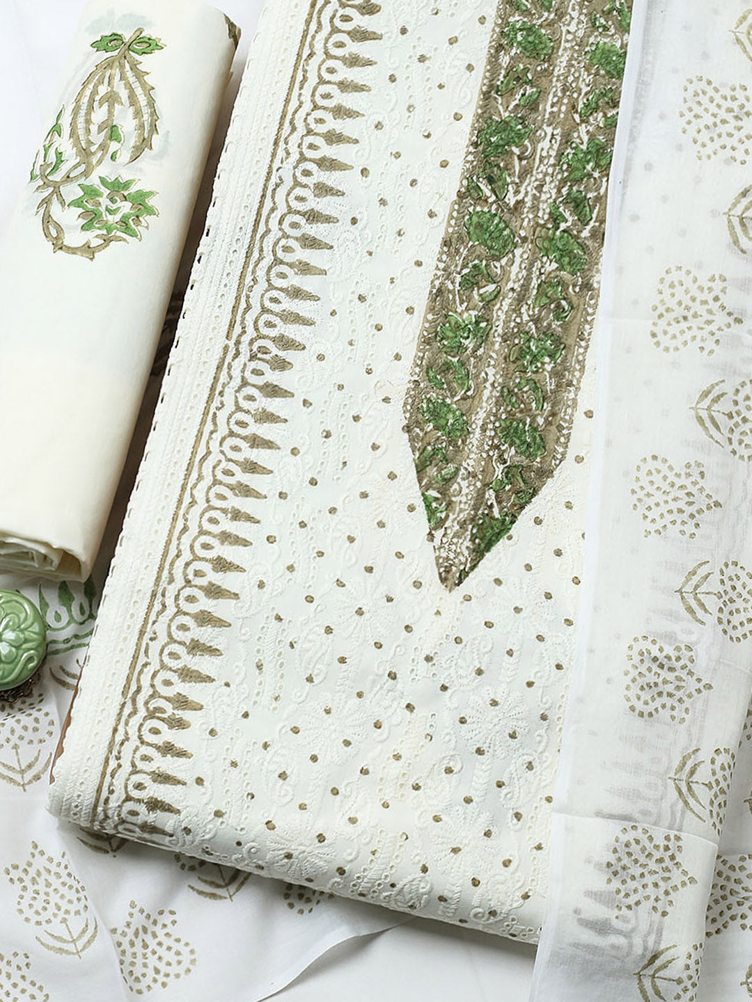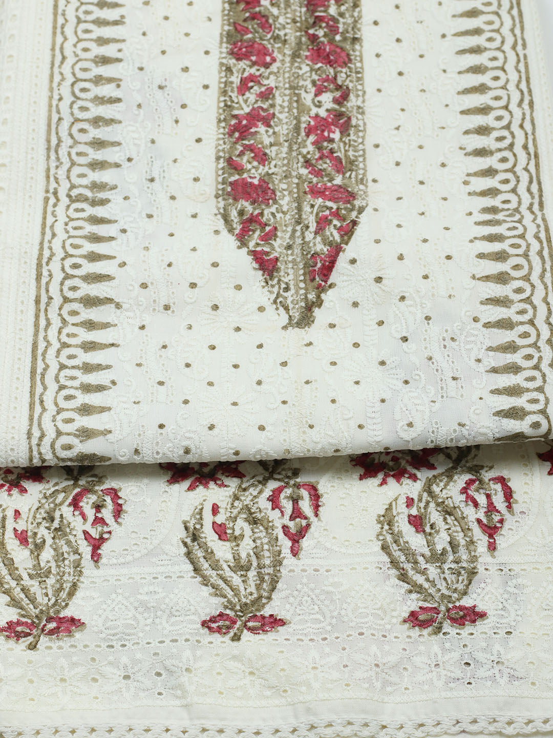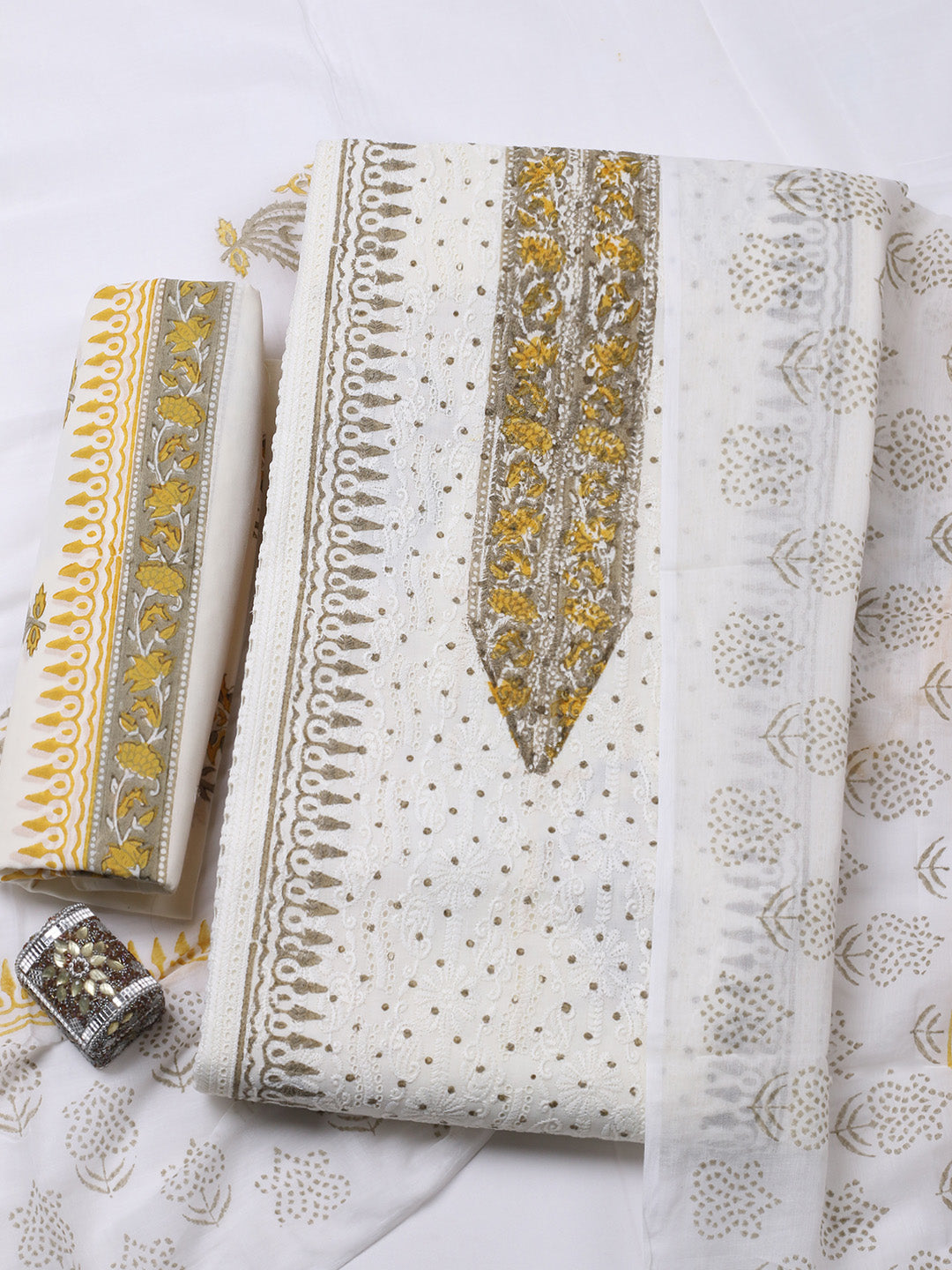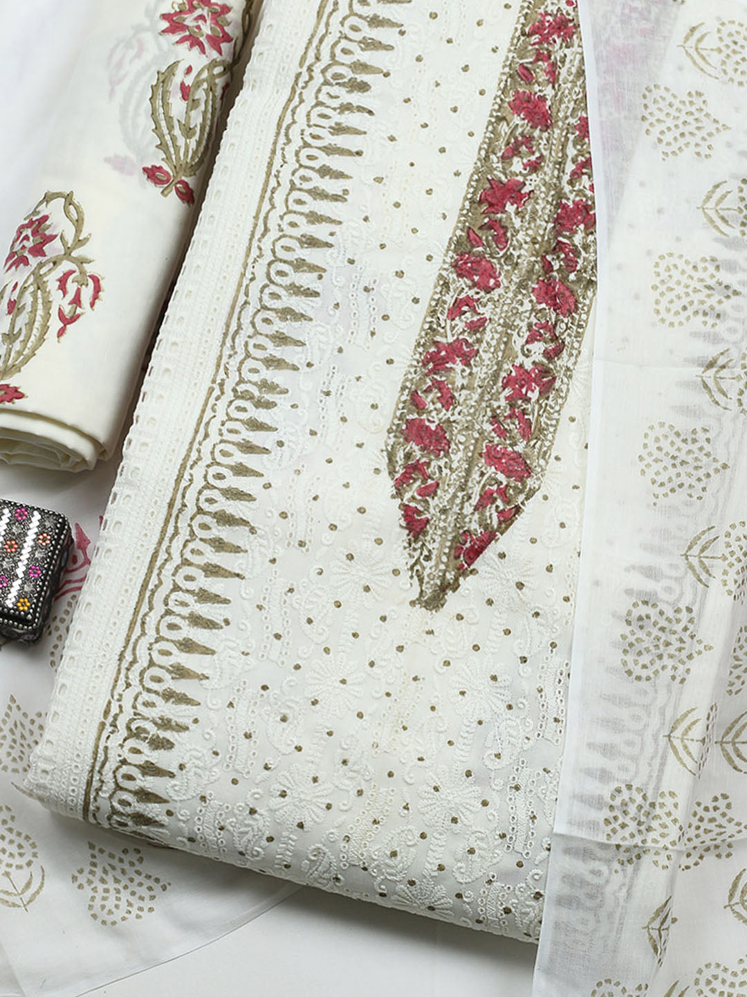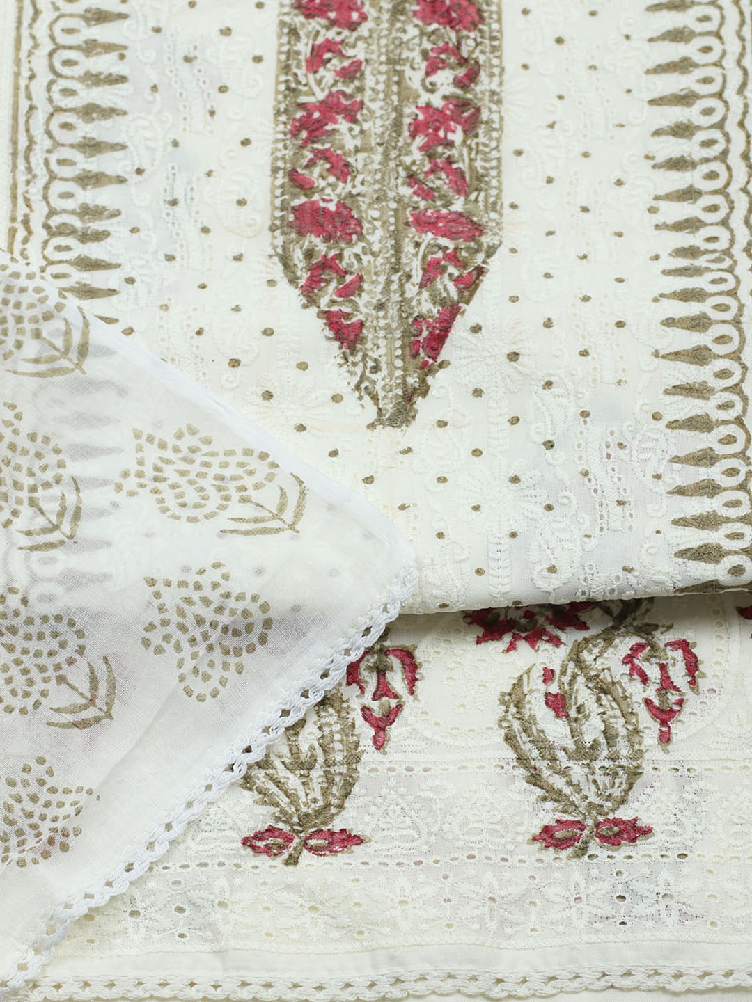 Printed Cotton Blend Unstitched Suit With Pant & Dupatta