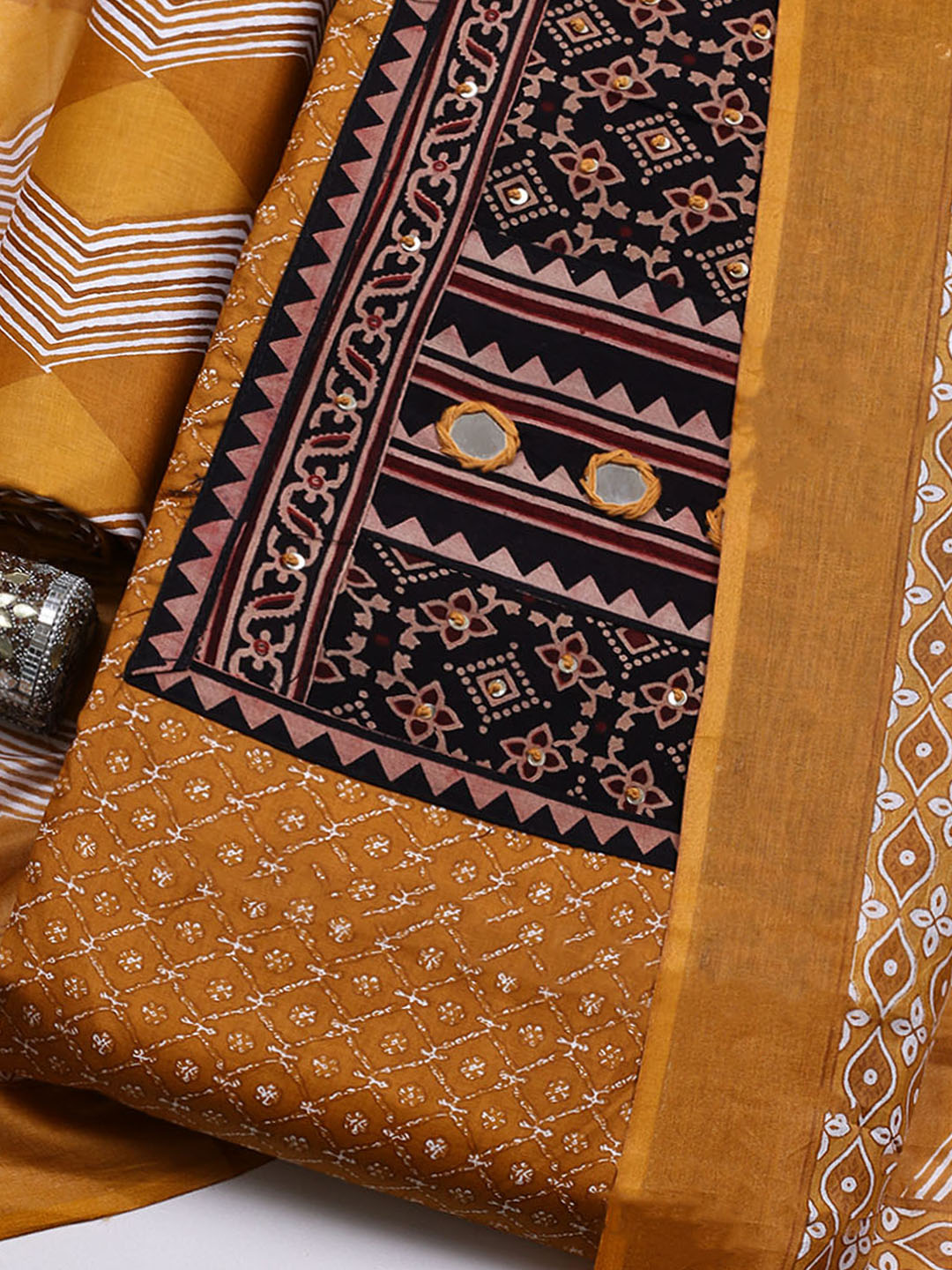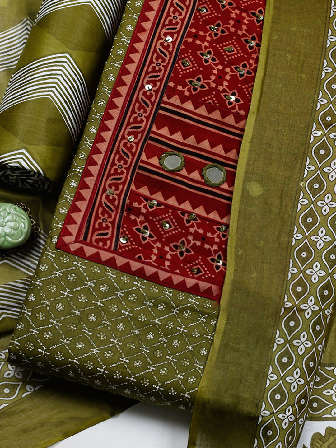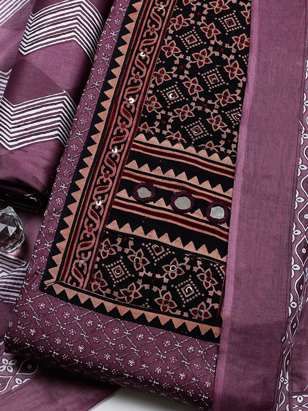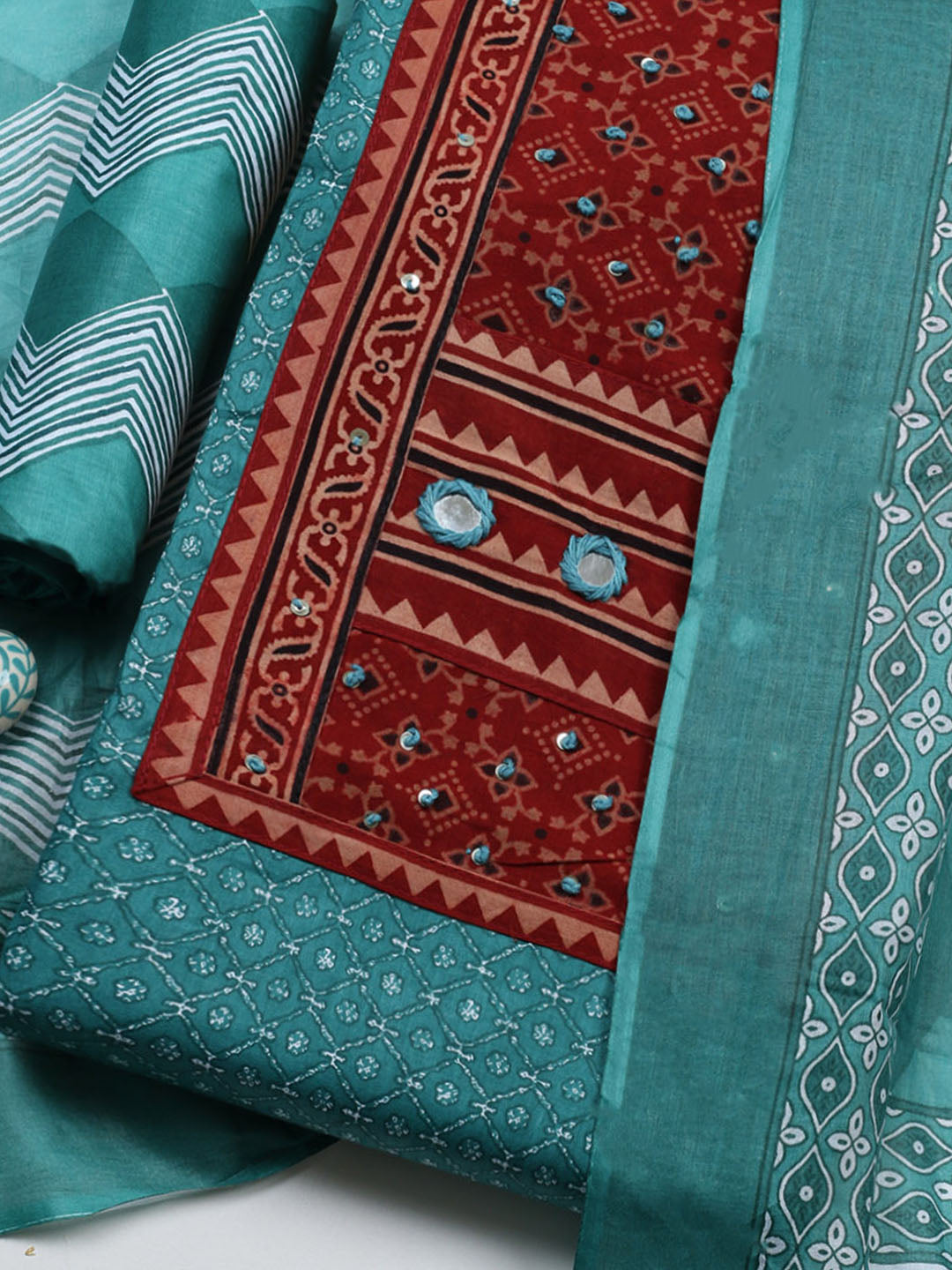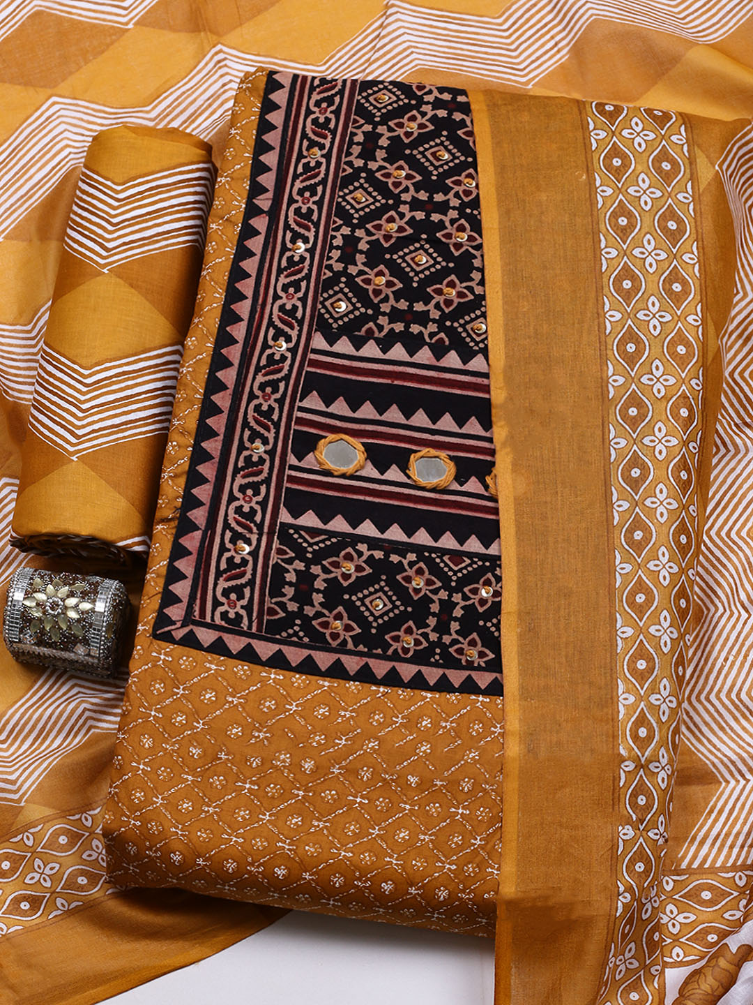 Printed Cotton Blend Unstitched Suit With Pant & Dupatta
