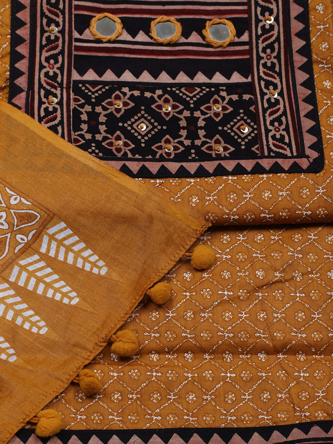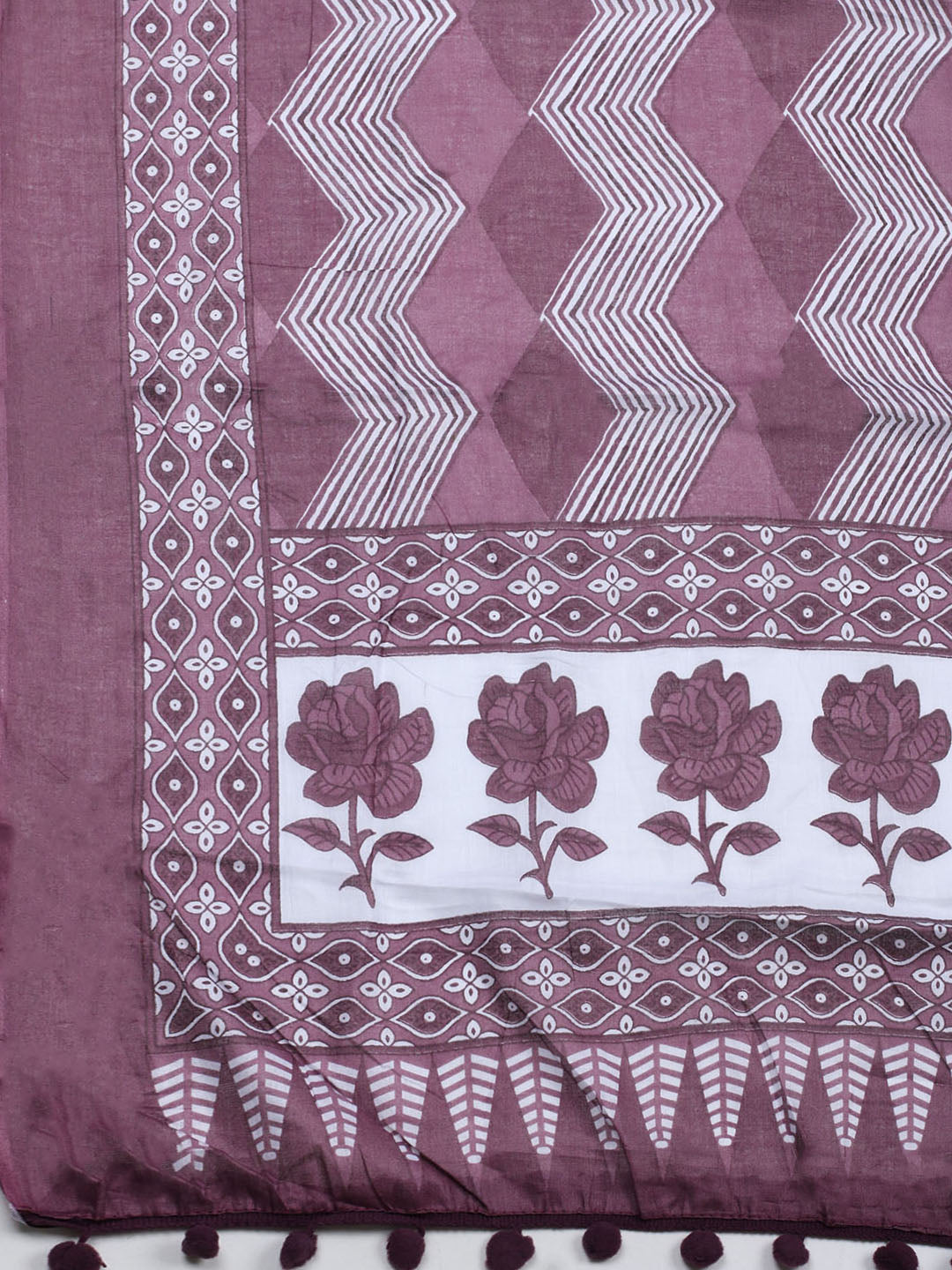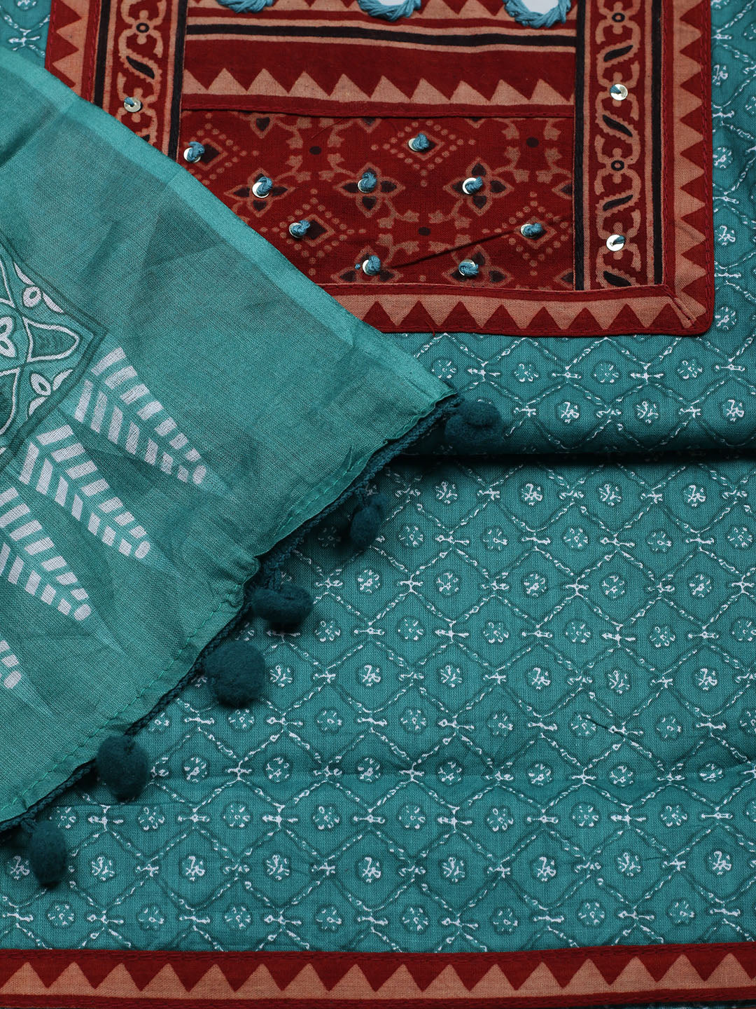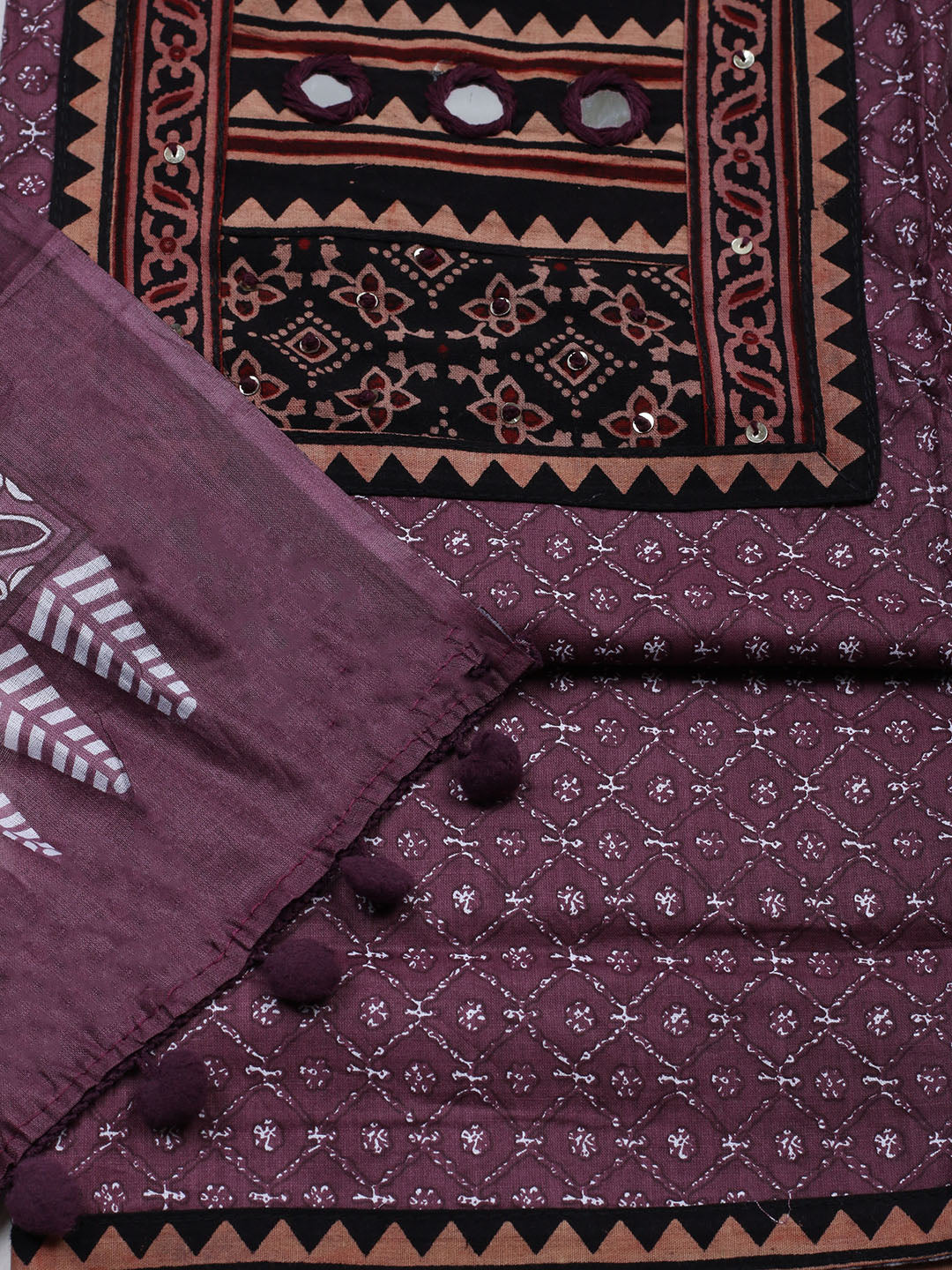 Printed Cotton Blend Unstitched Suit With Pant & Dupatta