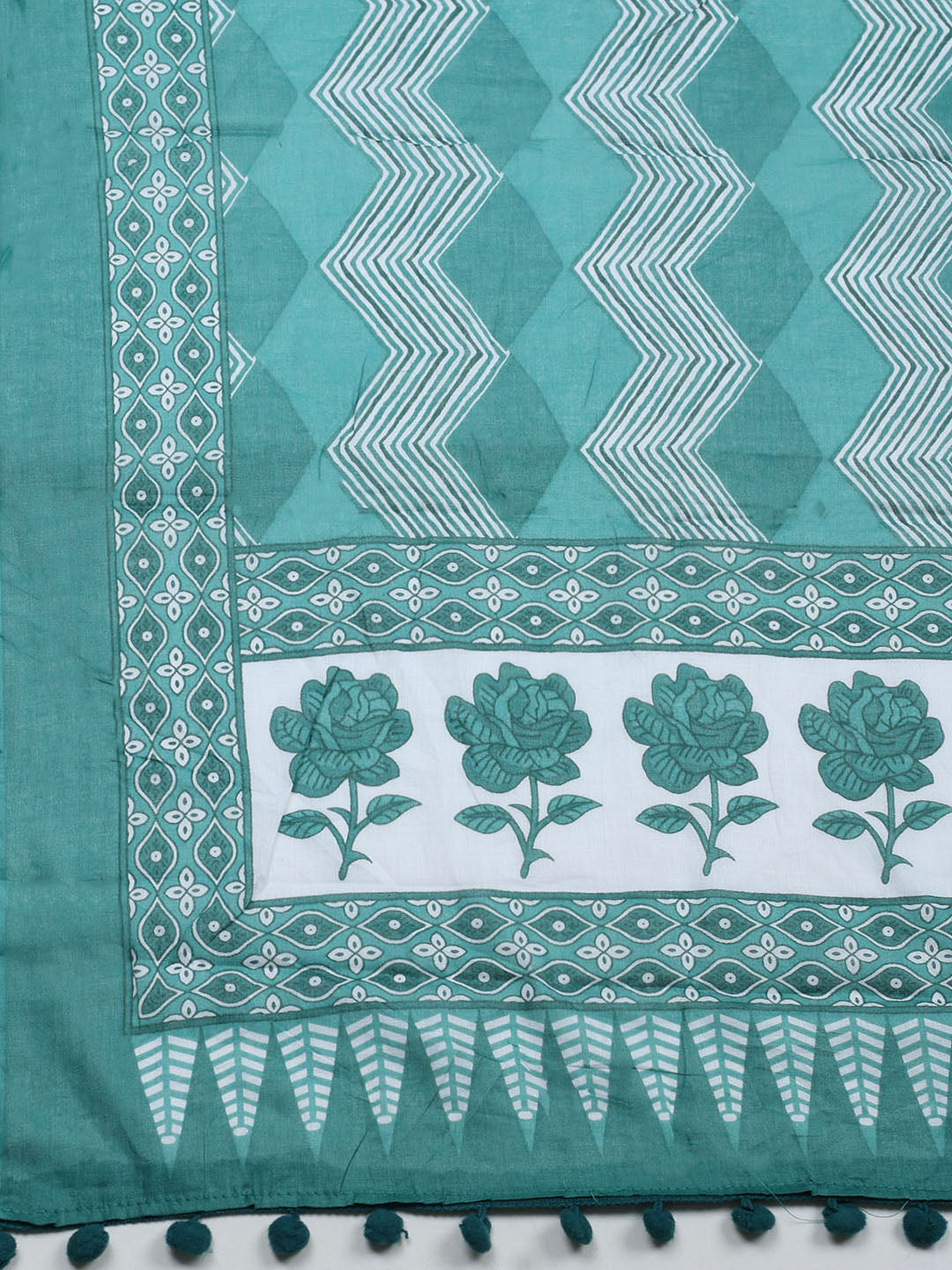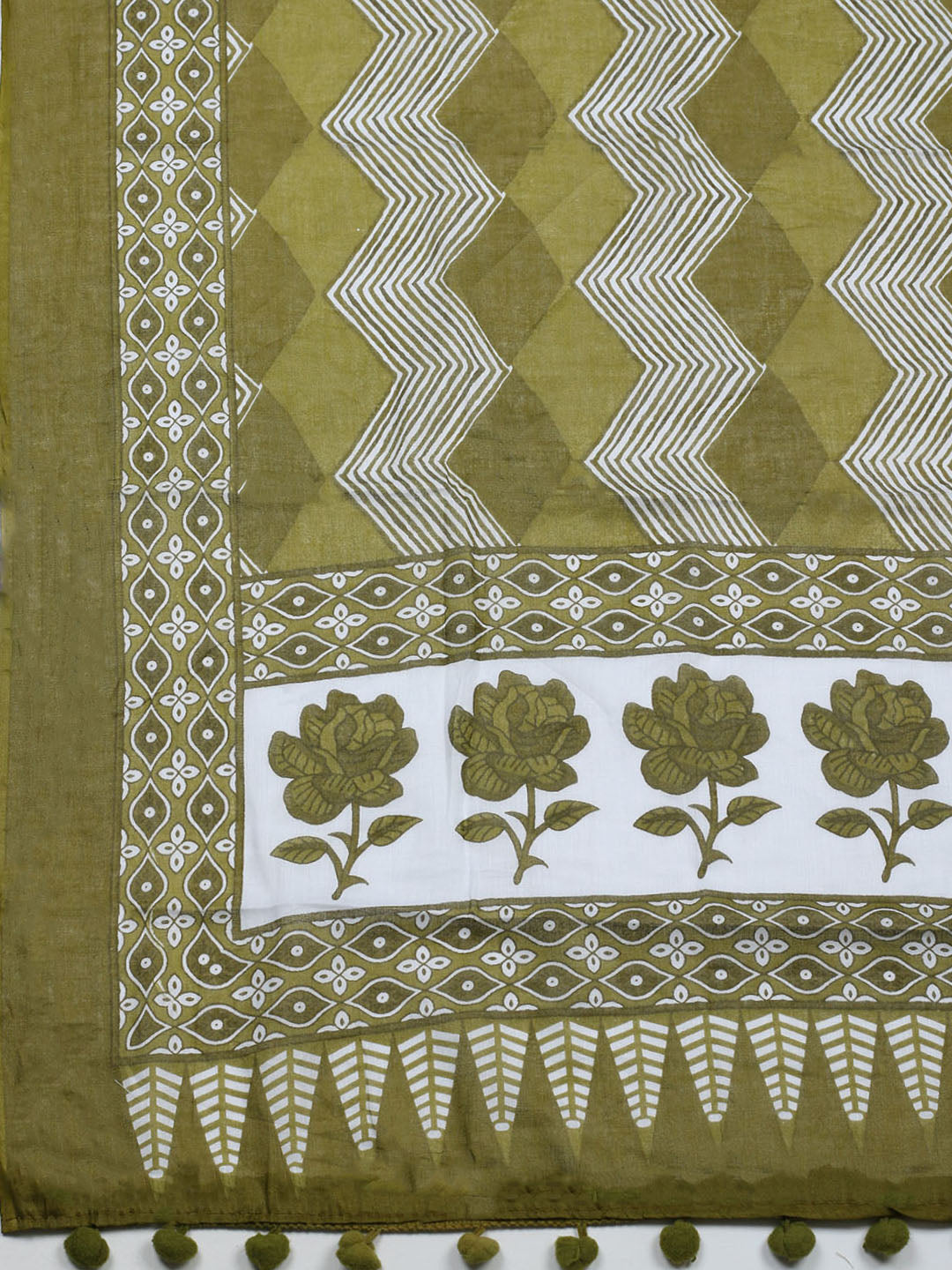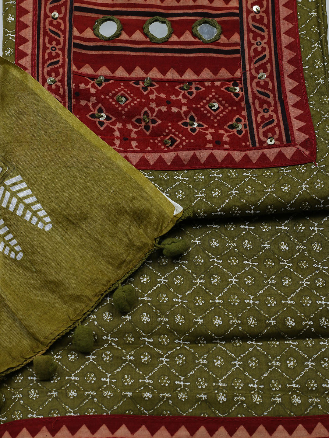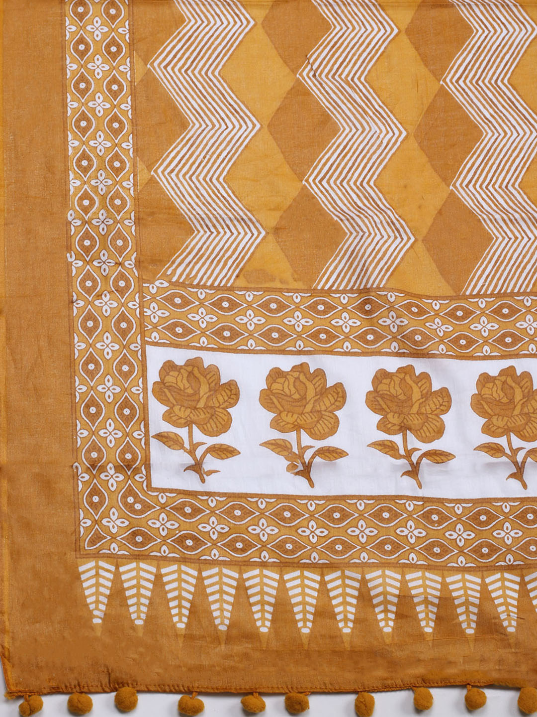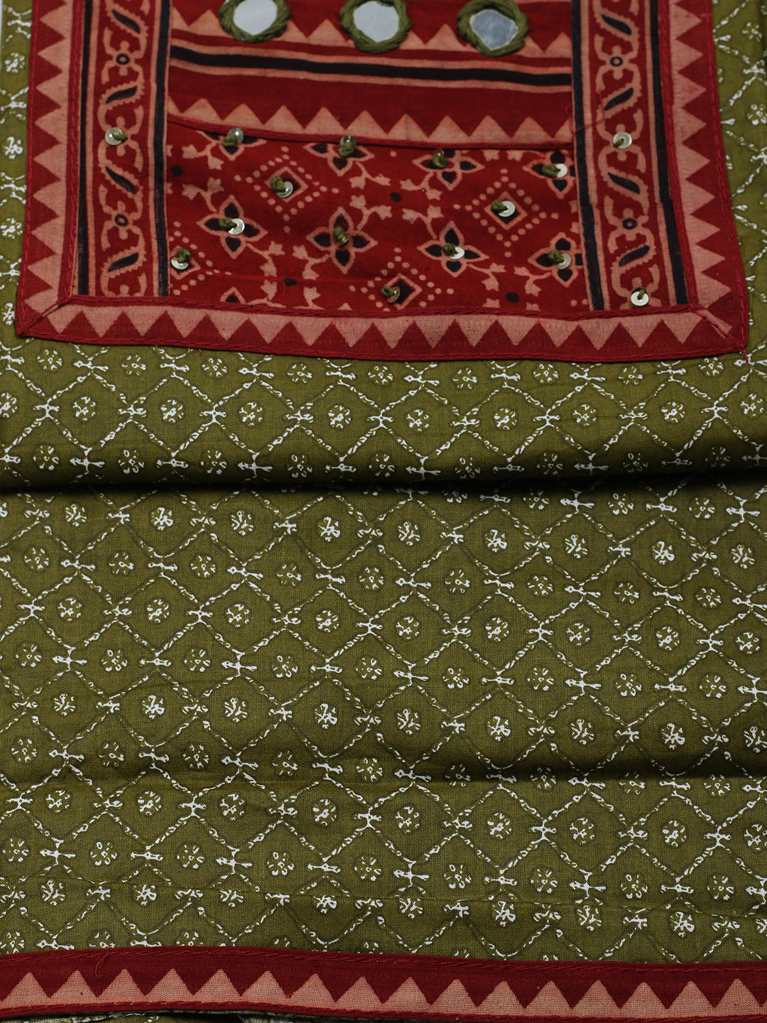 Printed Cotton Blend Unstitched Suit With Pant & Dupatta