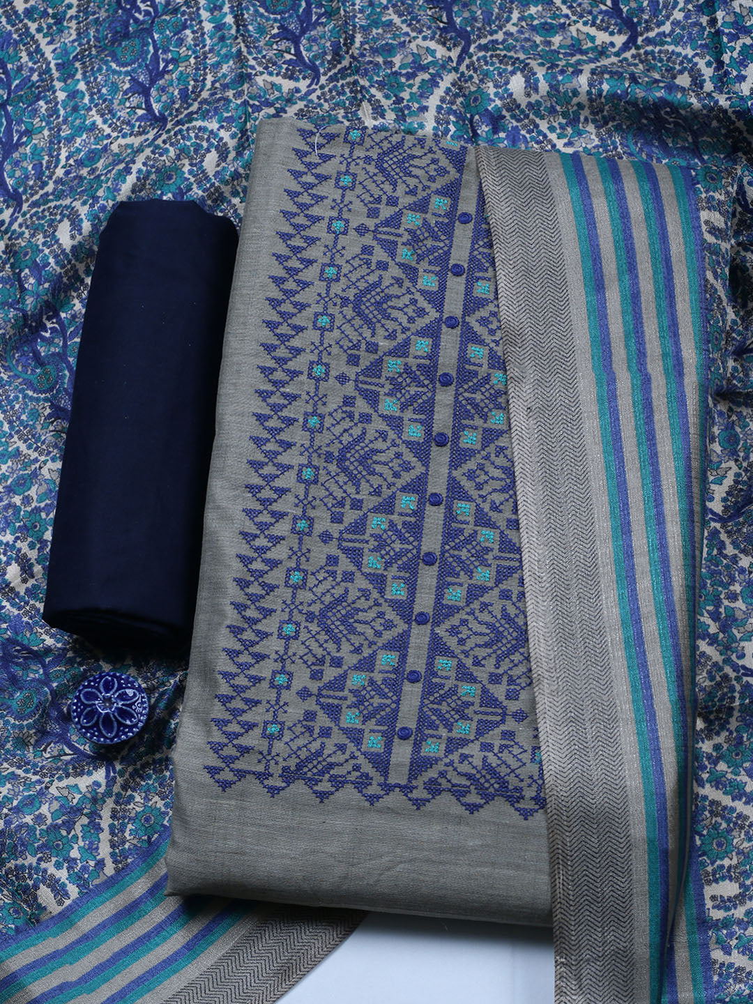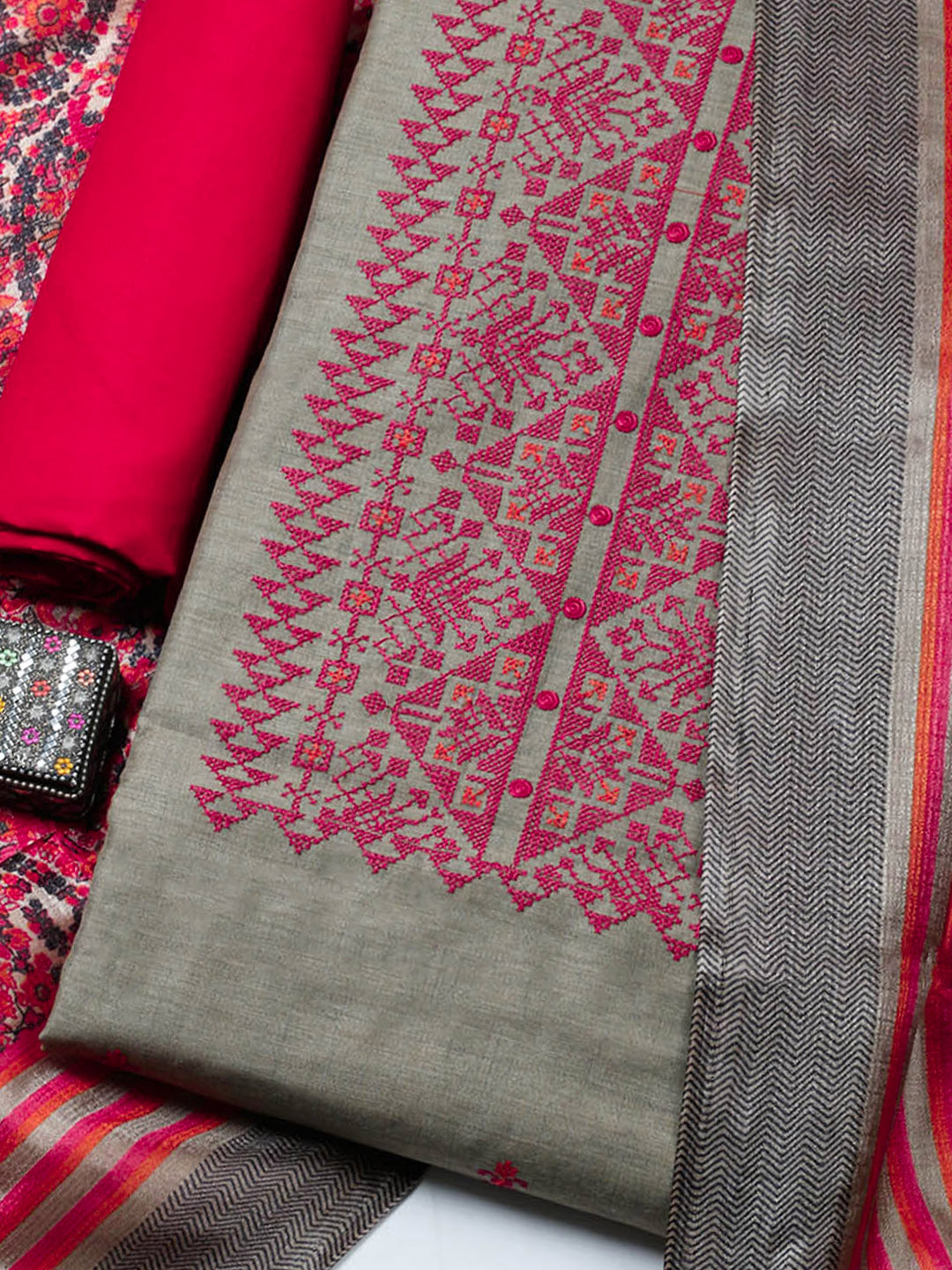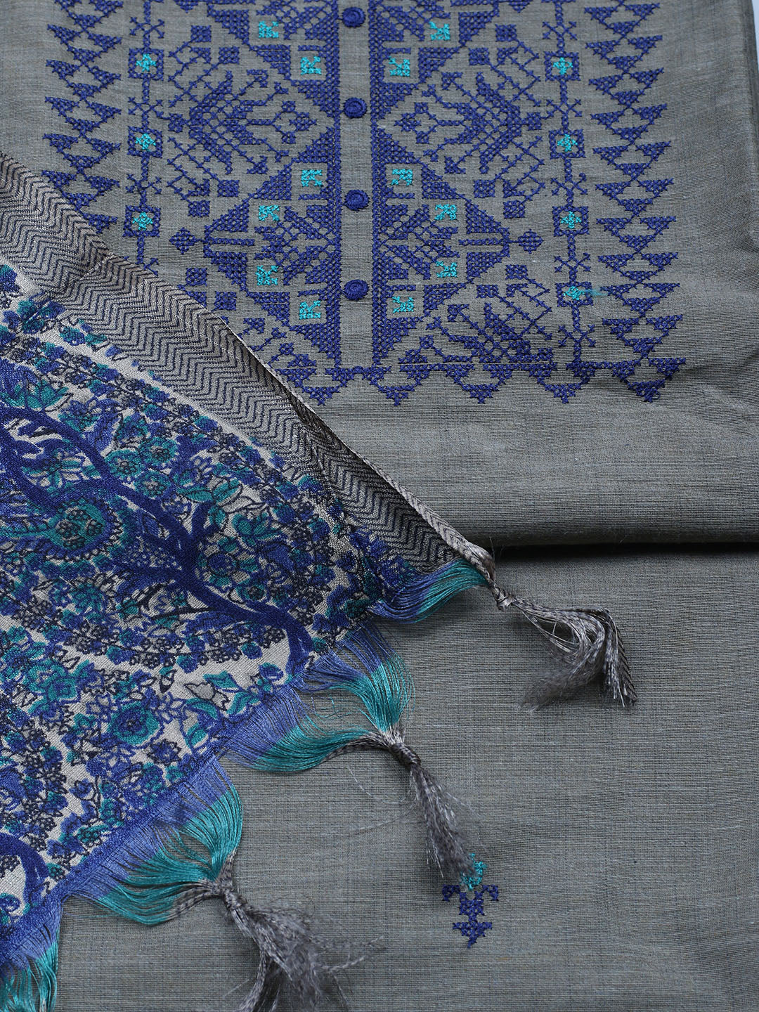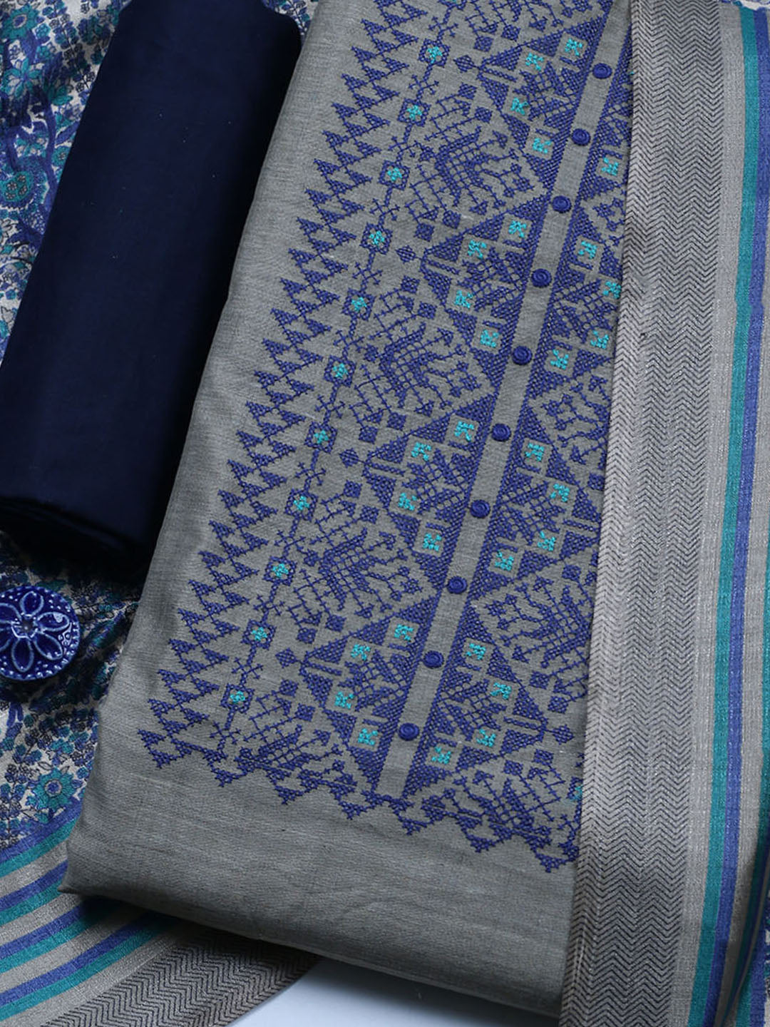 Embroidered Cotton Blend Unstitched Suit With Pant & Dupatta