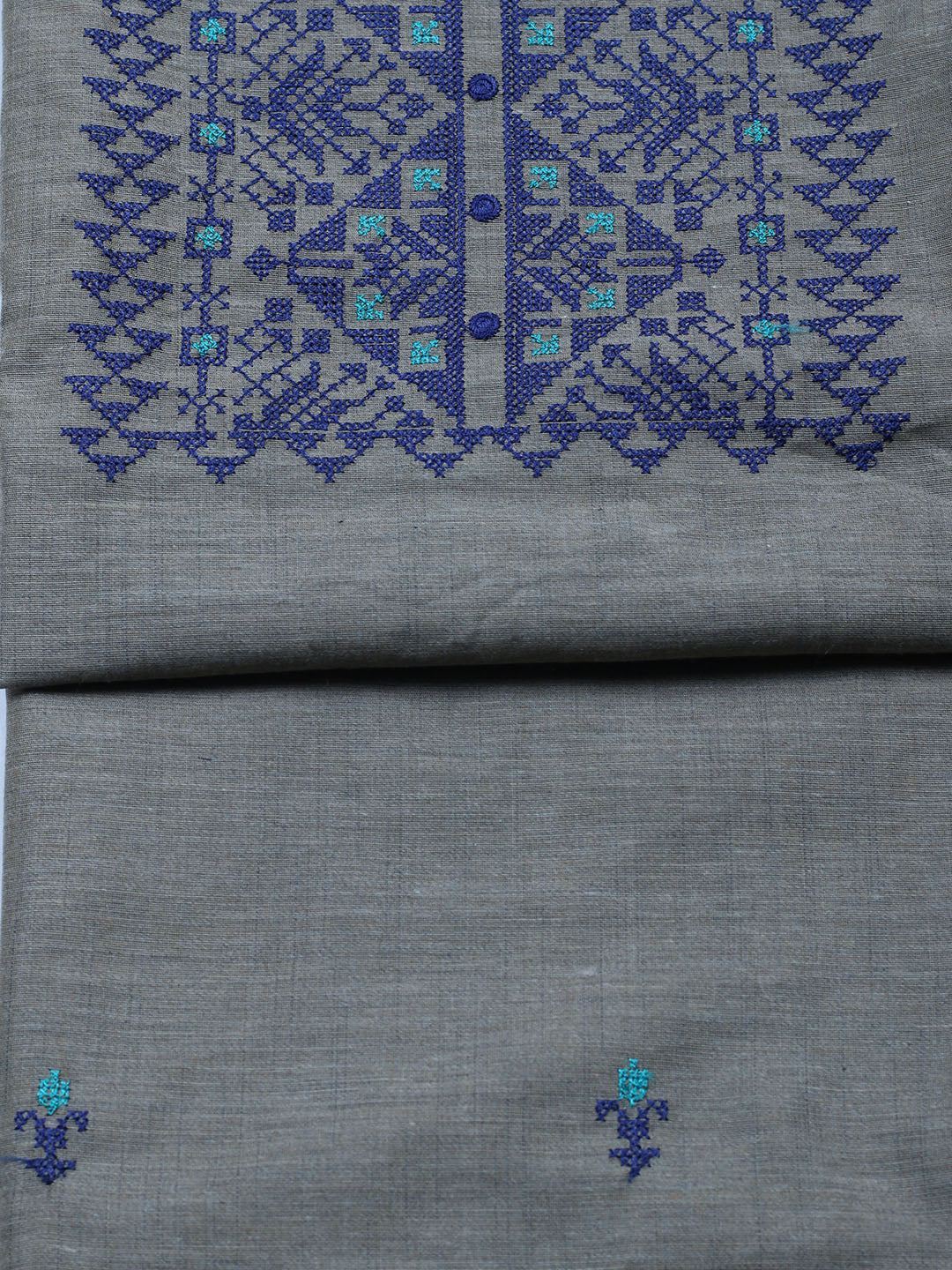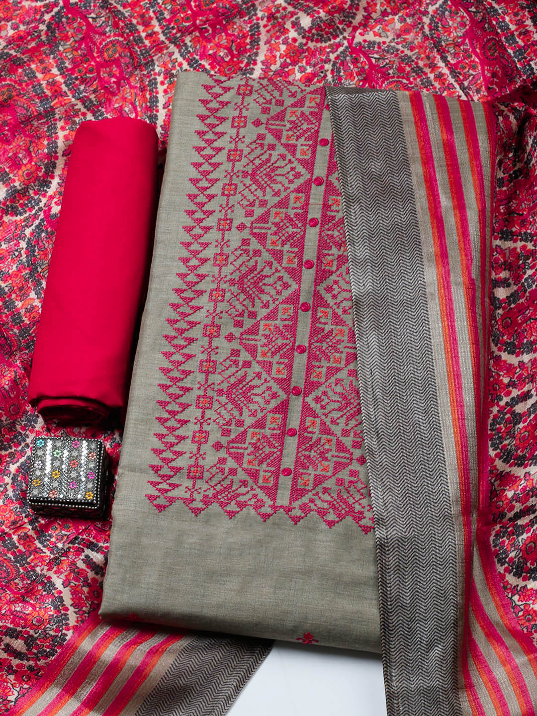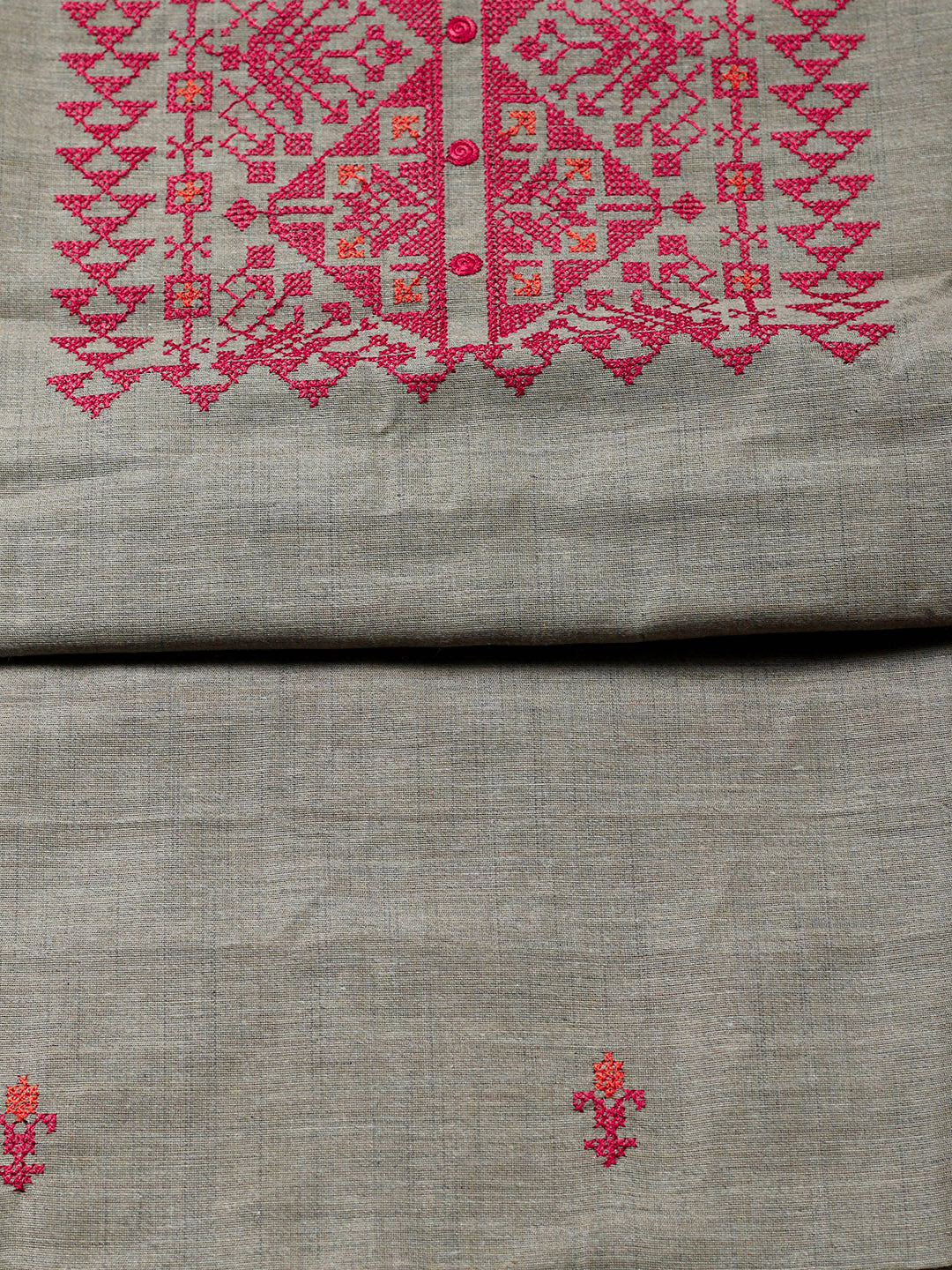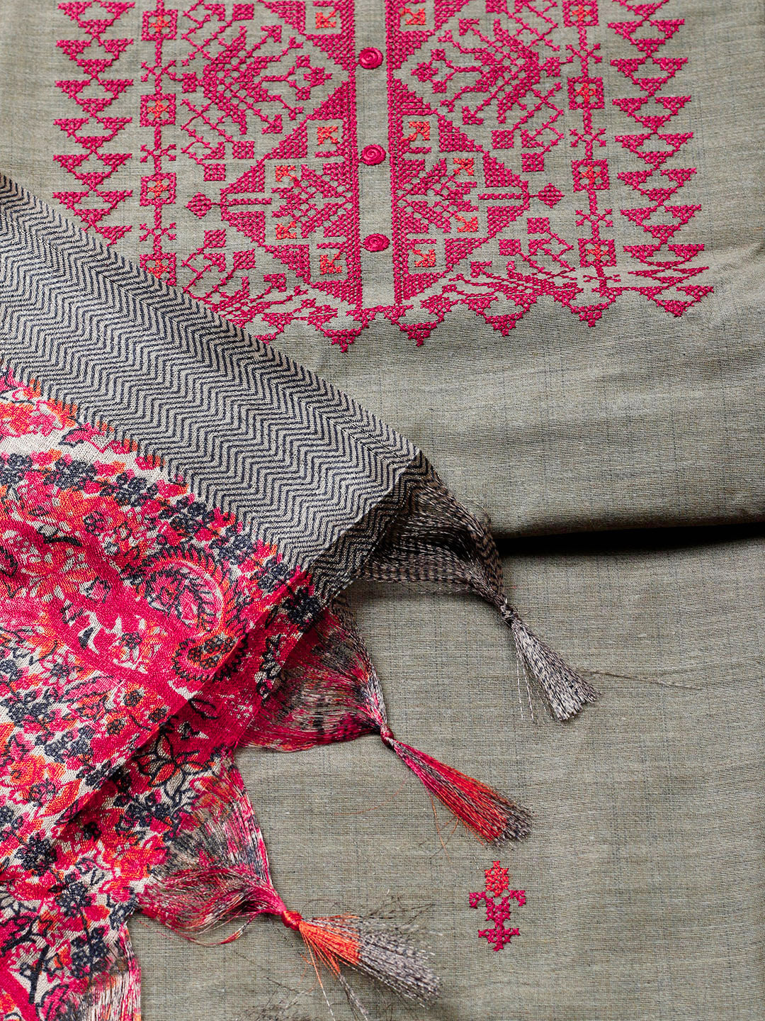 Embroidered Cotton Blend Unstitched Suit With Pant & Dupatta