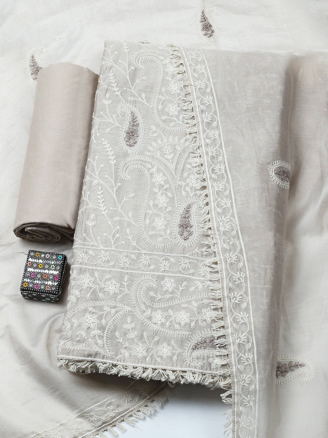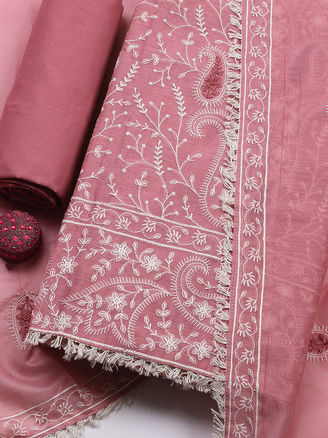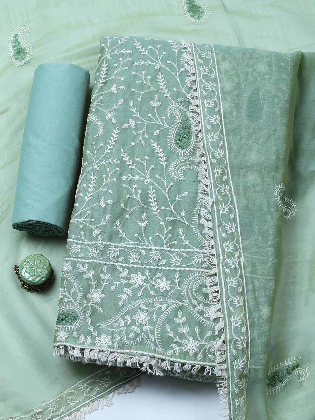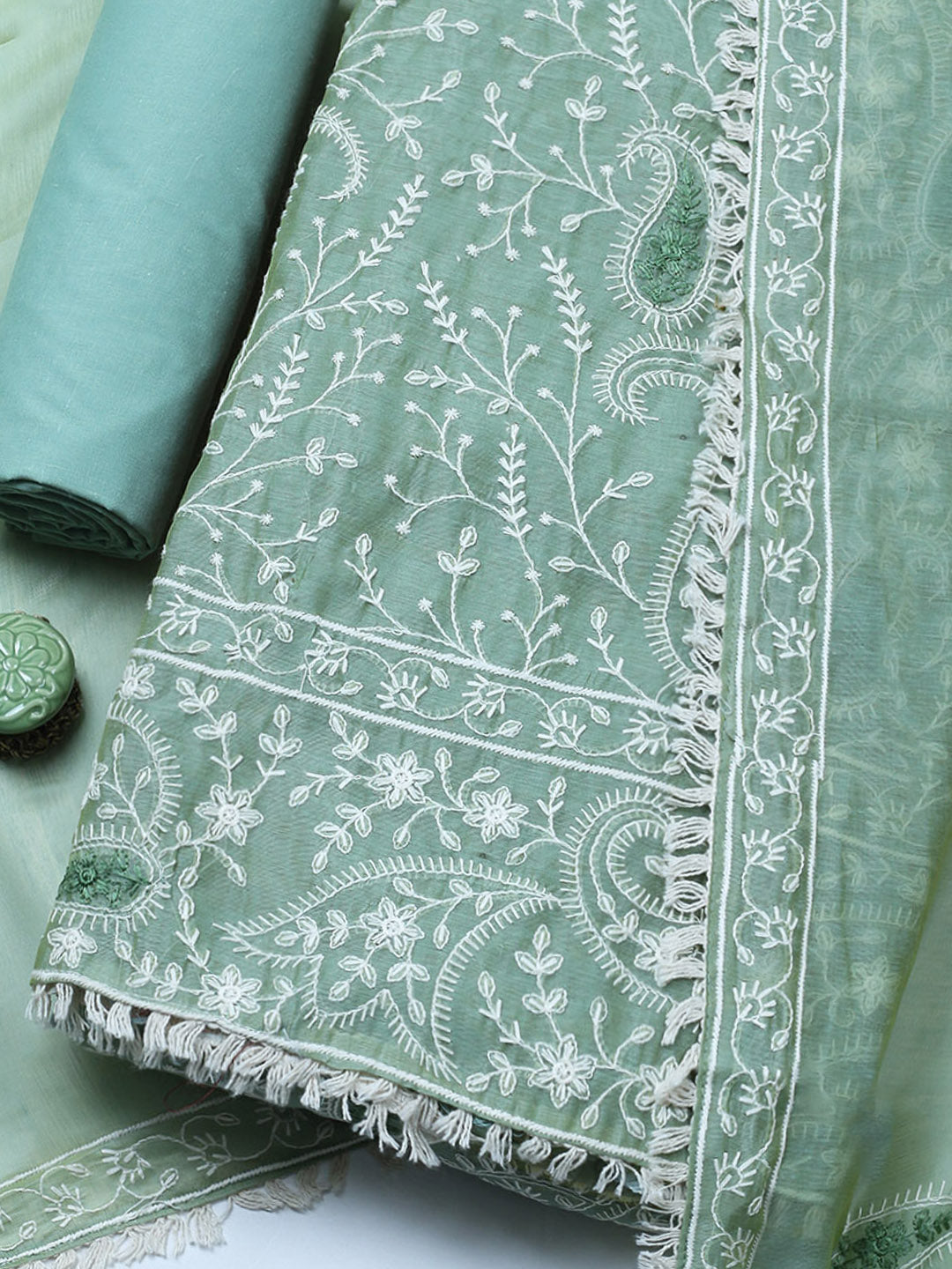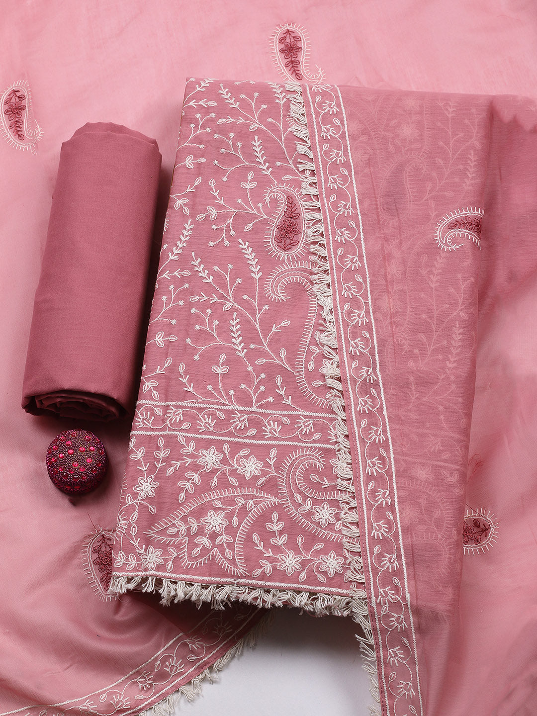 Embroidered Cotton Blend Unstitched Suit With Pant & Dupatta