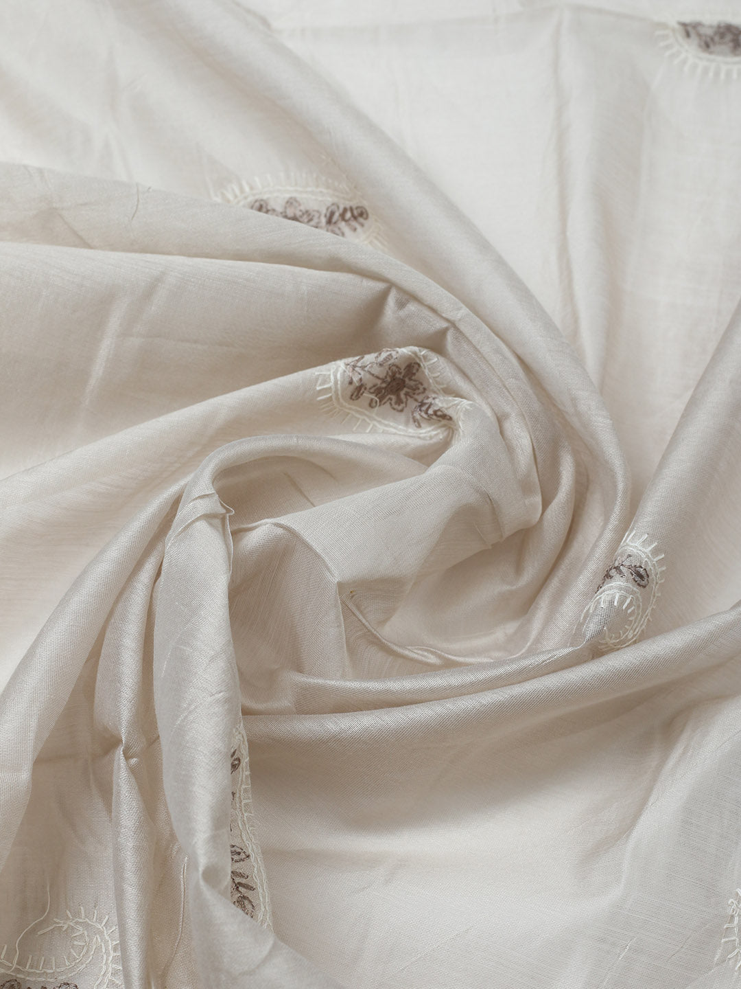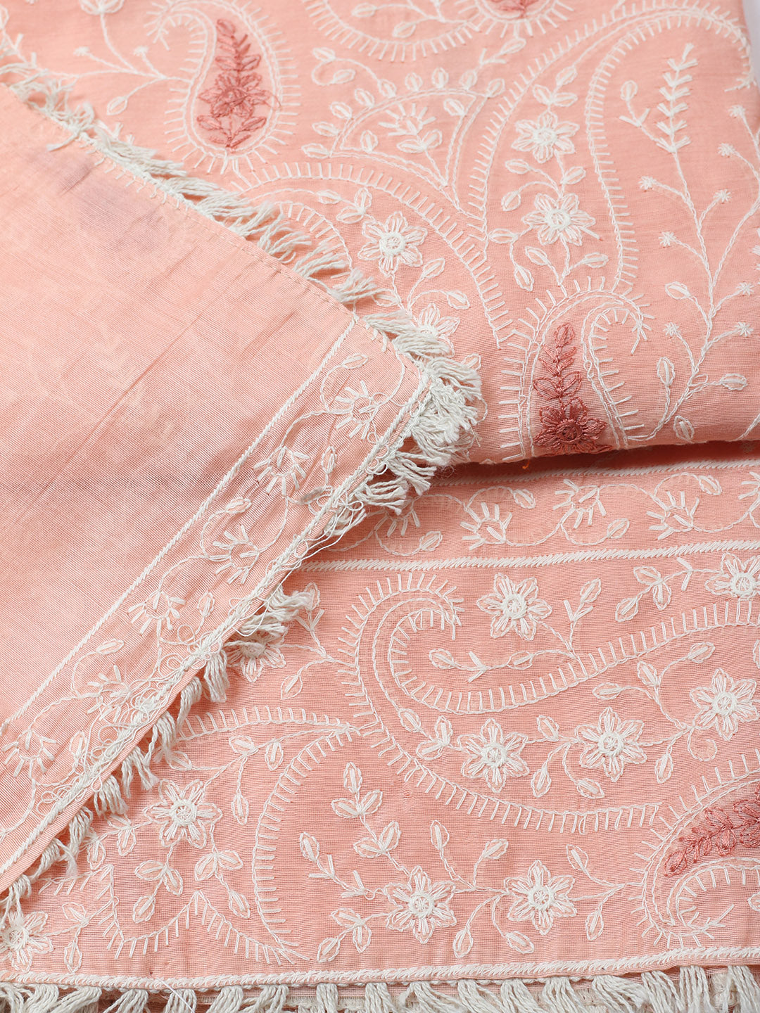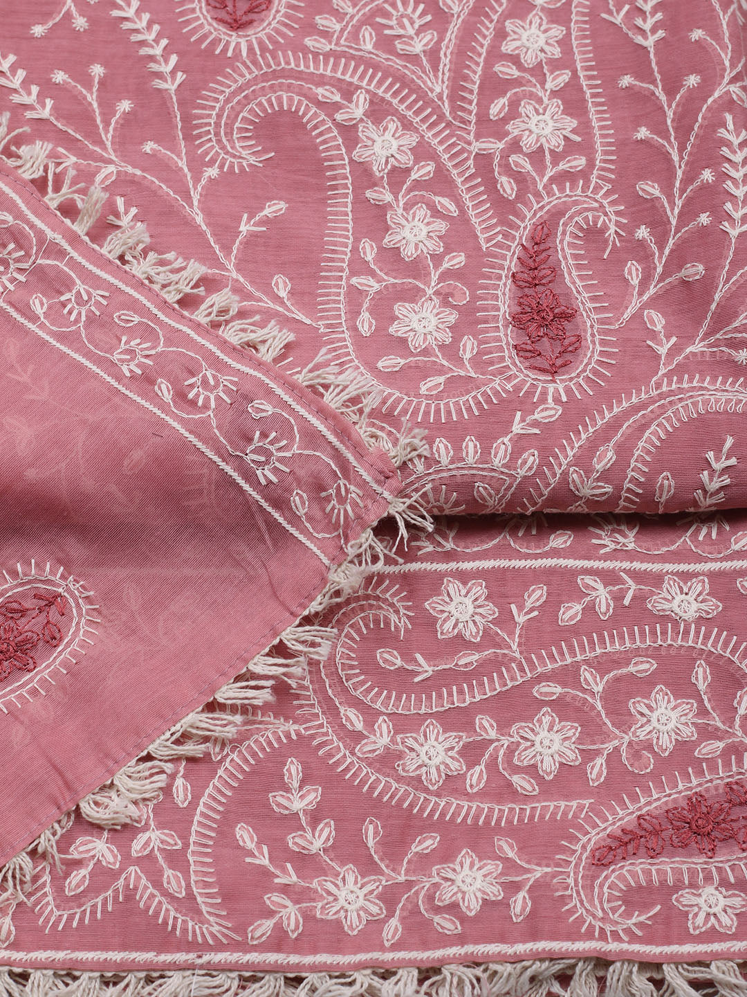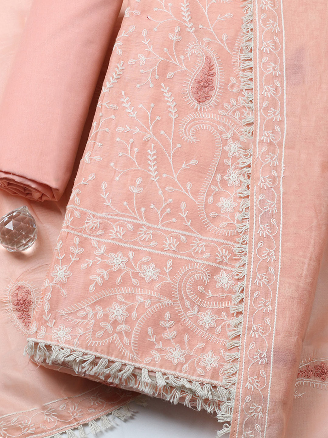 Embroidered Cotton Blend Unstitched Suit With Pant & Dupatta