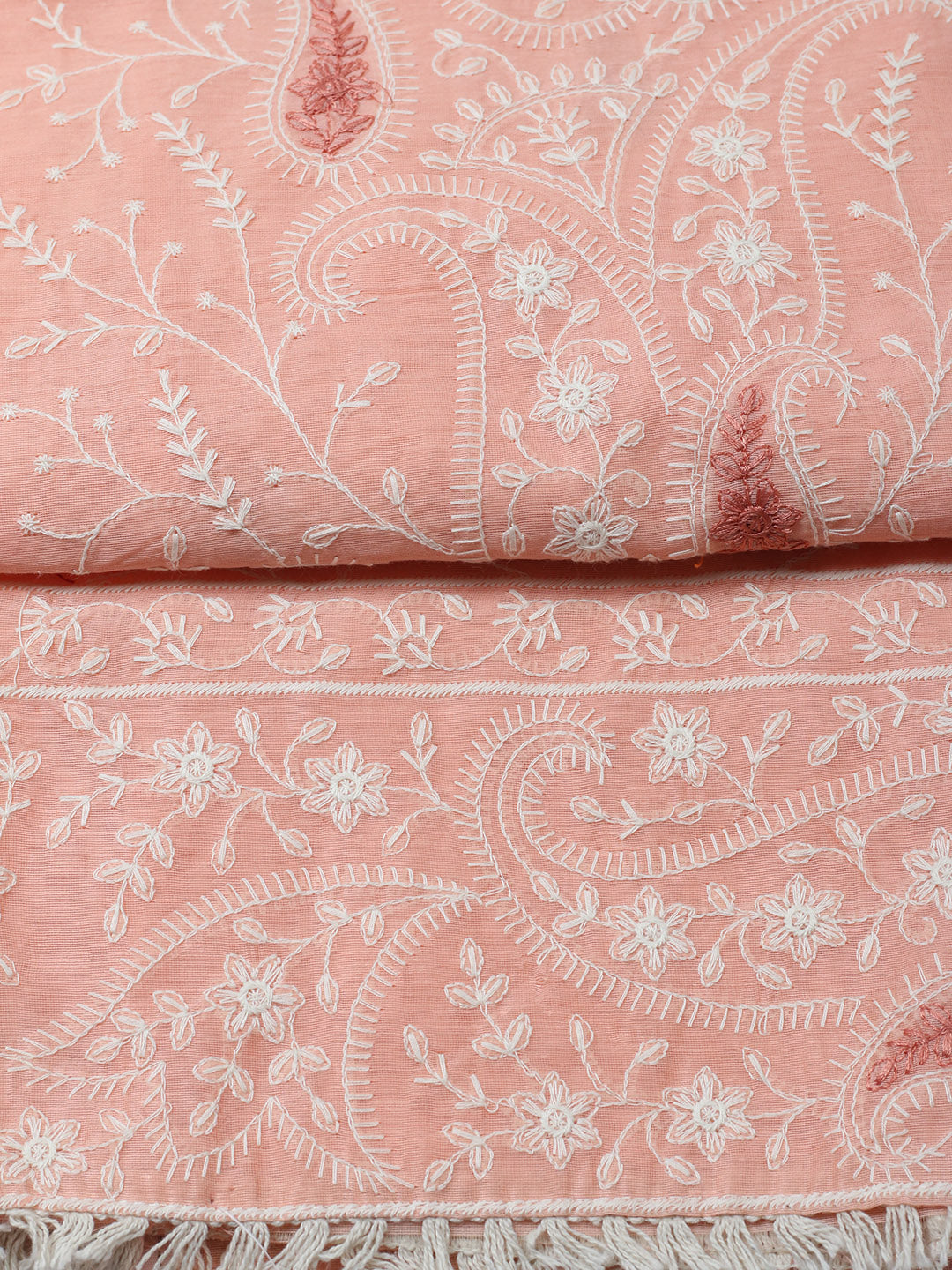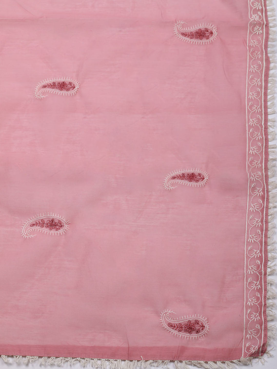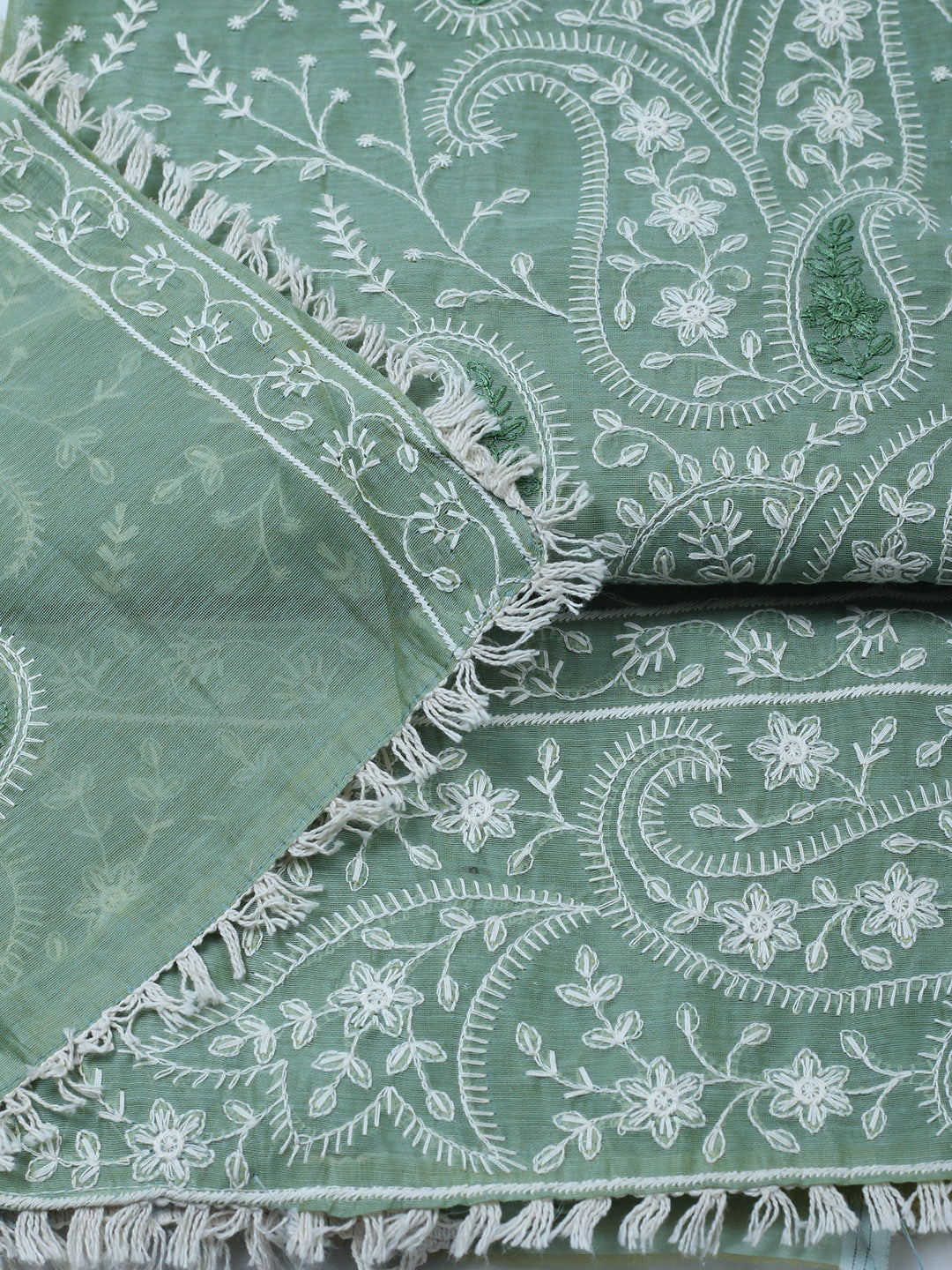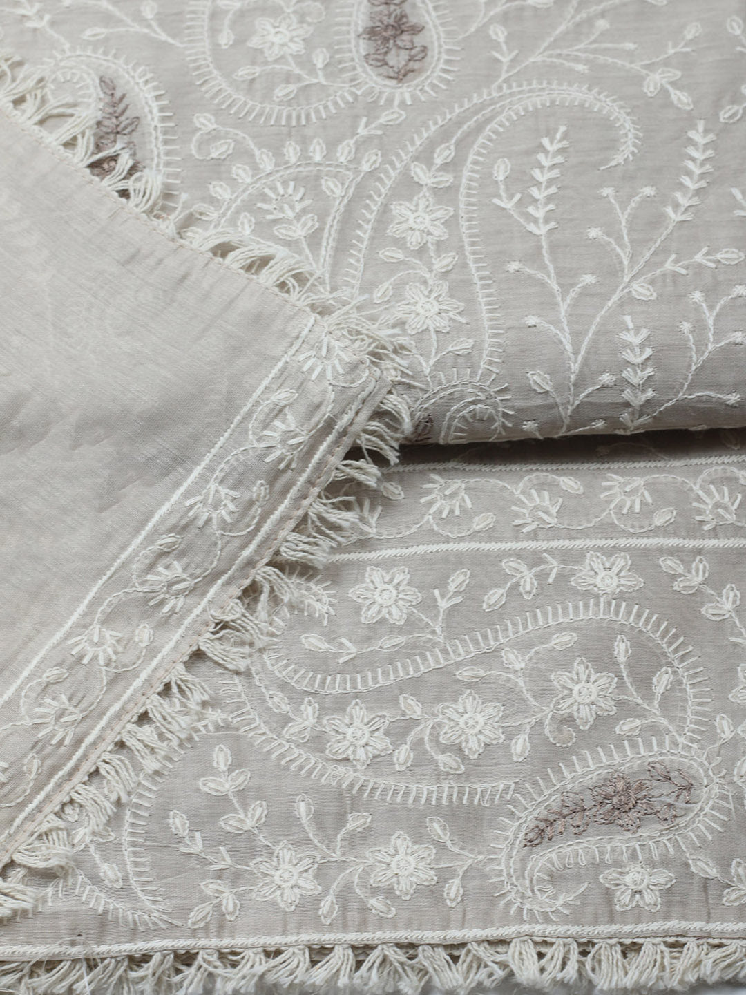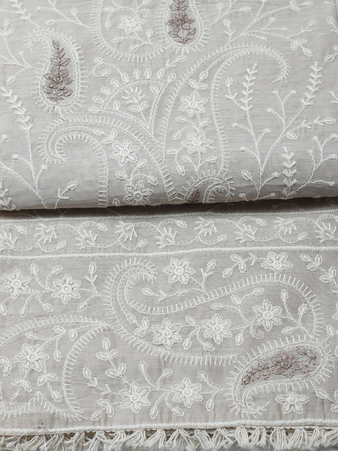 Embroidered Cotton Blend Unstitched Suit With Pant & Dupatta
