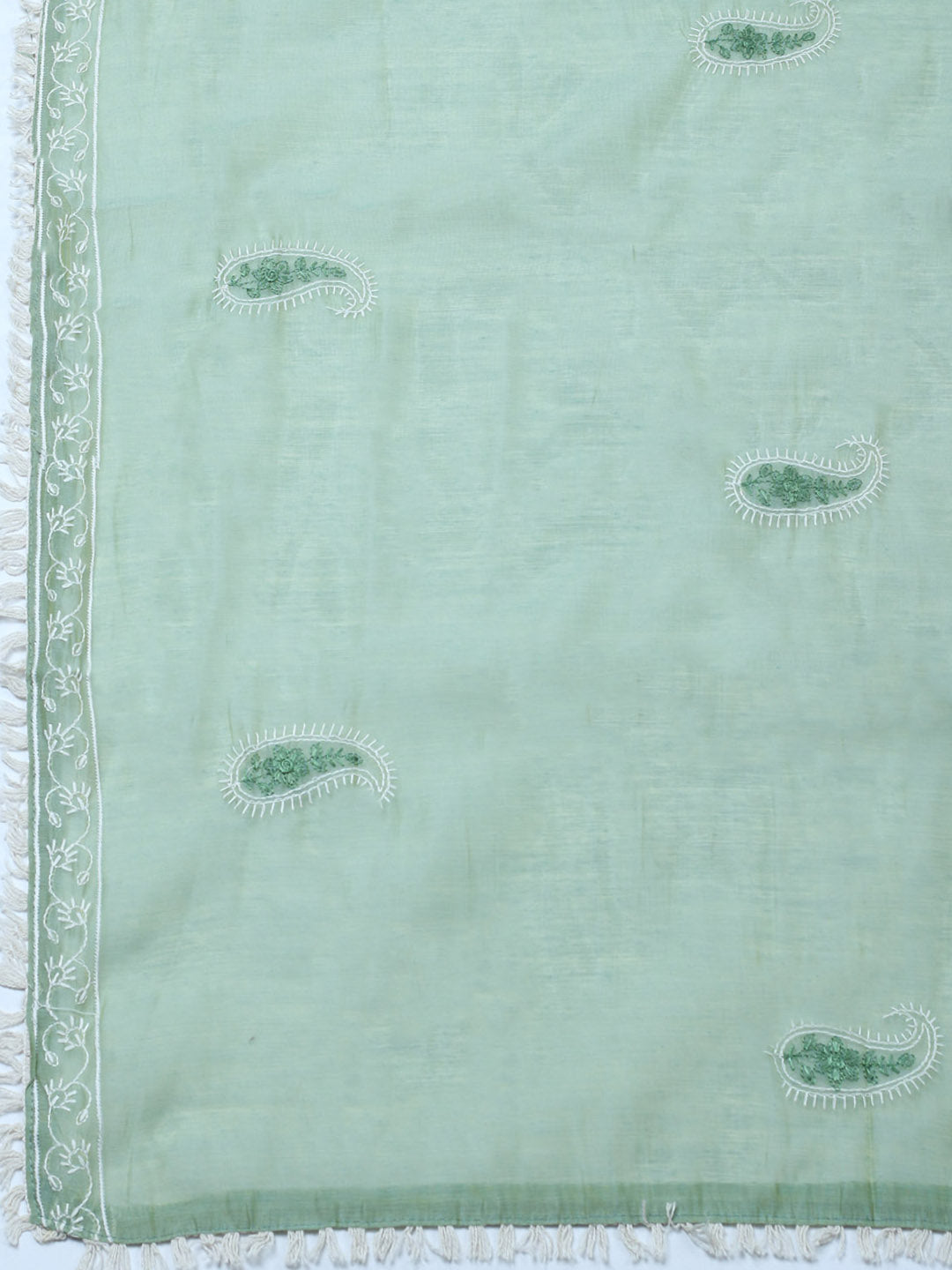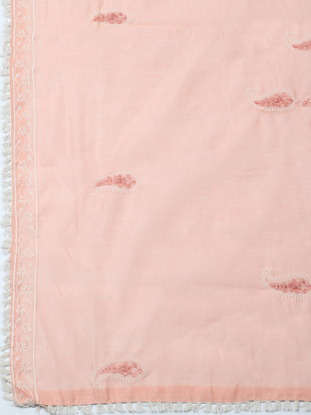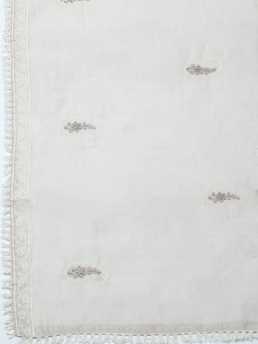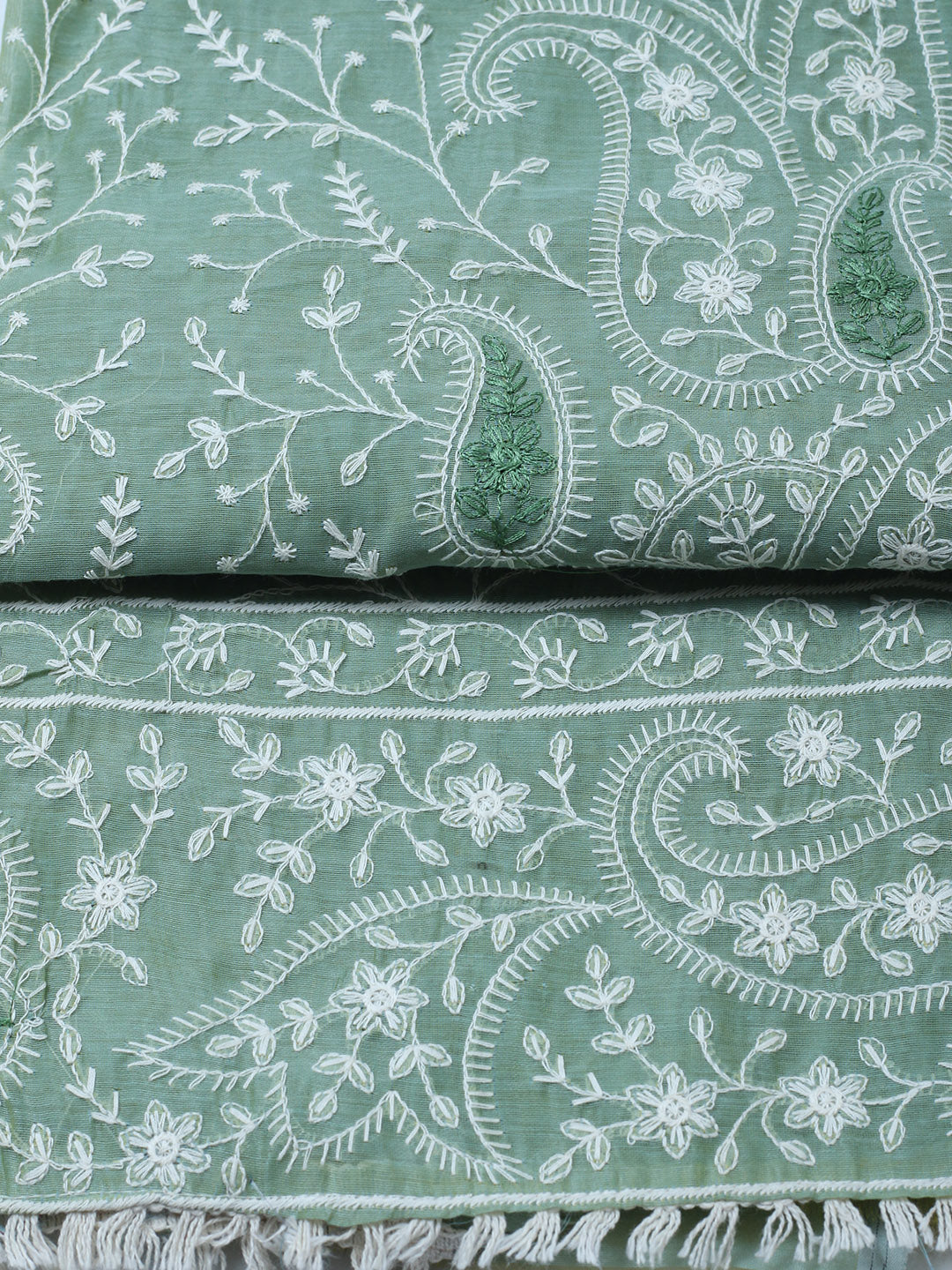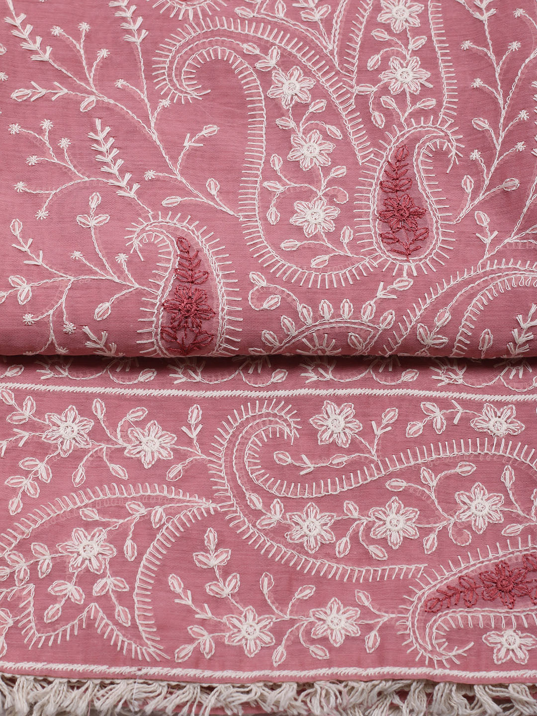 Embroidered Cotton Blend Unstitched Suit With Pant & Dupatta