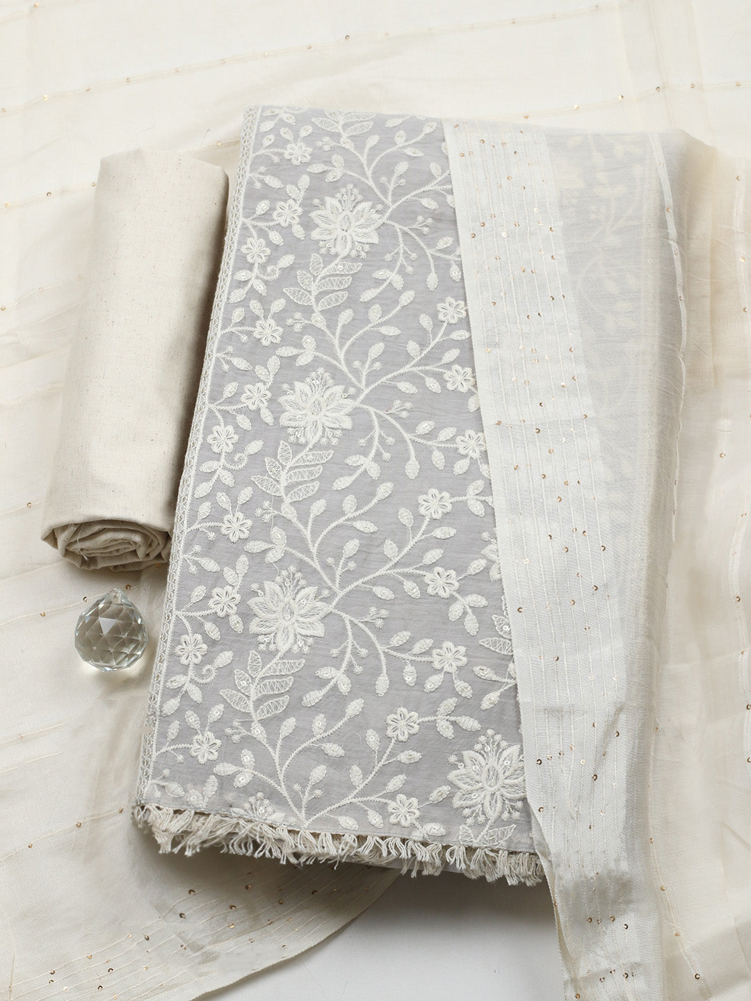 Embroidered Cotton Blend Unstitched Suit With Pant & Dupatta