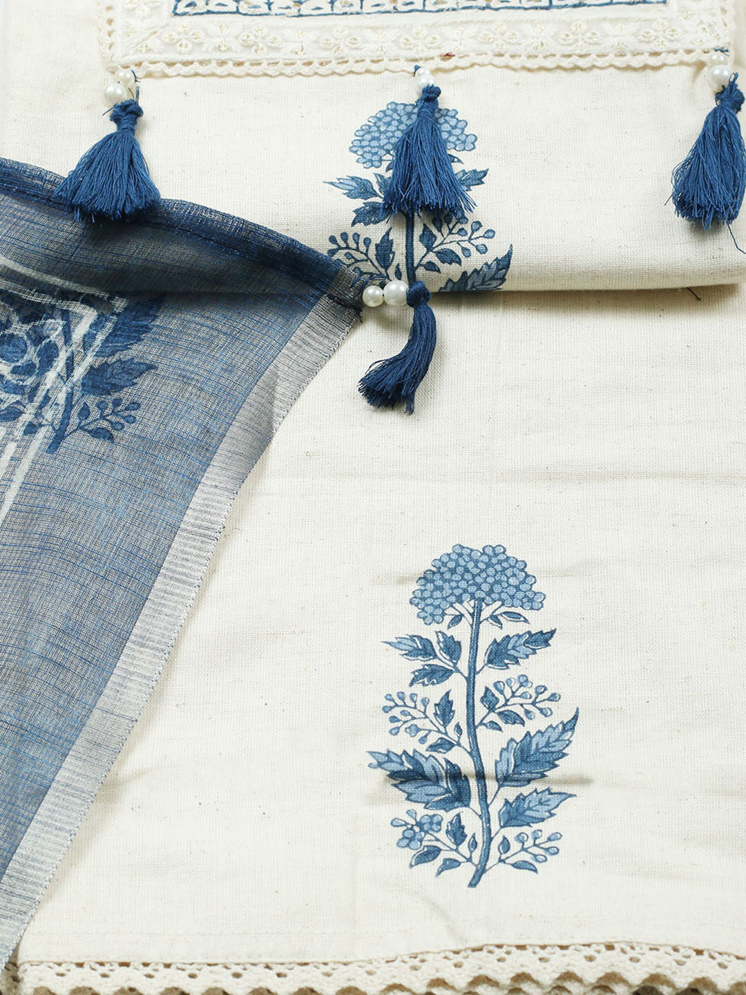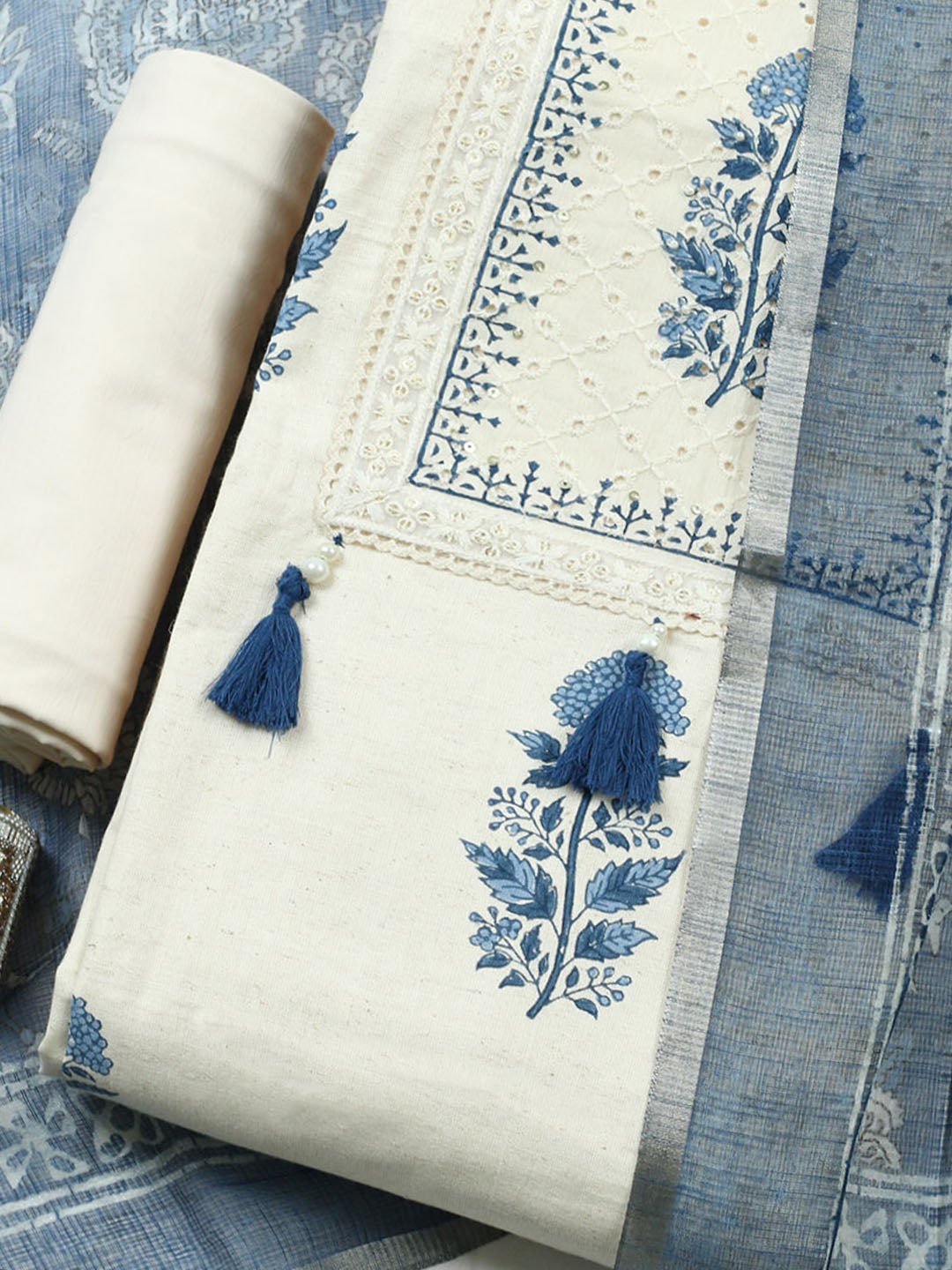 Printed Cotton Blend Unstitched Suit With Pant Dupatta