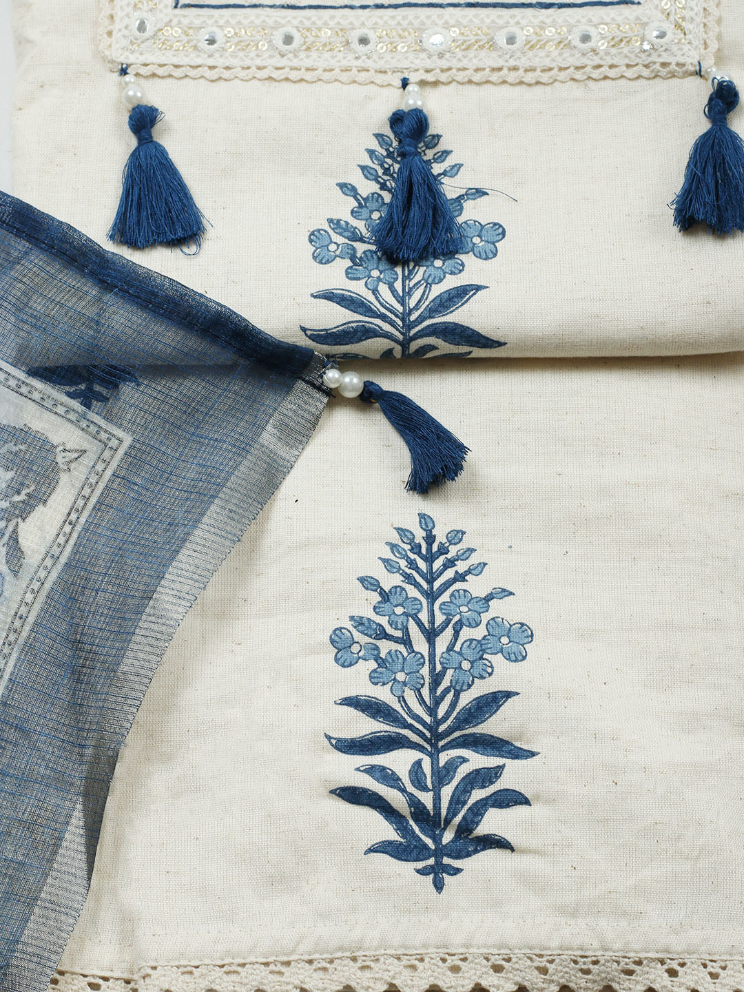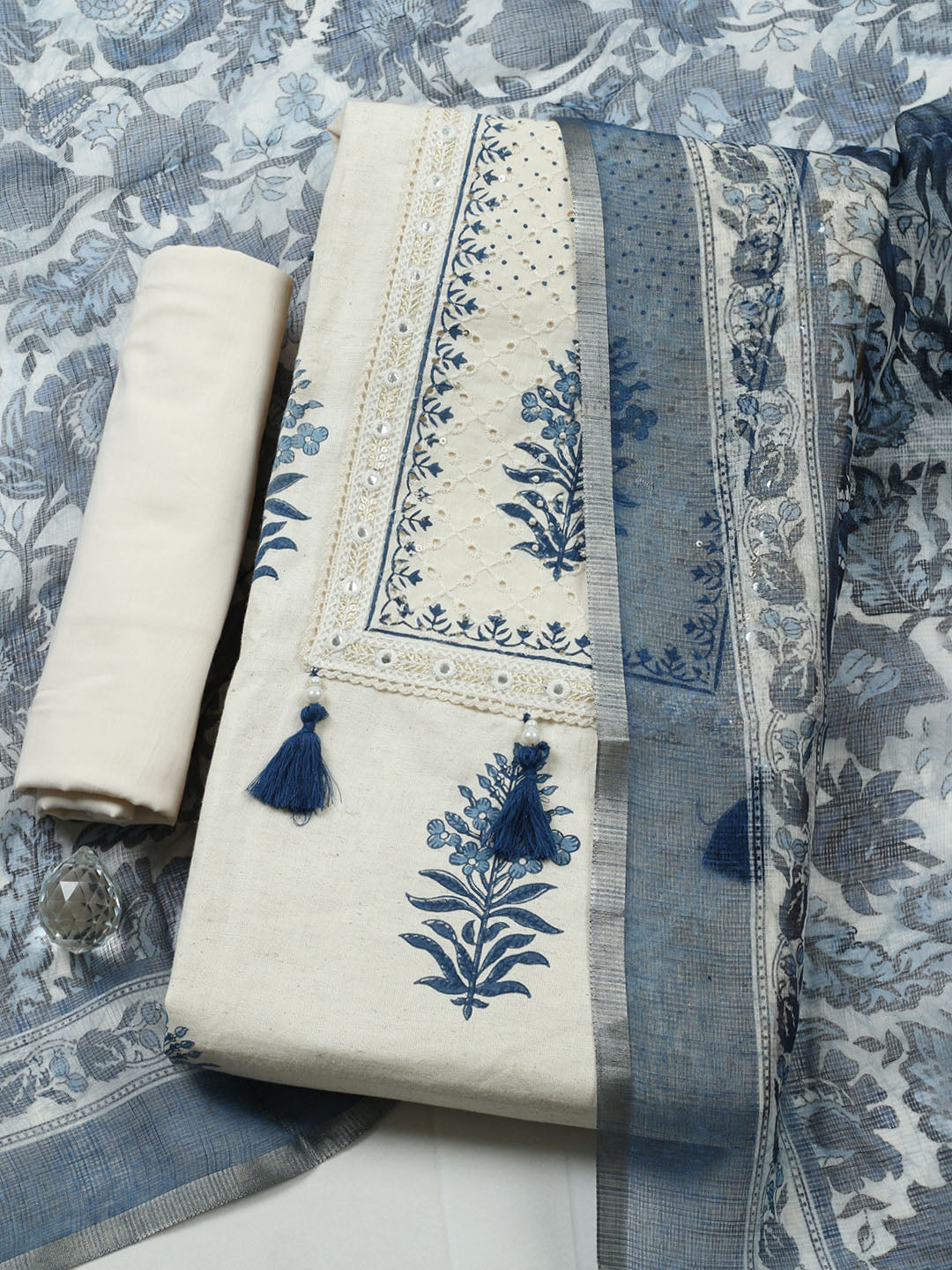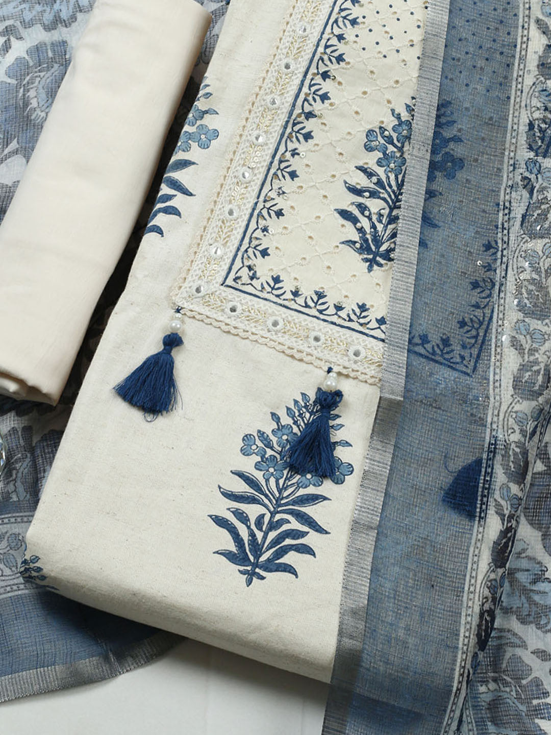 Printed Cotton Blend Unstitched Suit With Pant Dupatta